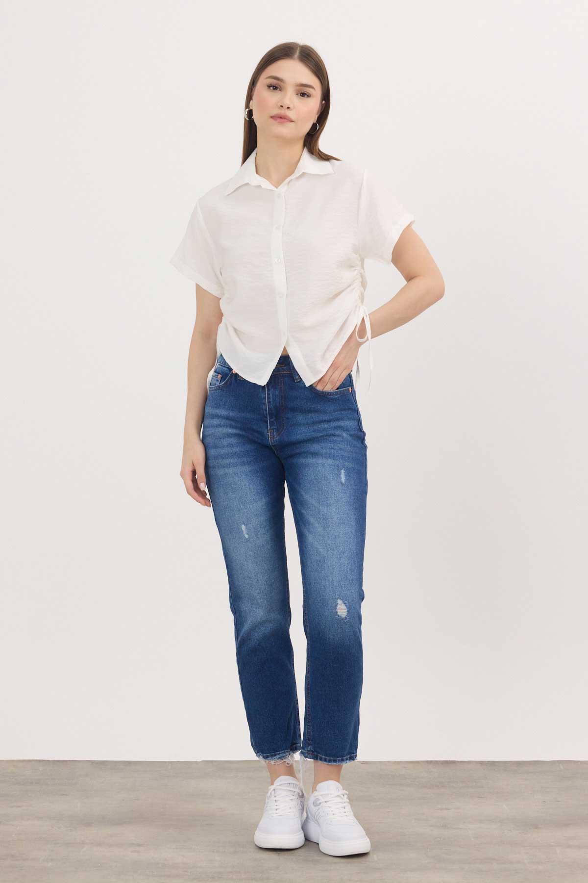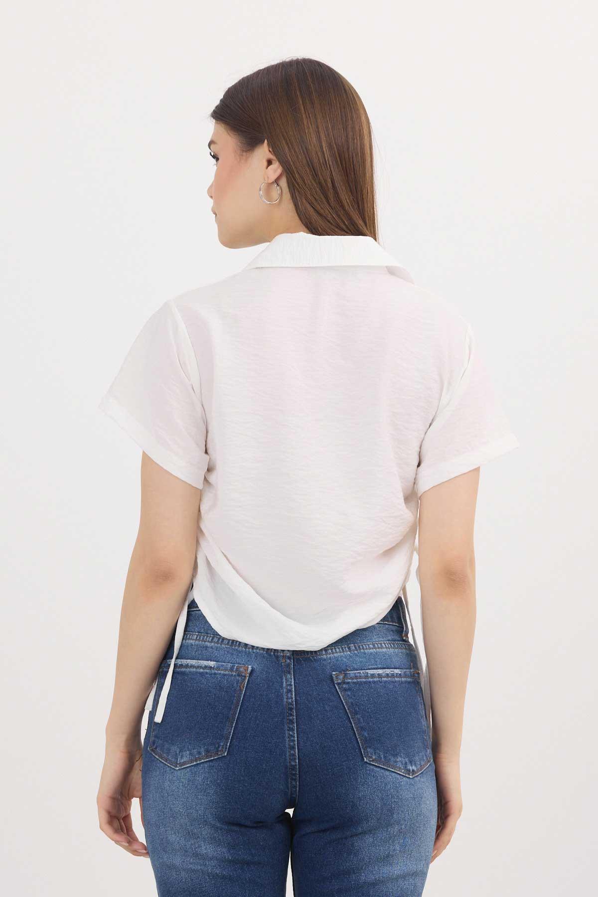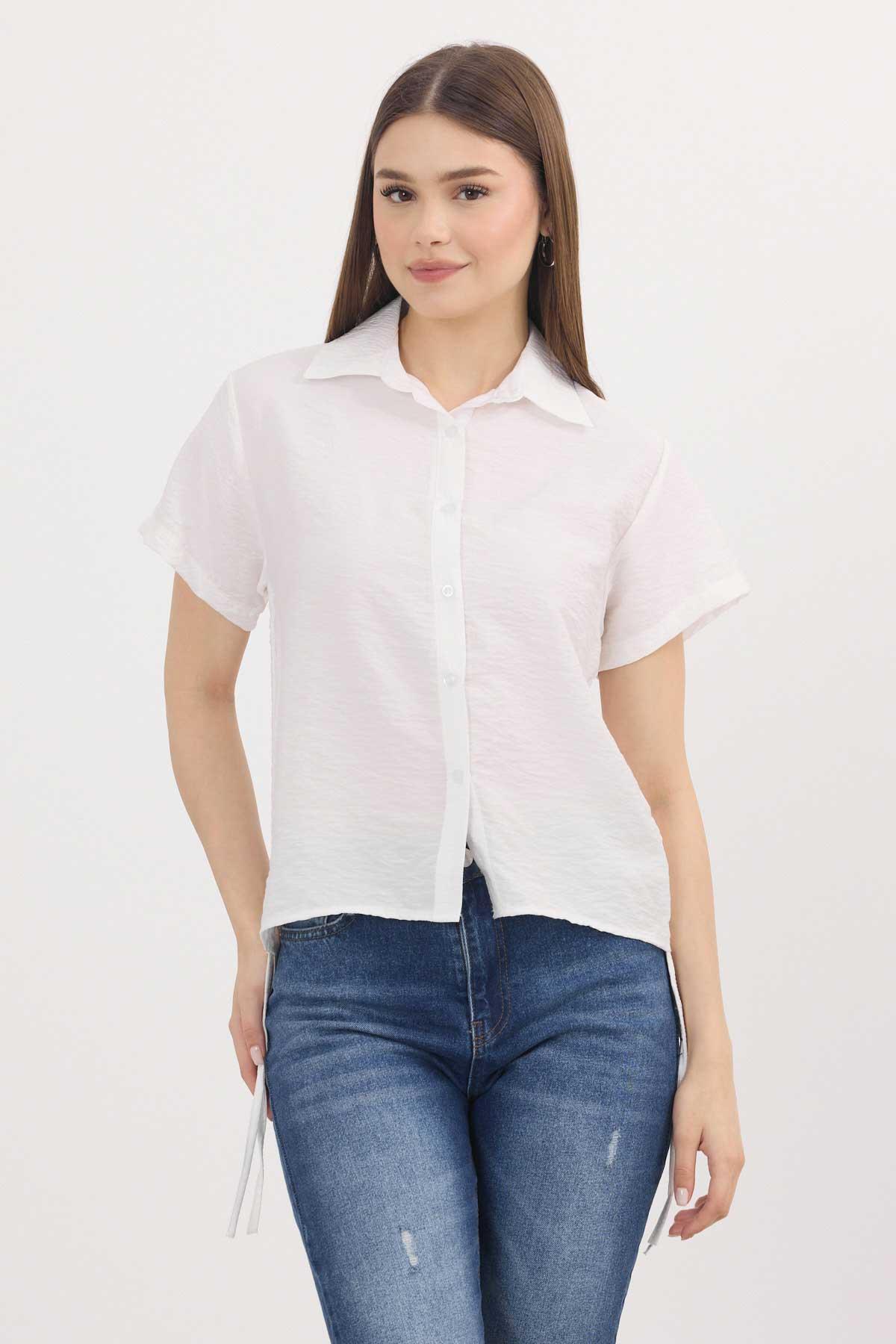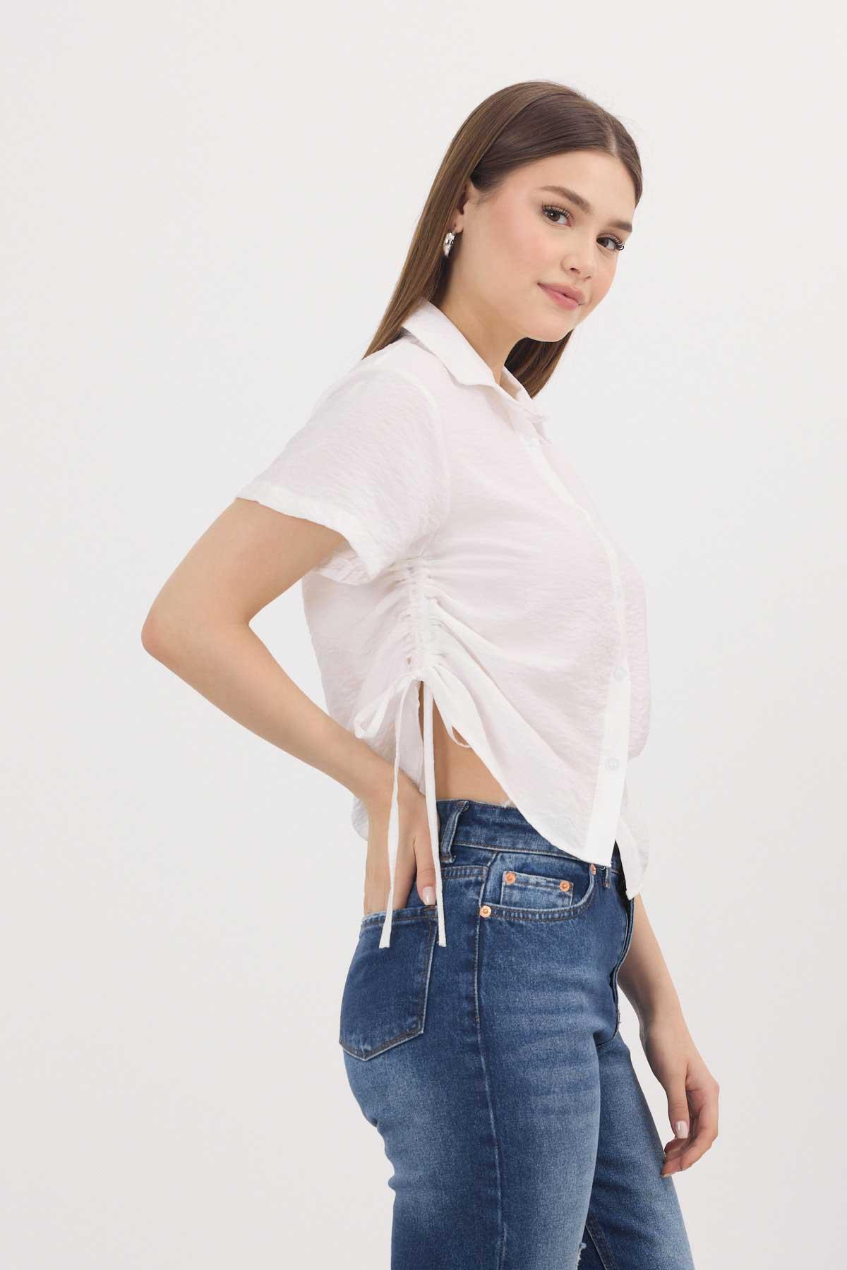 Beyaz Yanları Büzgülü Kısa Gömlek 4368A