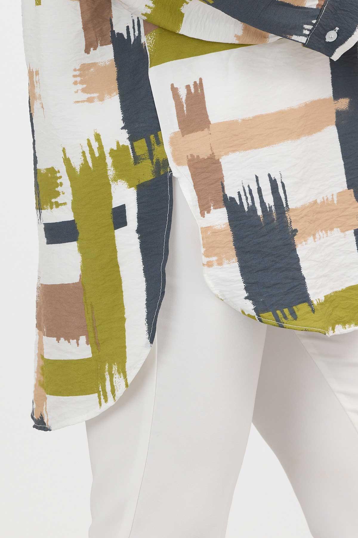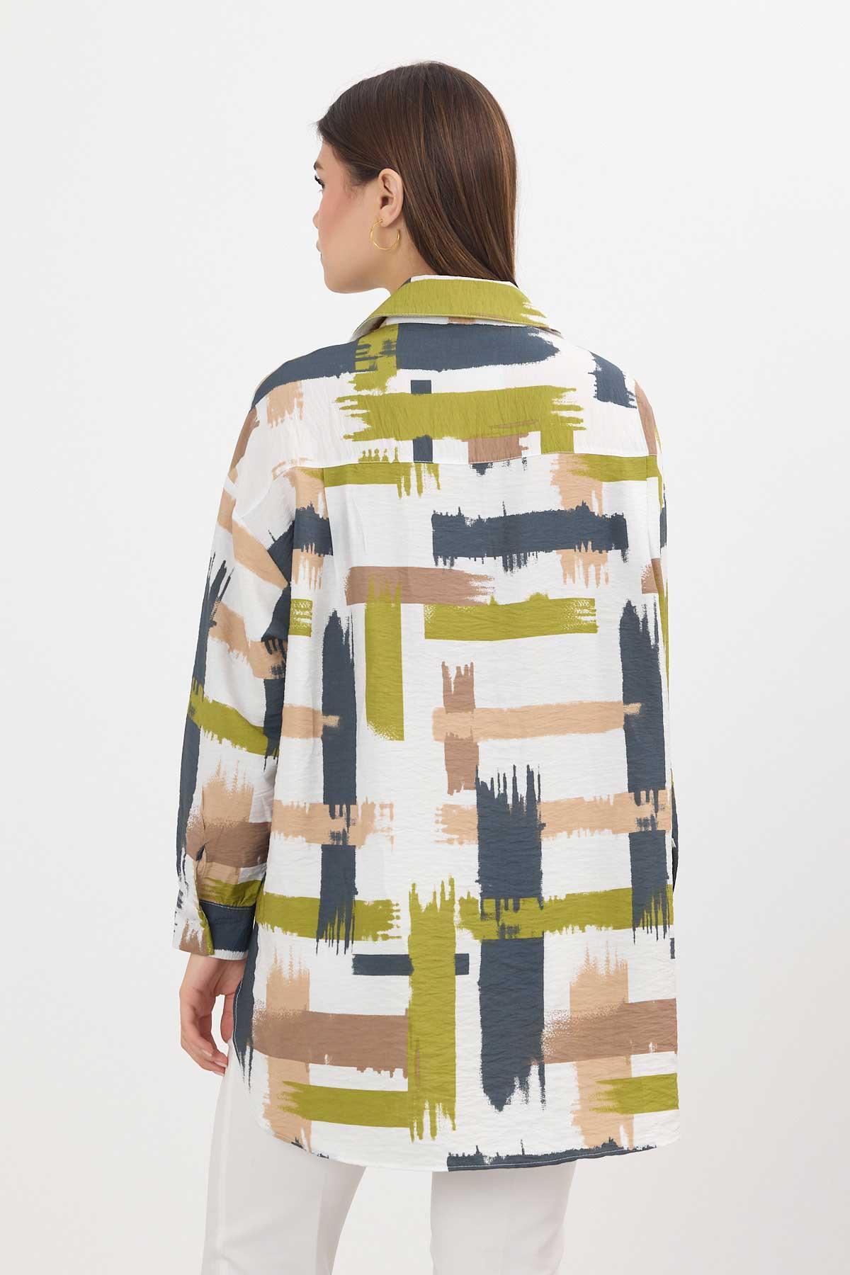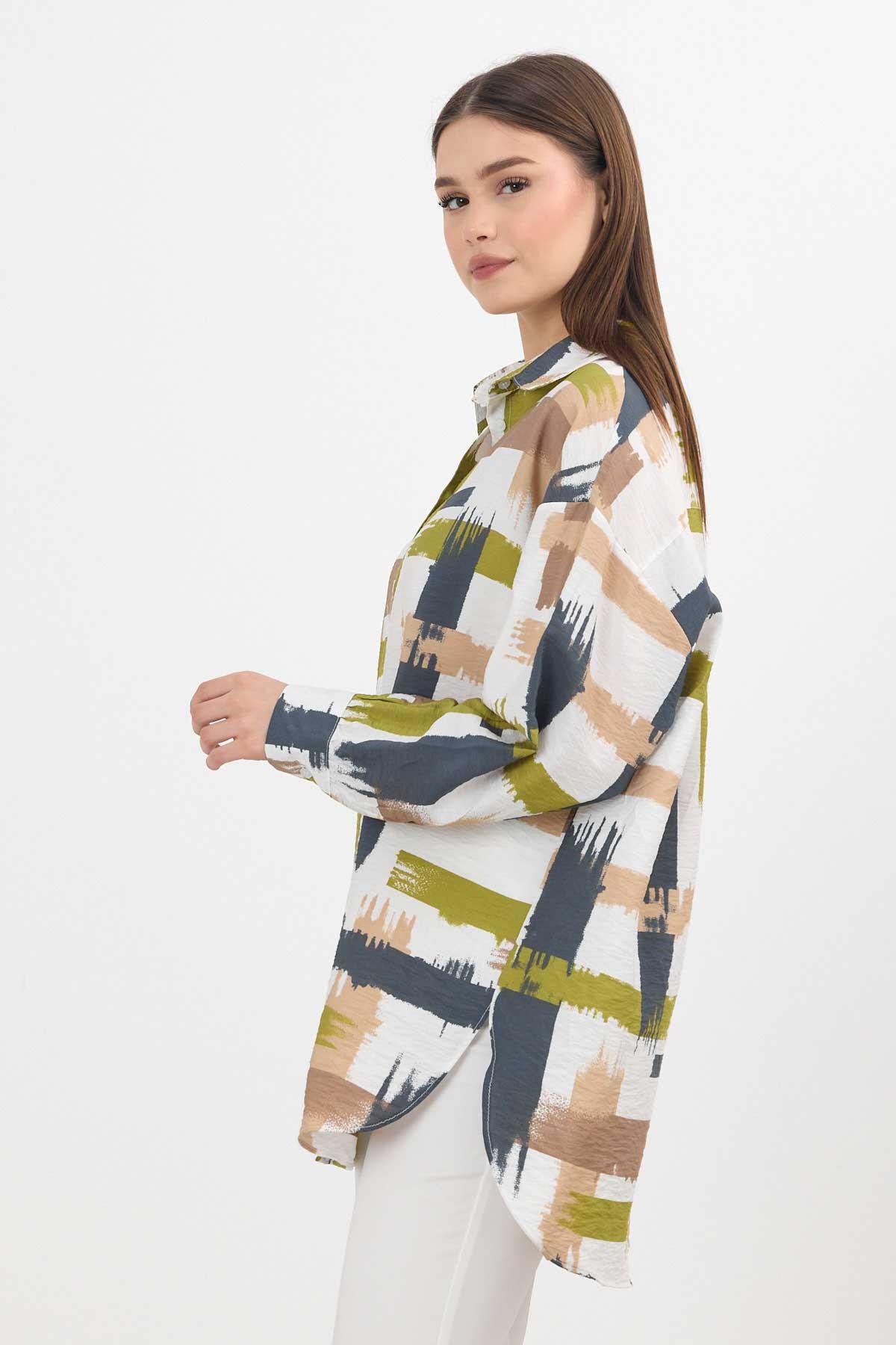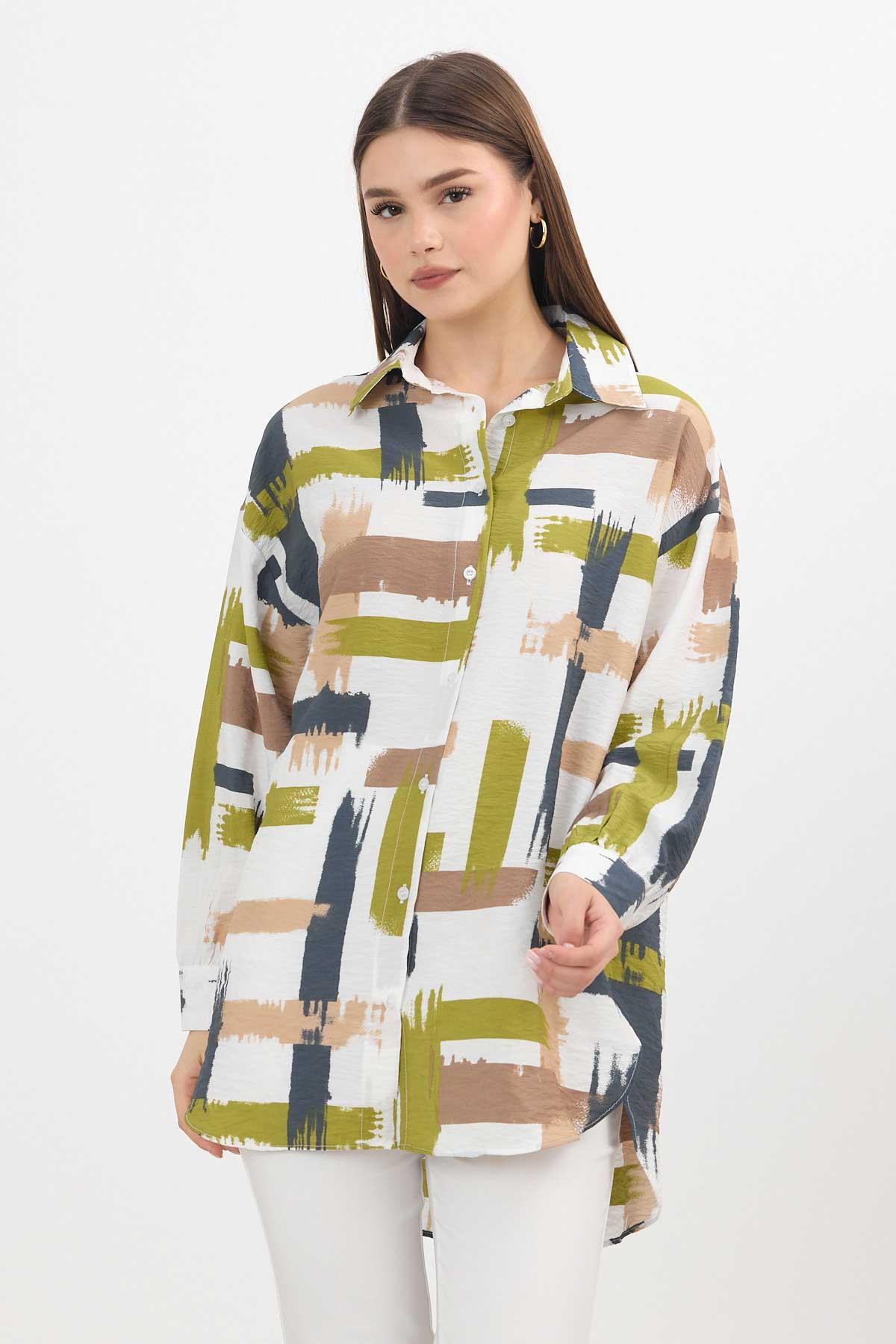 Olive Yeşili Desenli Uzun Gömlek 4369A
