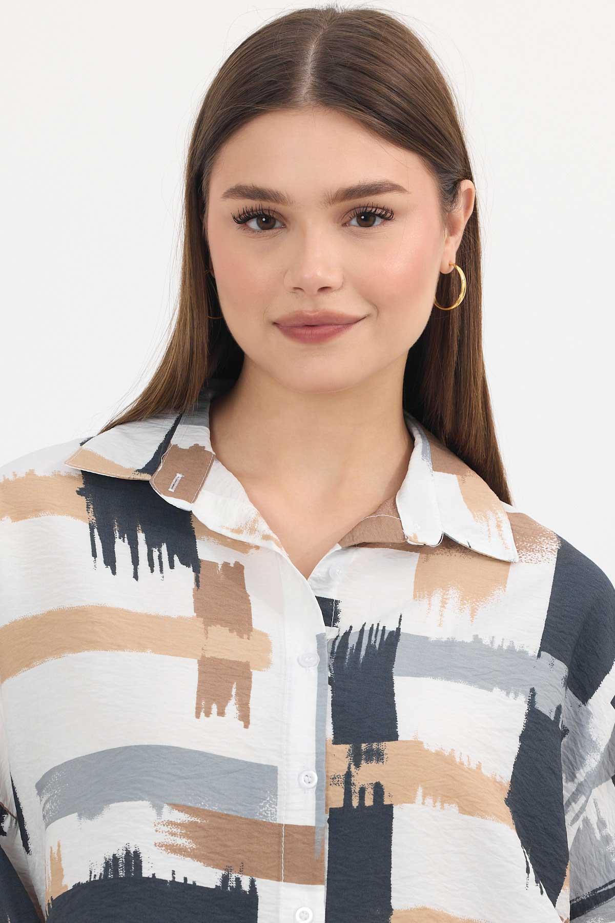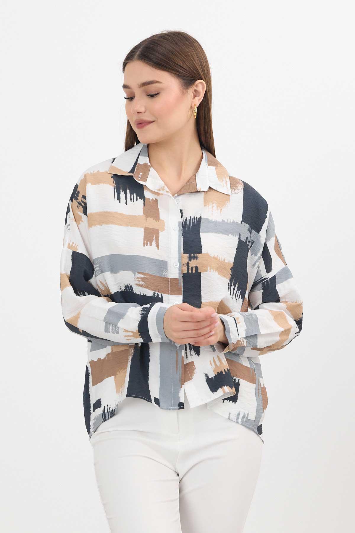 Kahve Çizgili Oversize Gömlek 5460 - RAYS Kahve Çizgili Oversize Gömlek 5460 - RAYS (1)