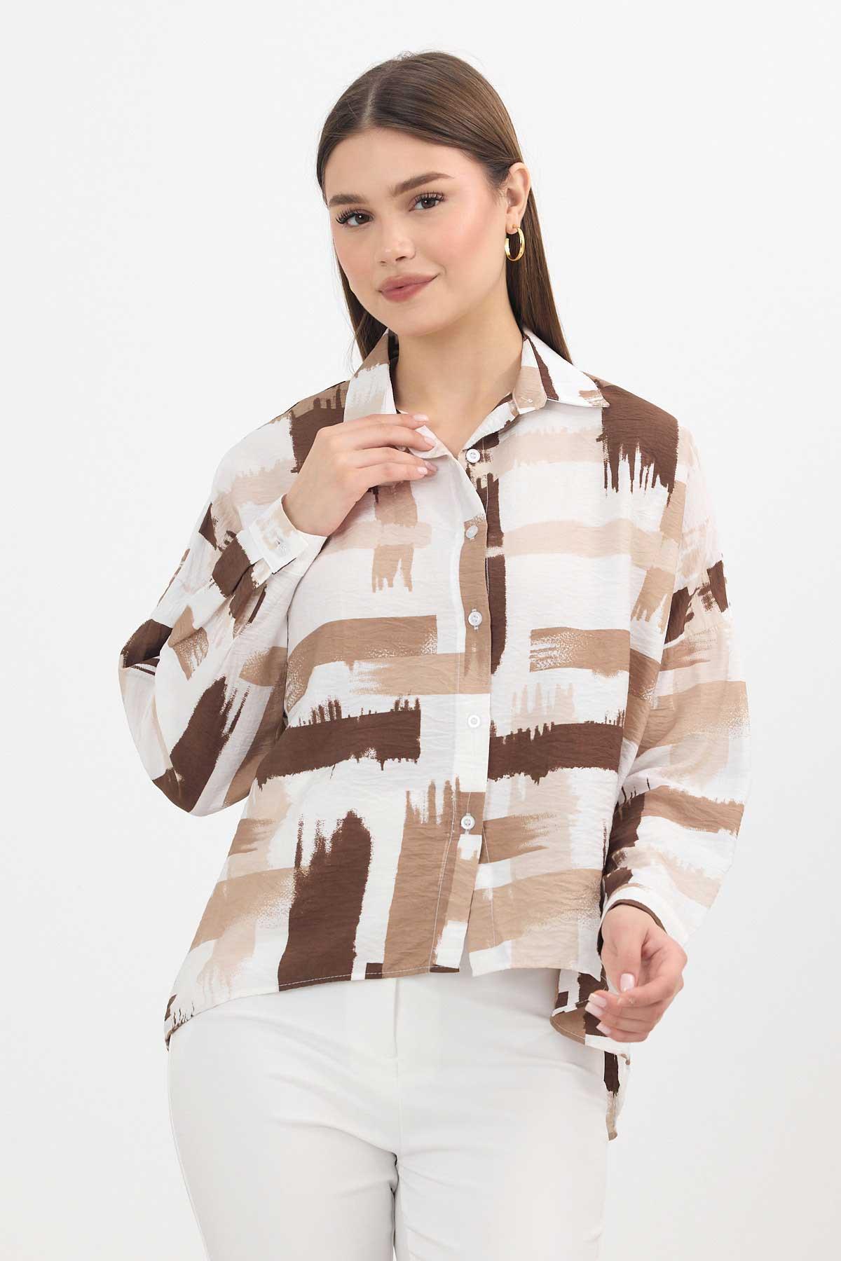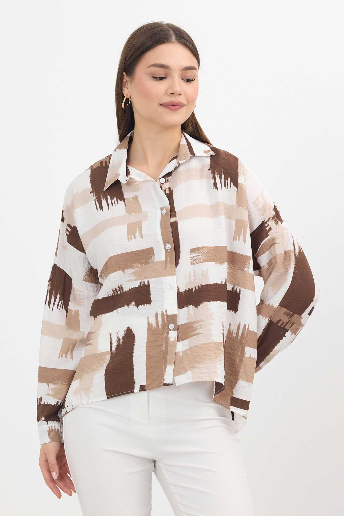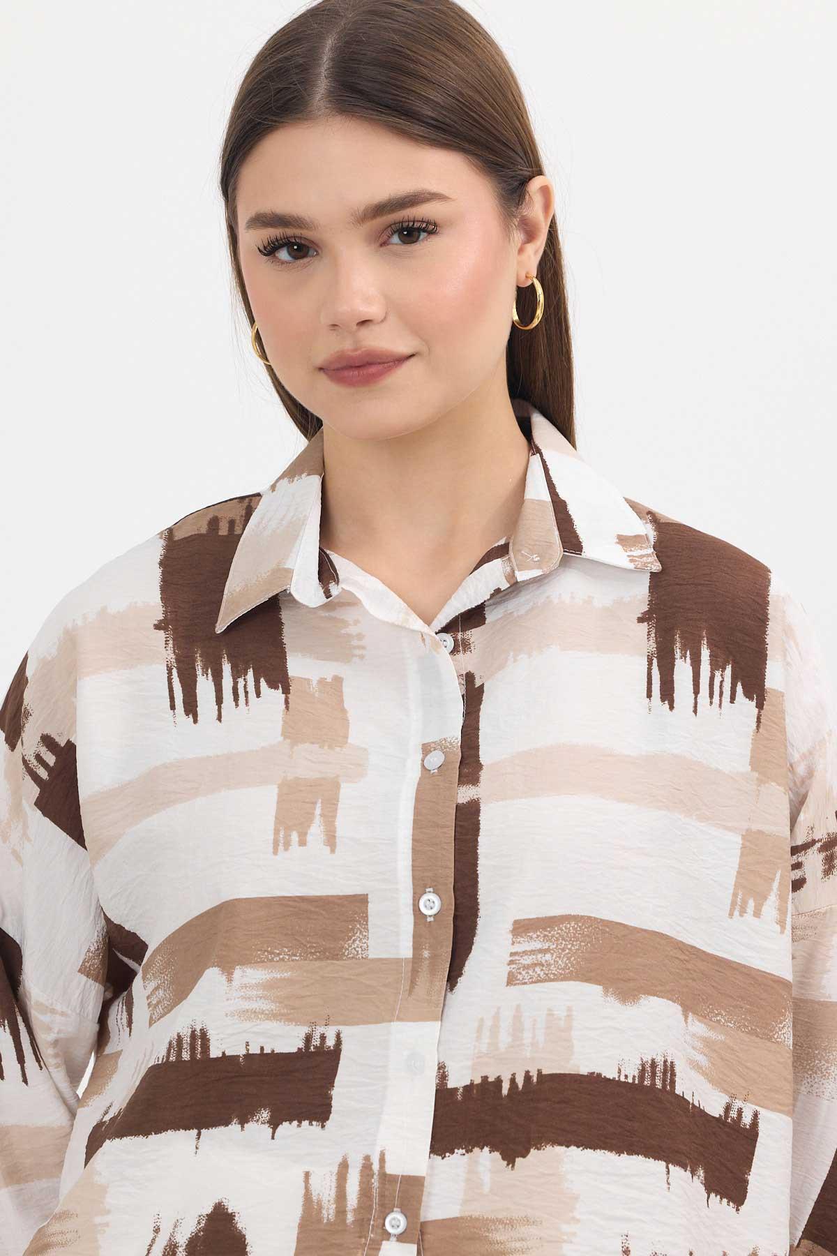 Kahve Çizgili Oversize Gömlek 5460 - RAYS Kahve Çizgili Oversize Gömlek 5460 - RAYS (1)