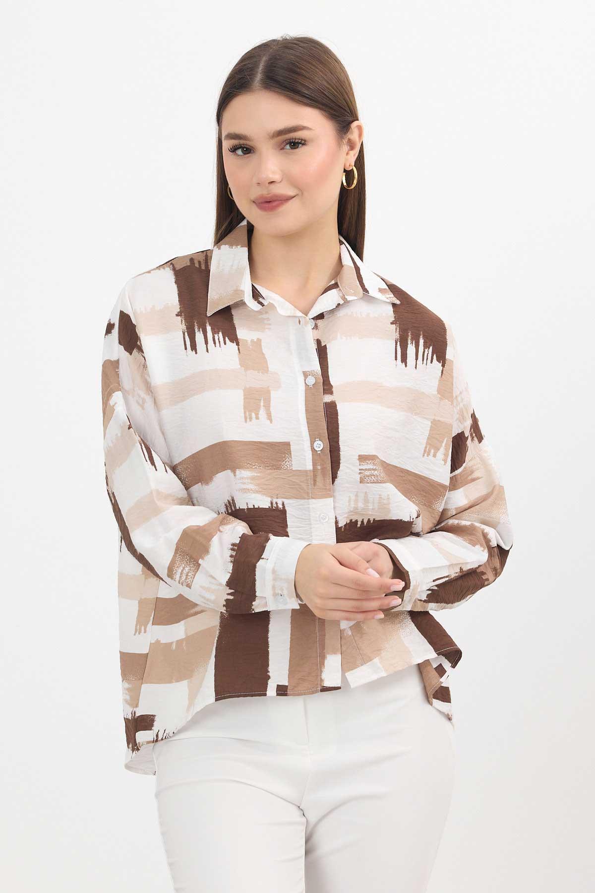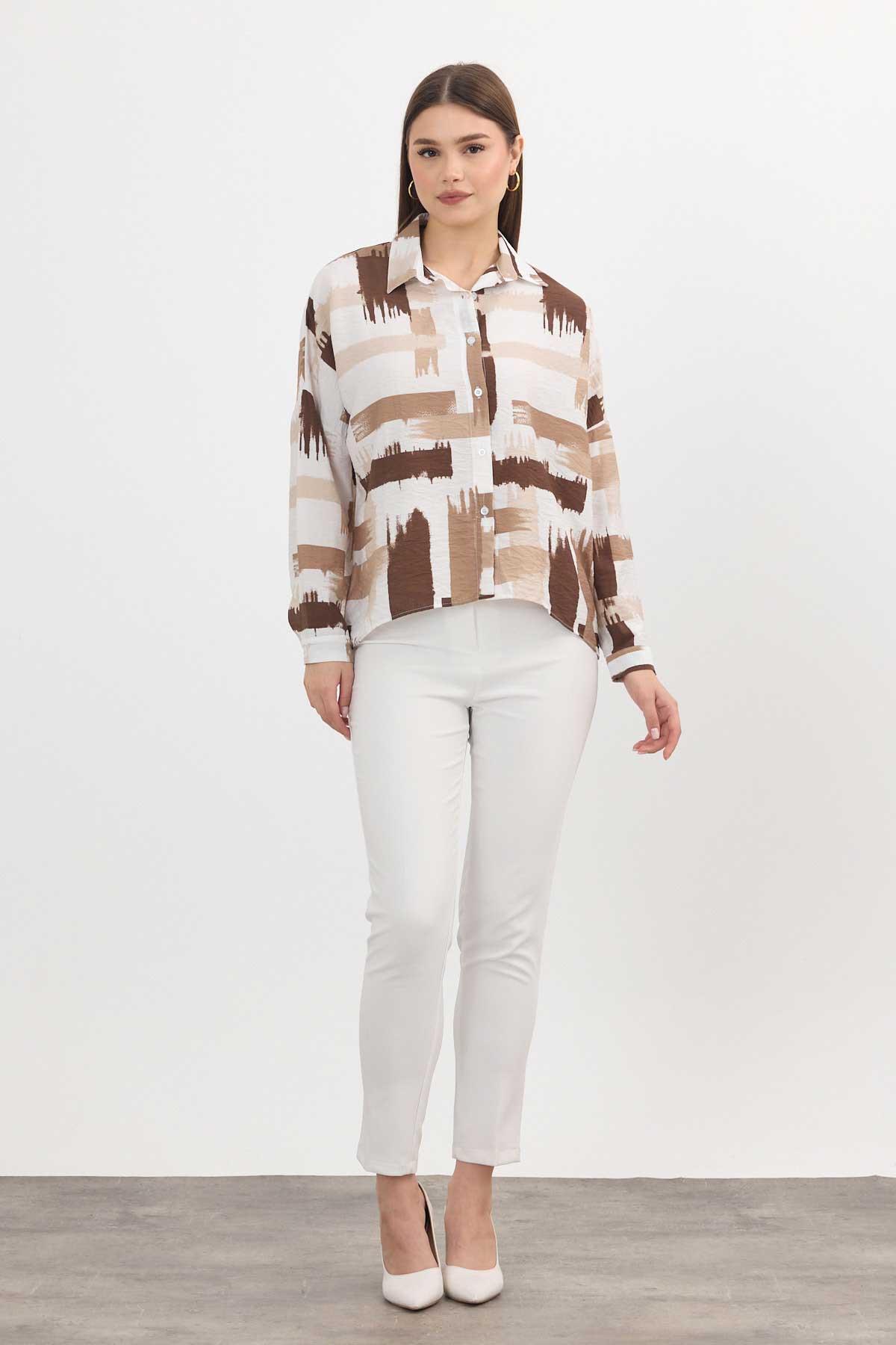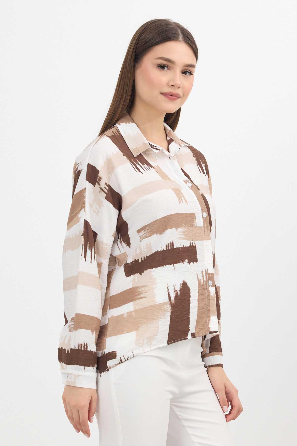 Kahve Çizgili Oversize Gömlek 5460 - RAYS Kahve Çizgili Oversize Gömlek 5460 - RAYS (1)