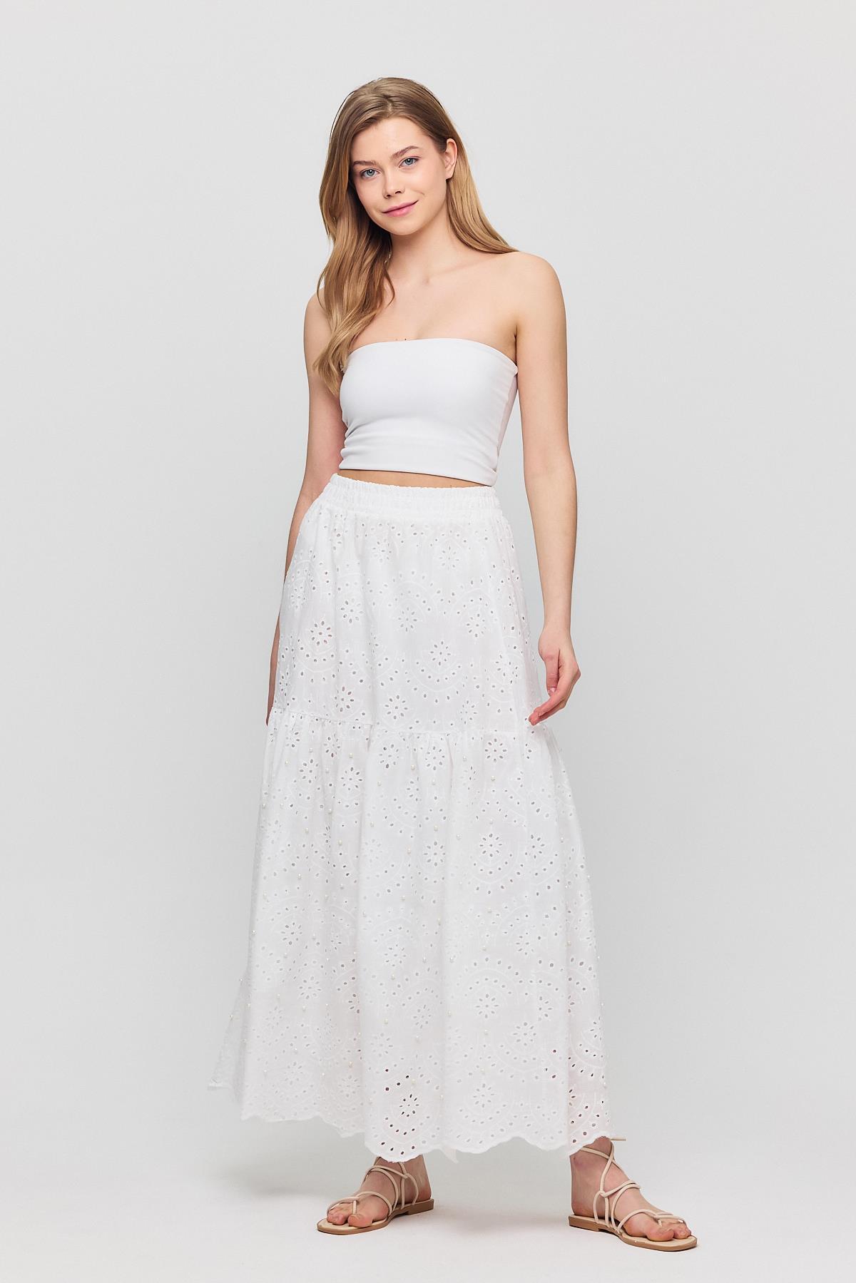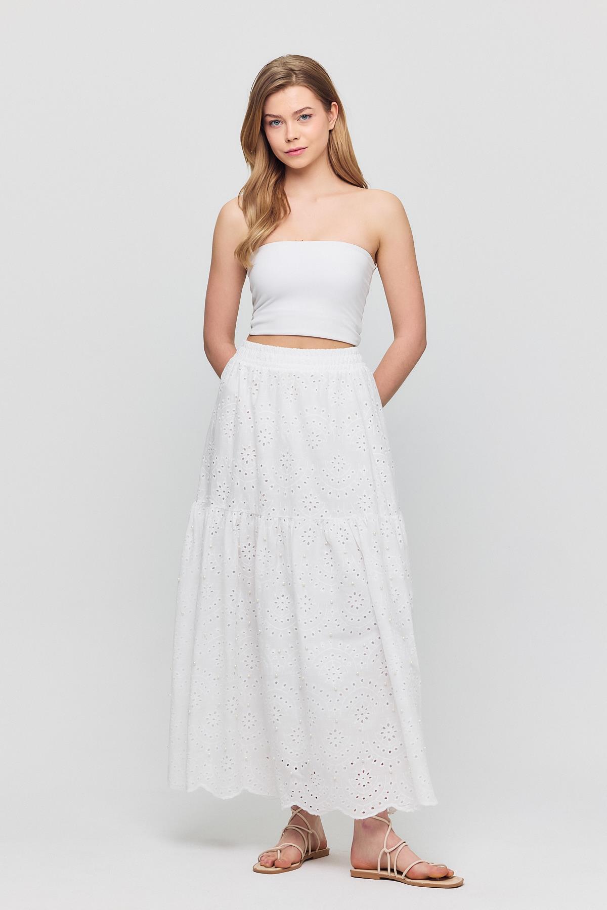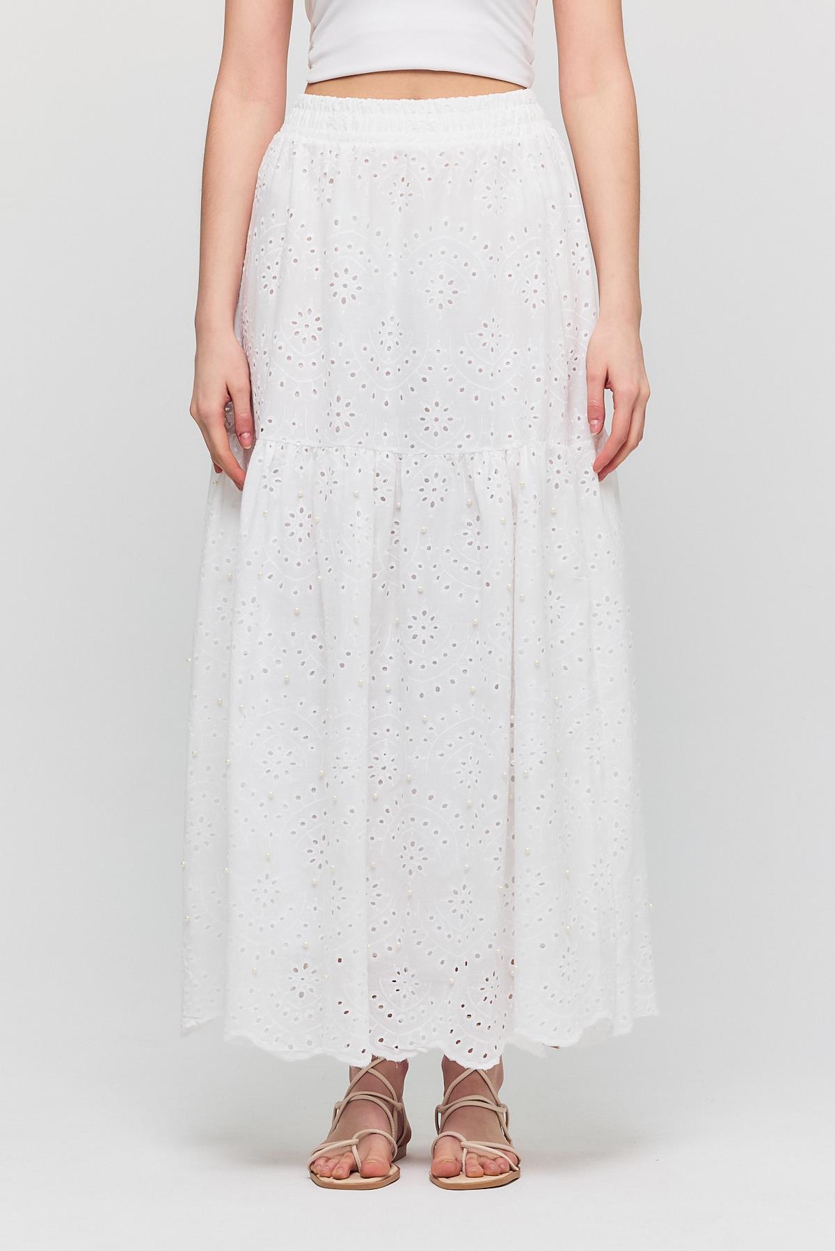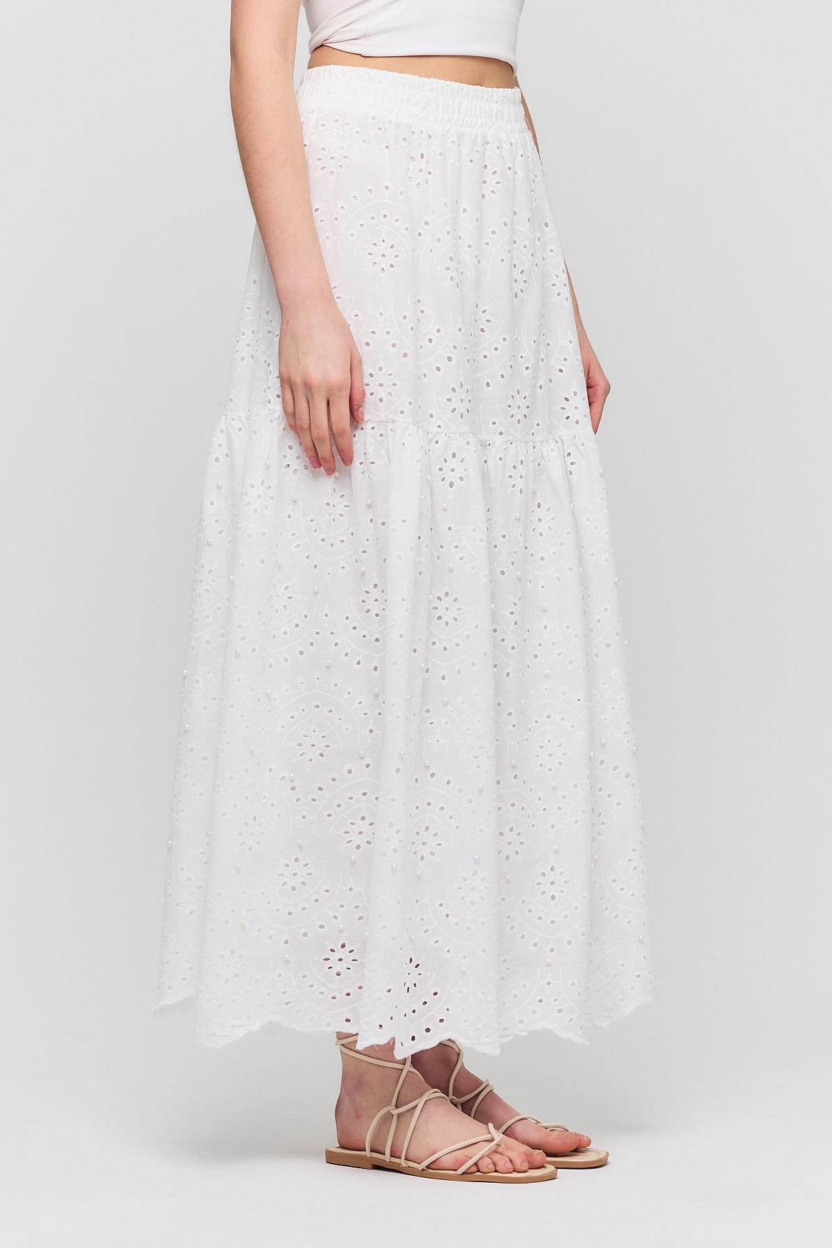 Beyaz İnci Detaylı Etek 4422A
