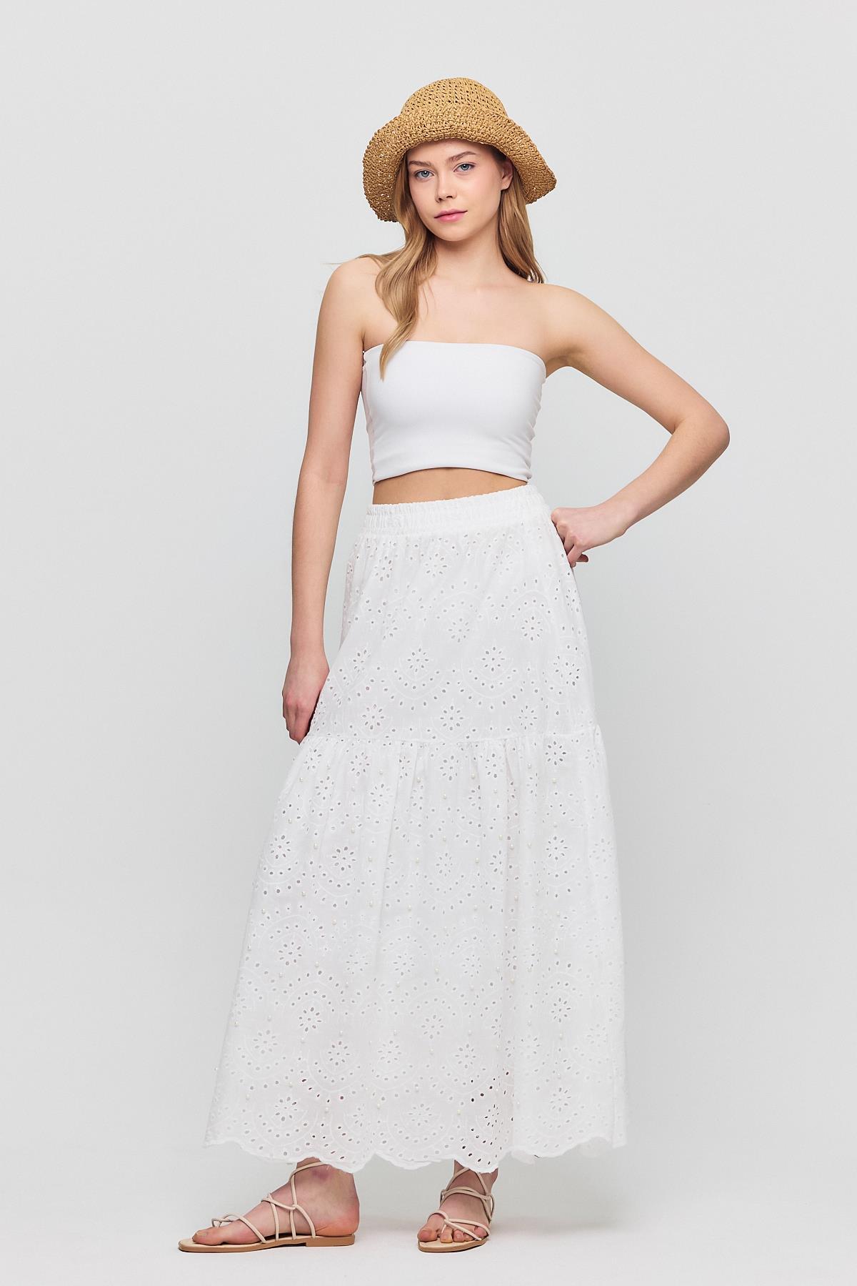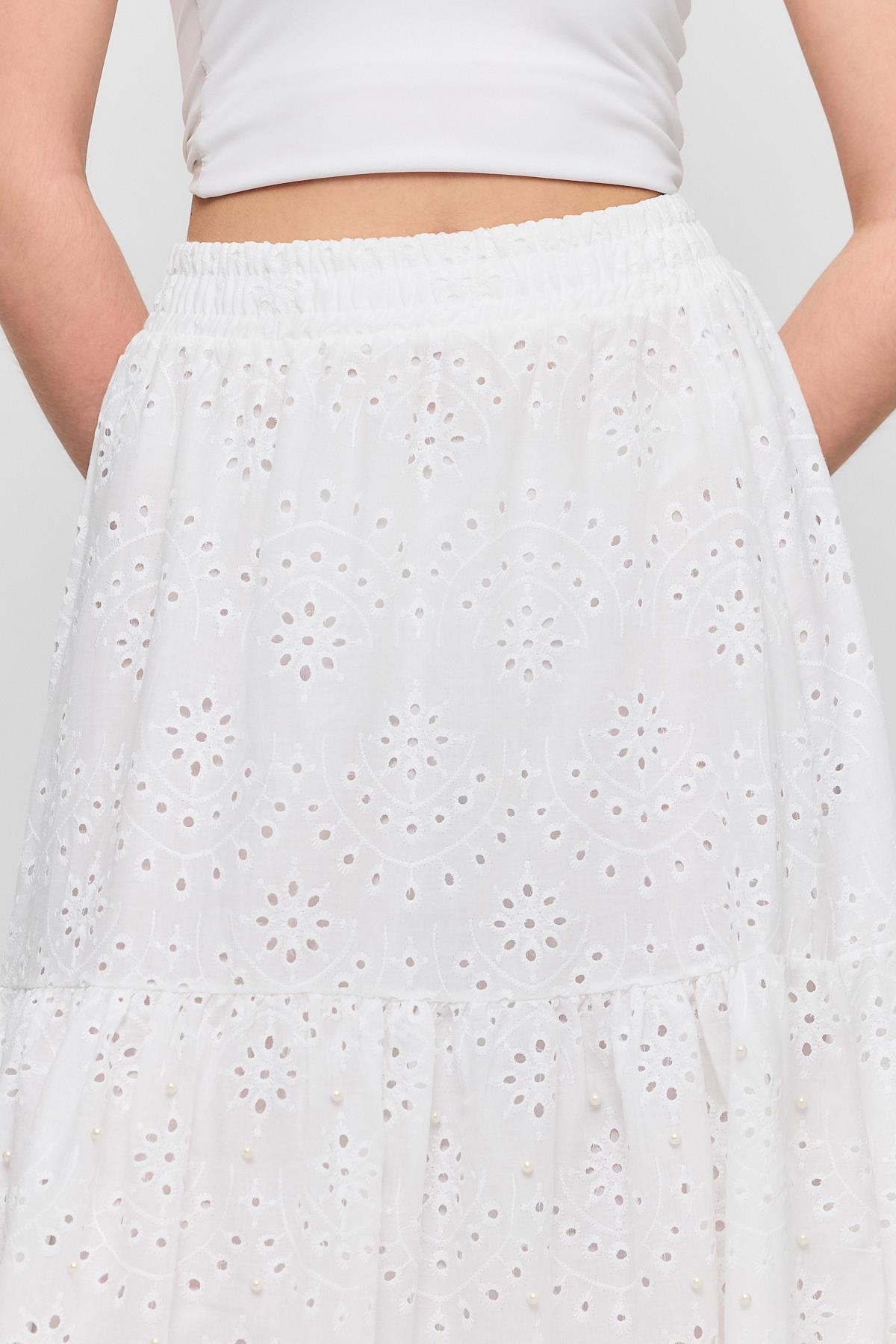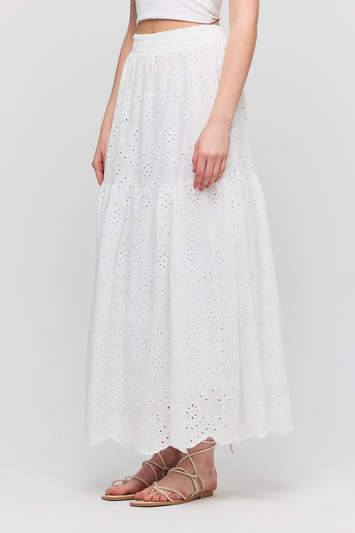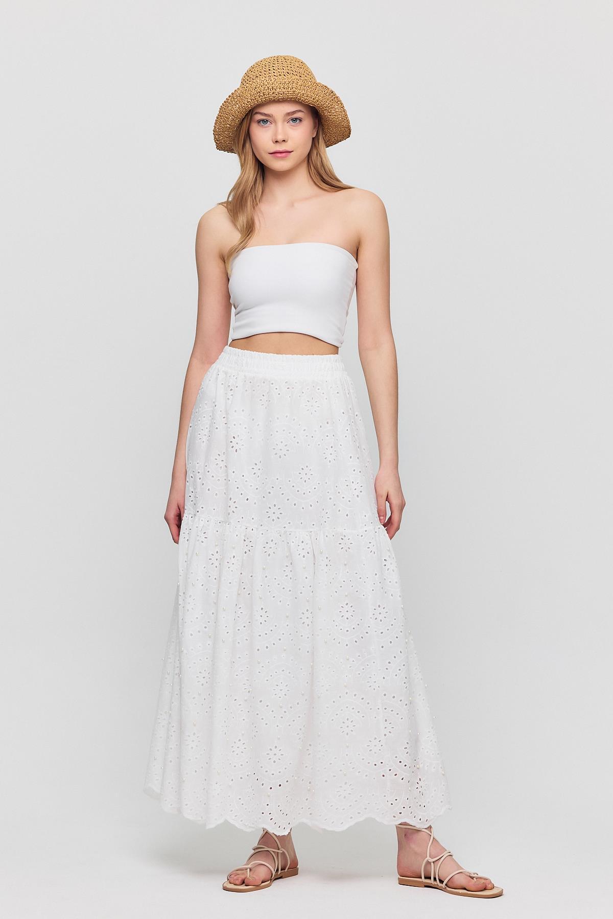 Beyaz İnci Detaylı Etek 4422A