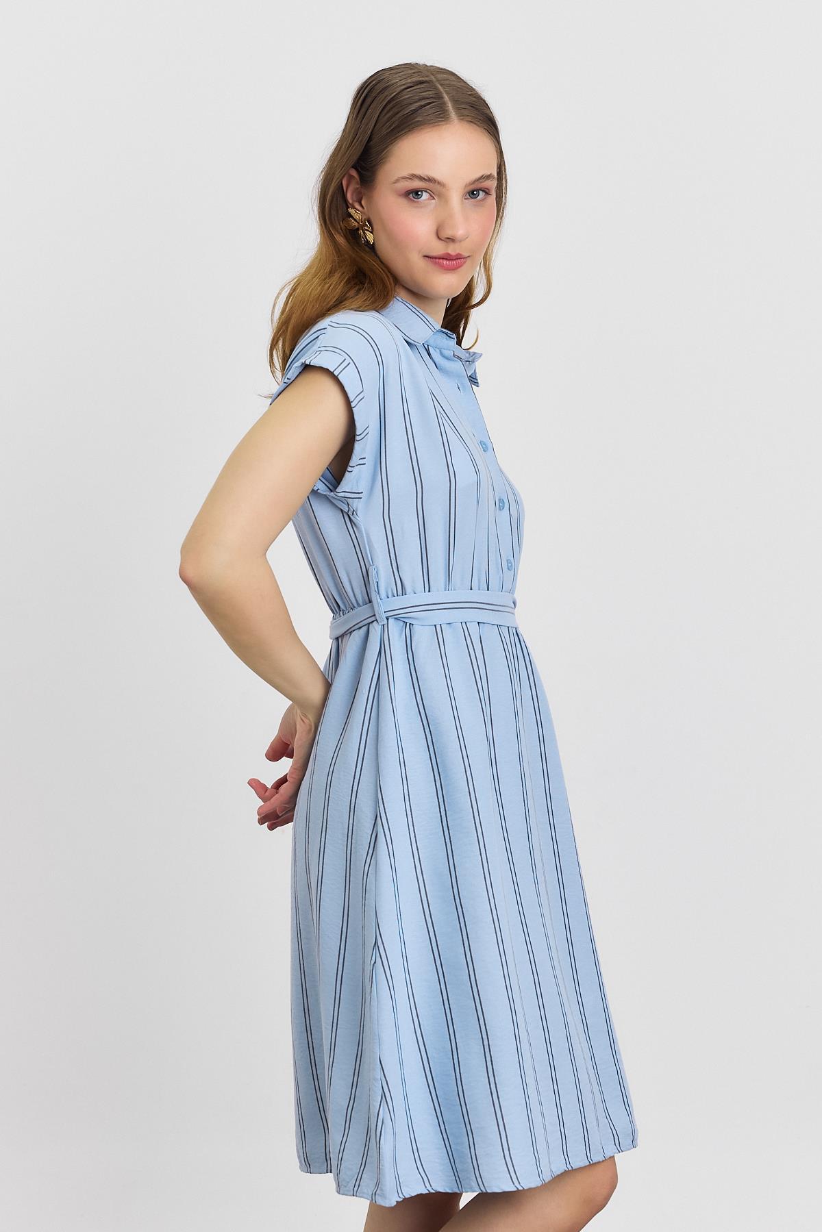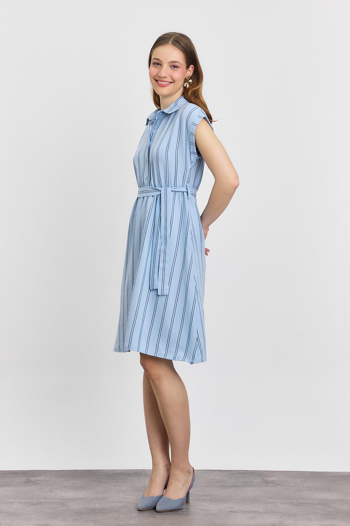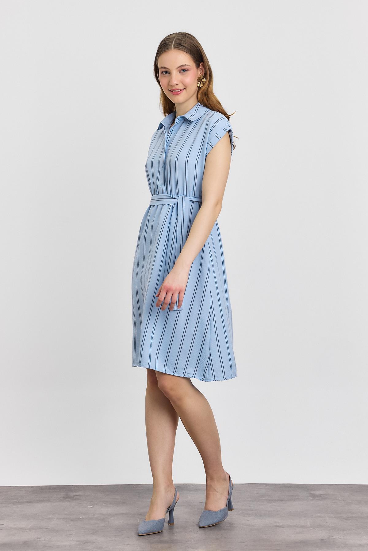 Mavi Çizgili Sıfır Kol Elbise 4444A