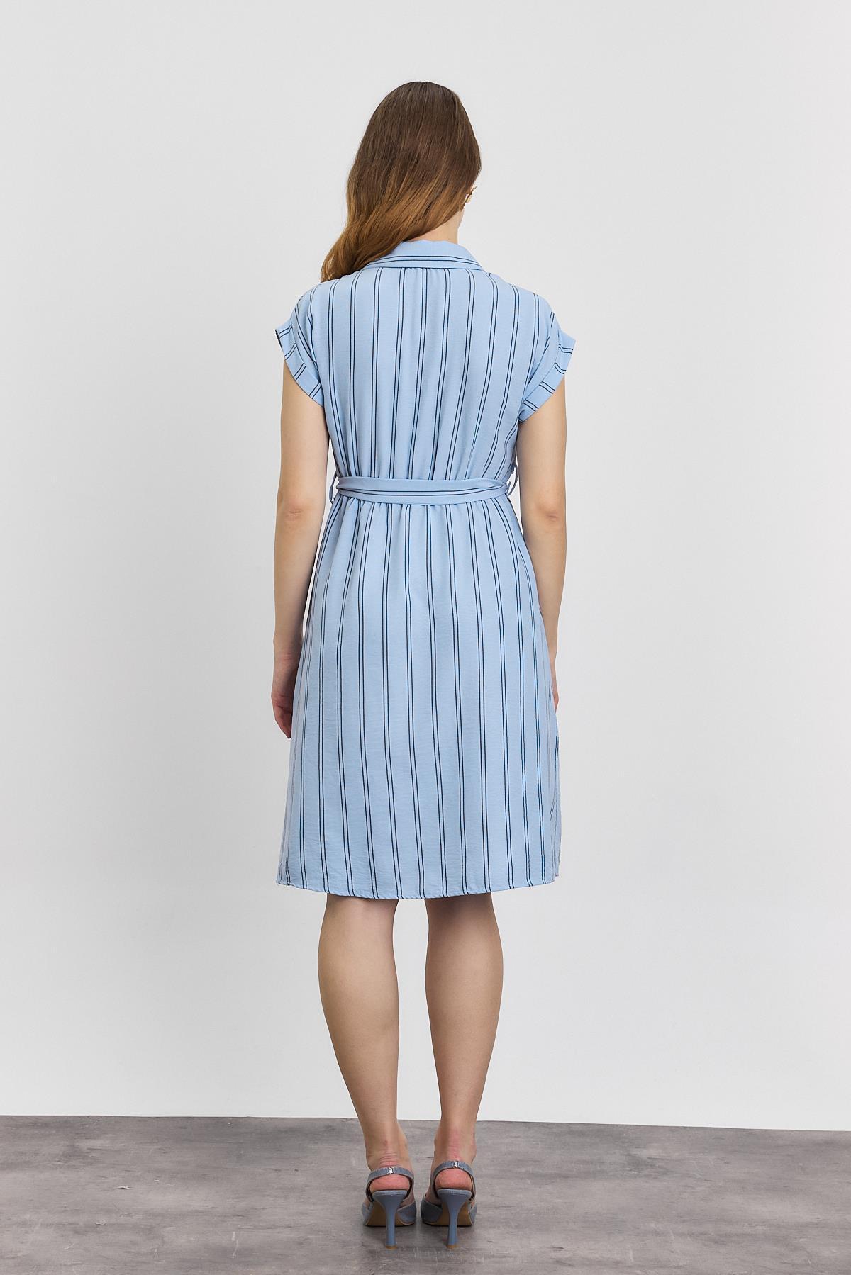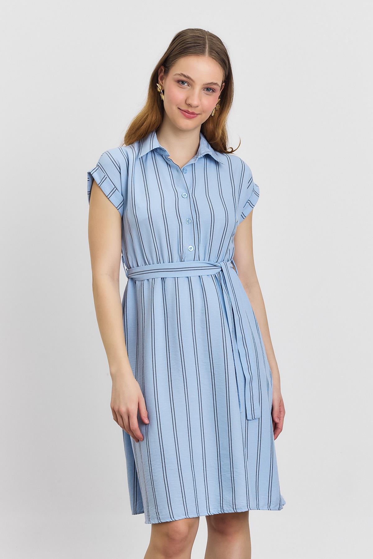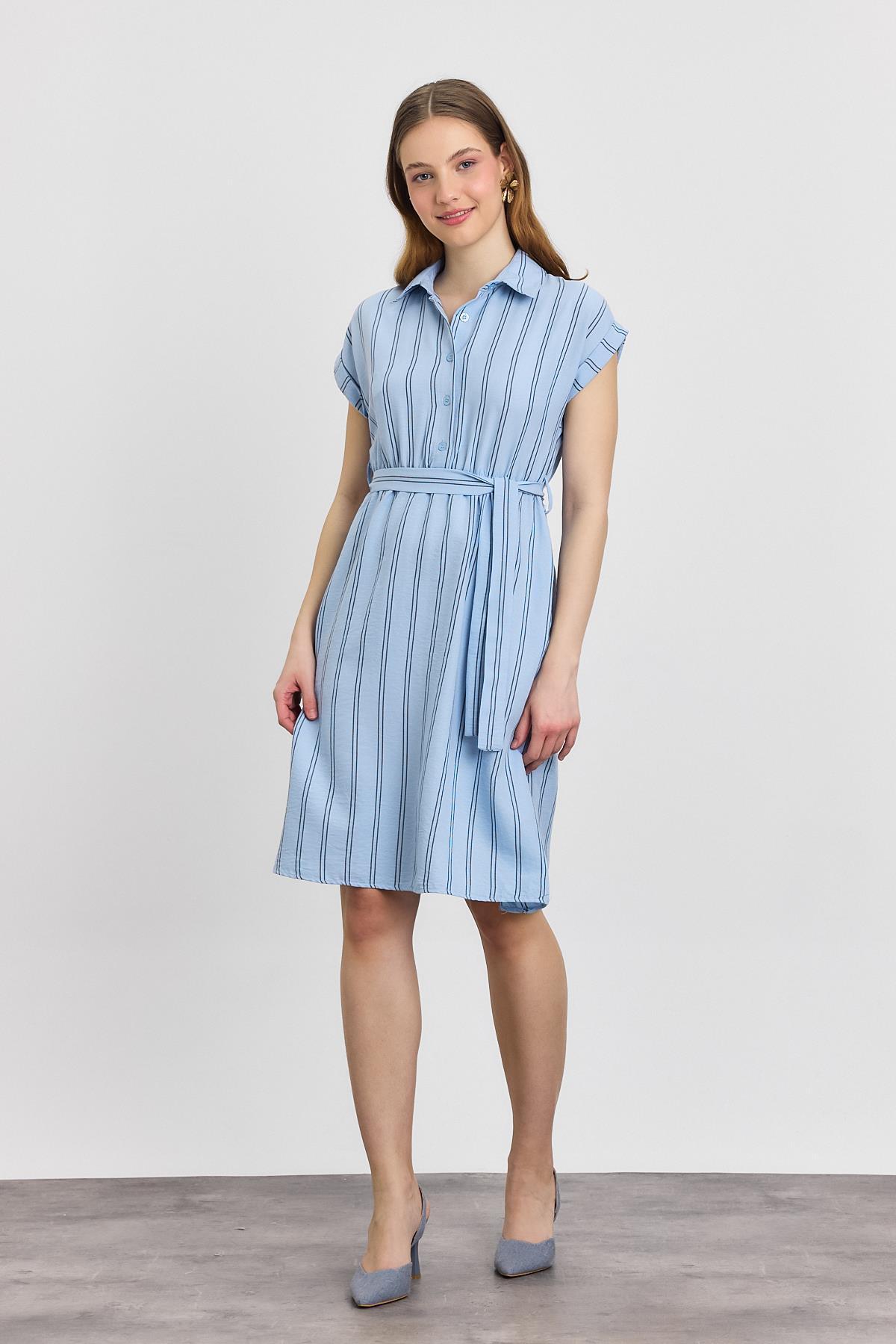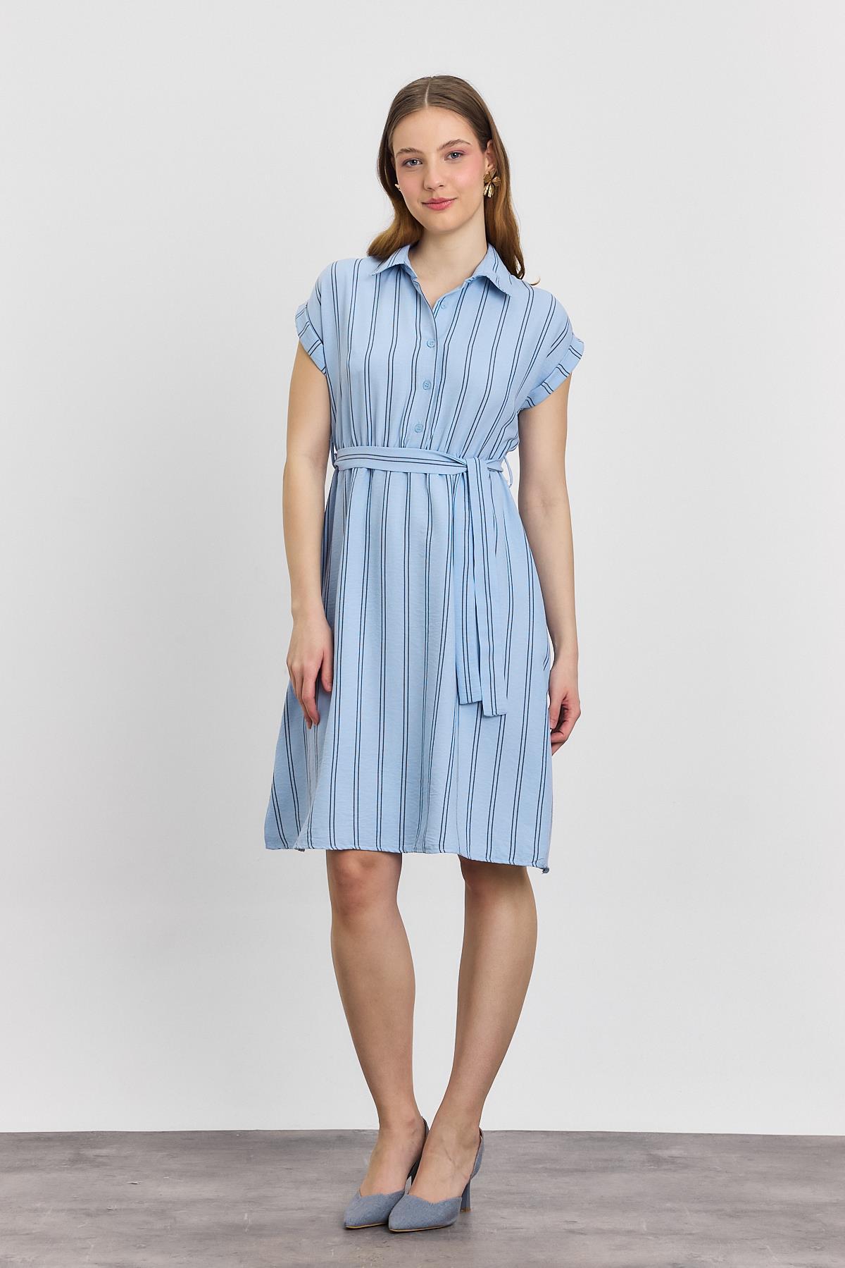 Mavi Çizgili Sıfır Kol Elbise 4444A