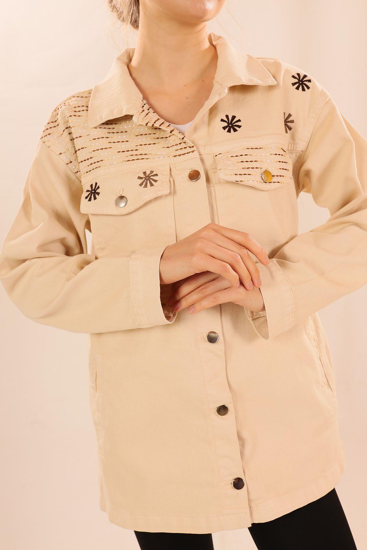 Bej Cep Detay Gabardin Ceket 4447