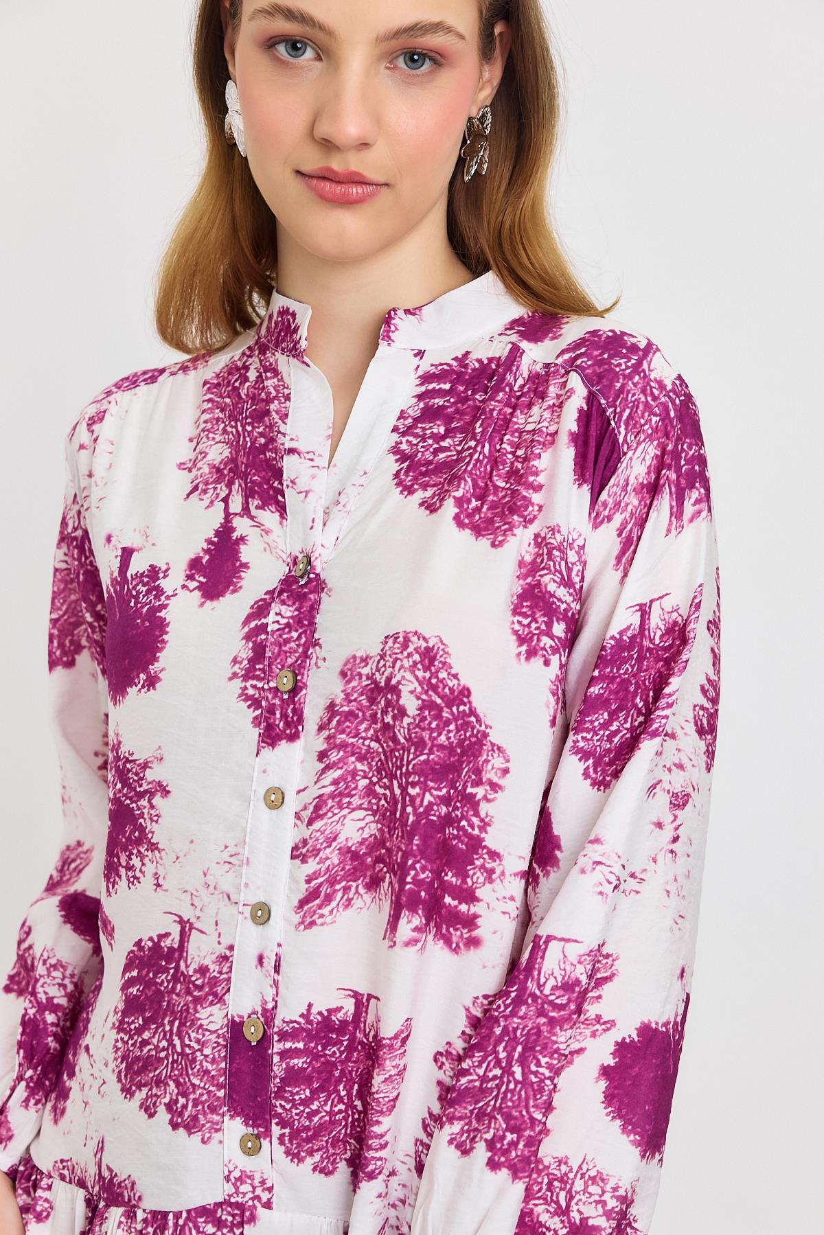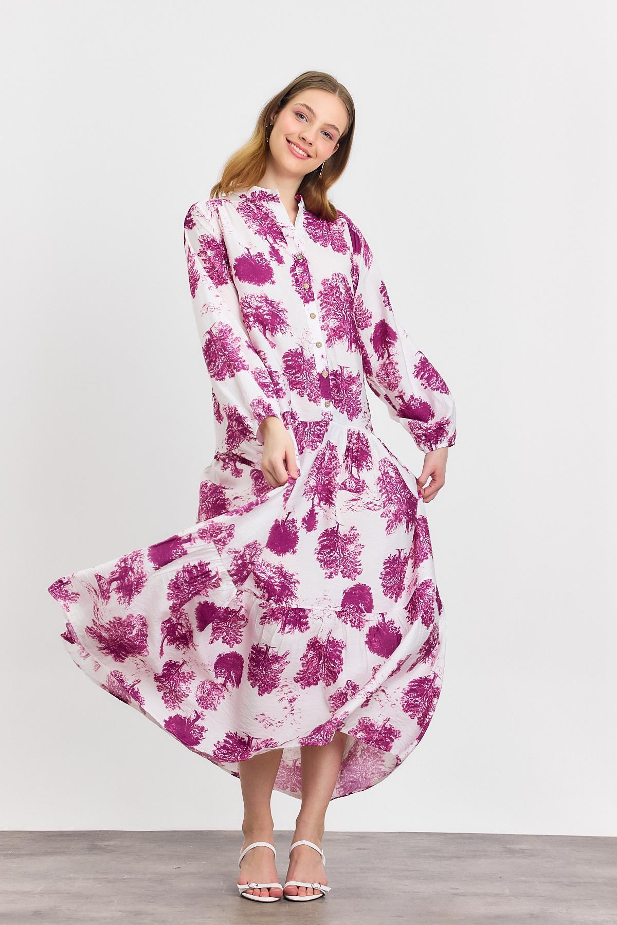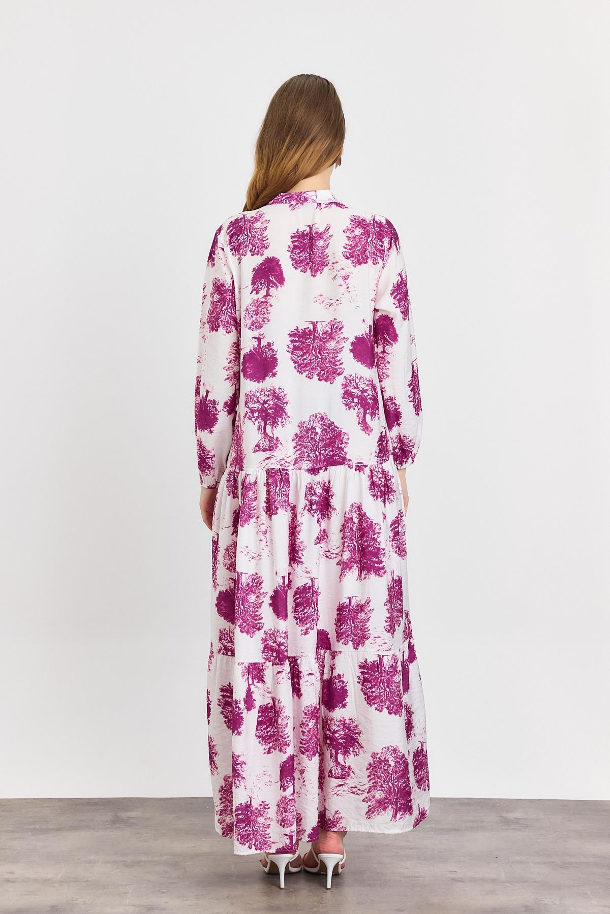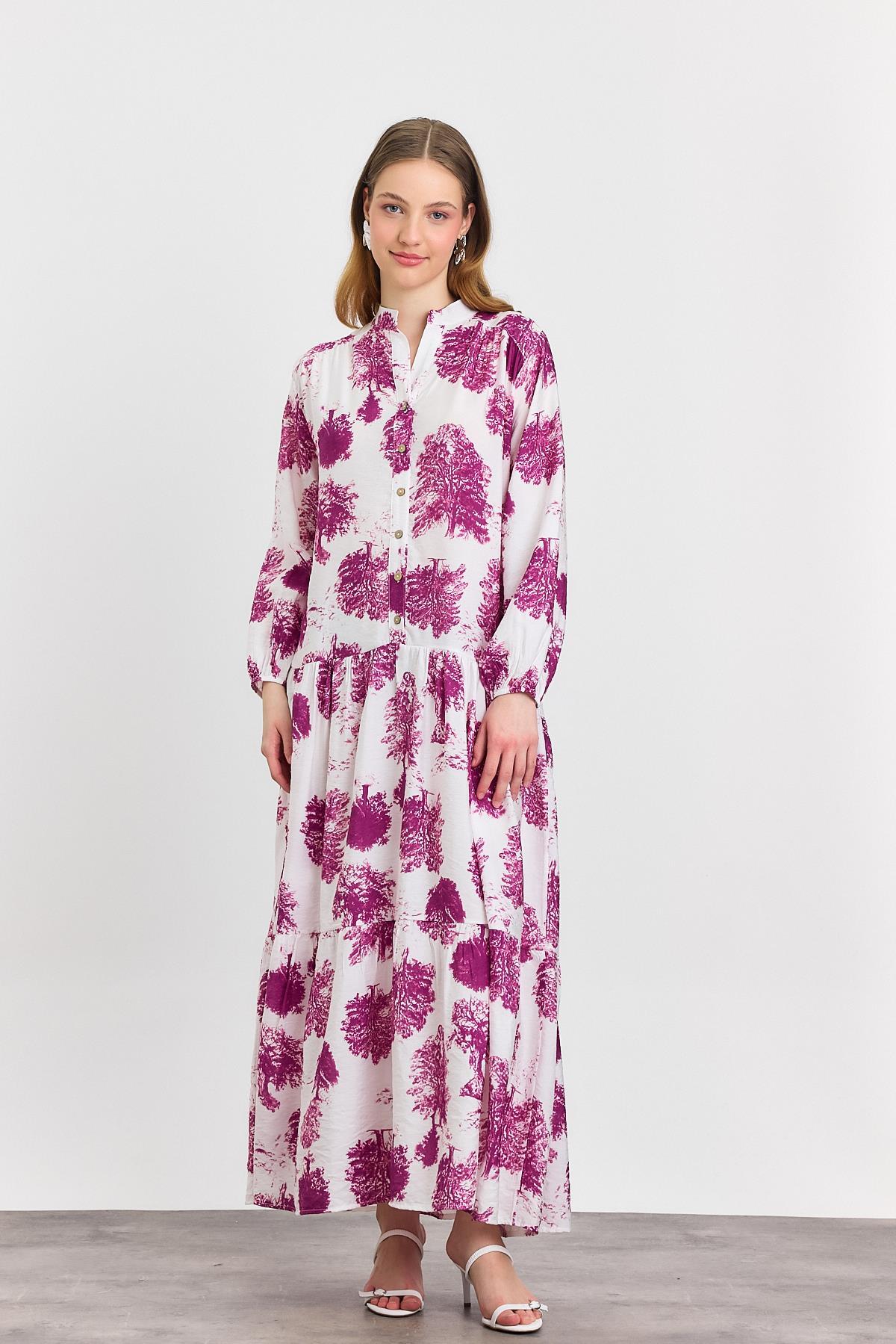 Fuşya Ağaç Desen Düğmeli Elbise 4465A