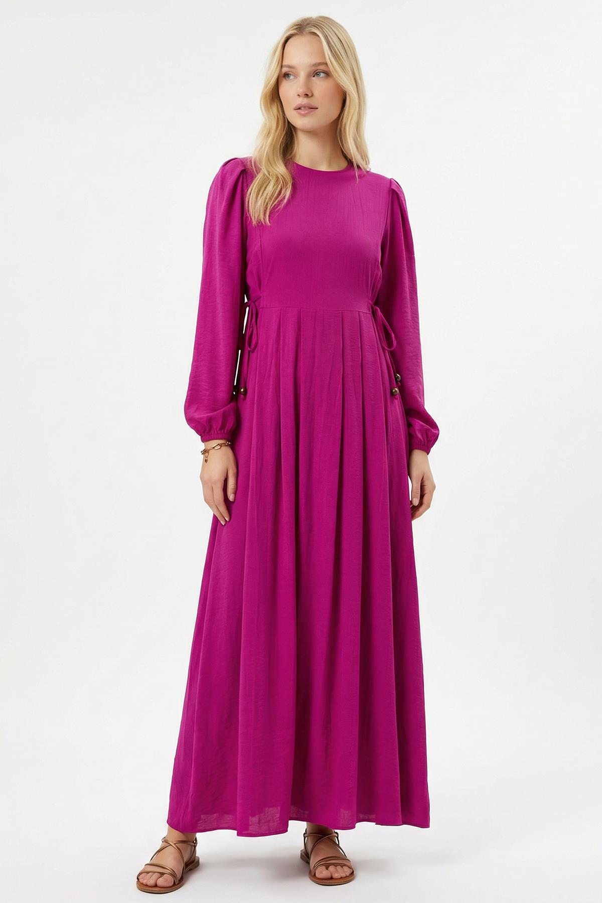 Fuşya Yan Bağlamalı Uzun Elbise 4470A