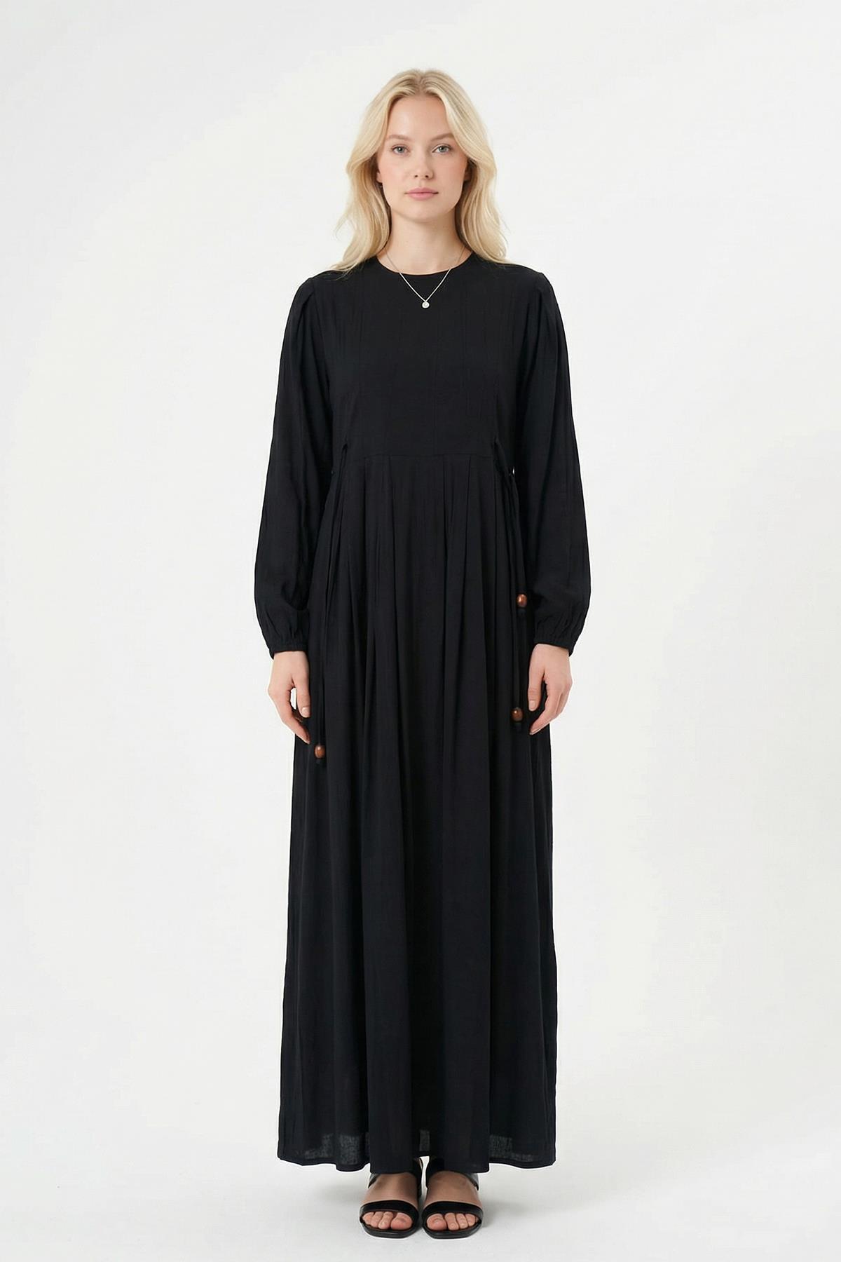 Siyah Yan Bağlamalı Uzun Elbise 4470A