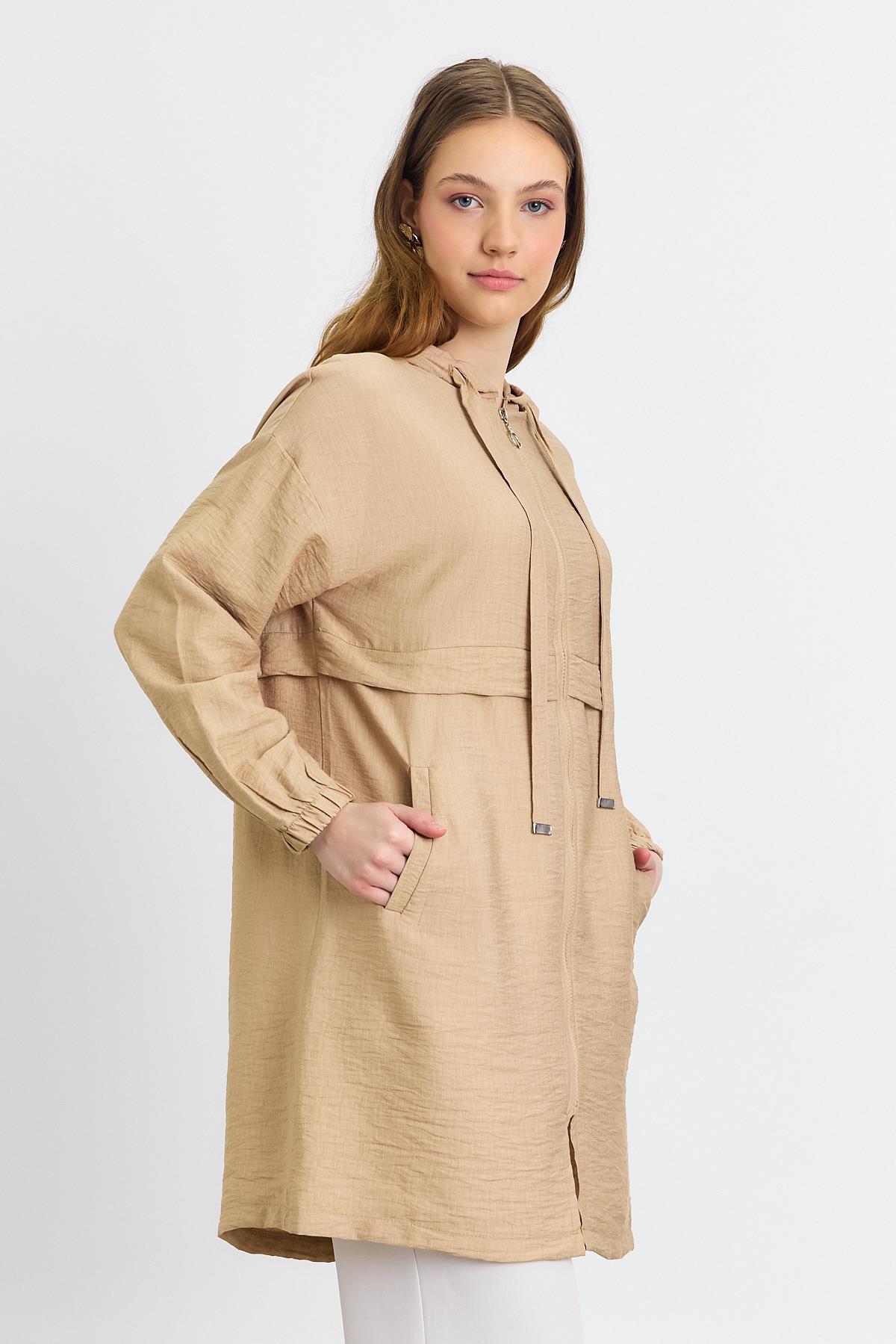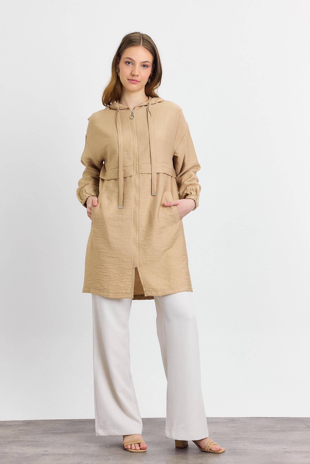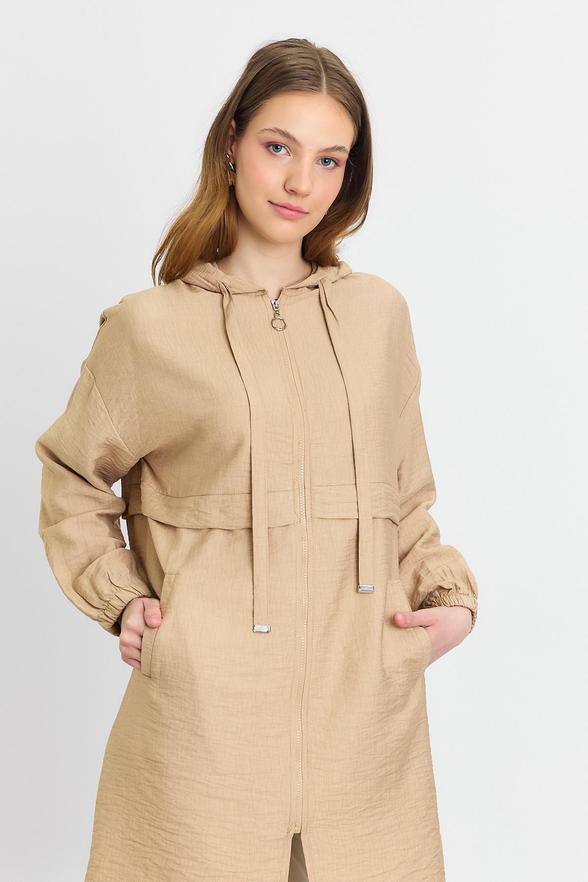 4472A Kapüşonlu Cepli Kap Vizon