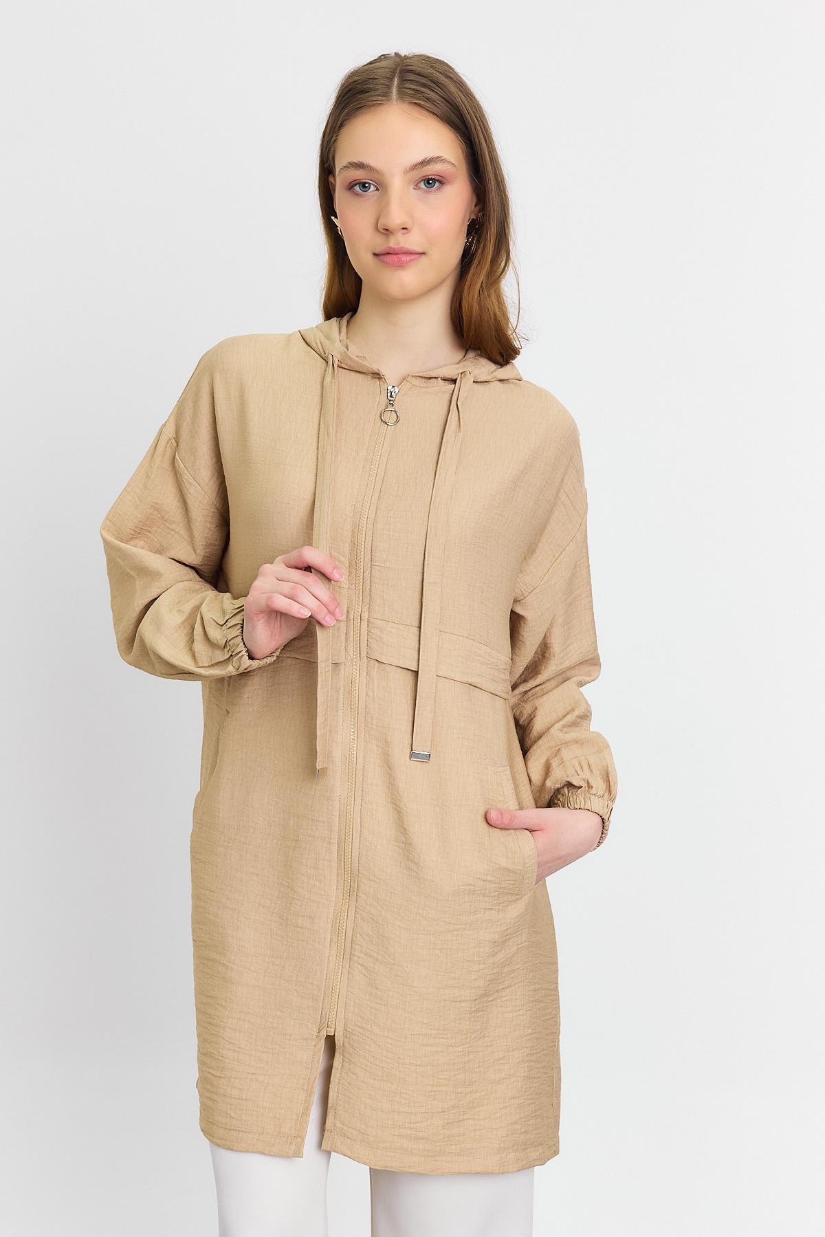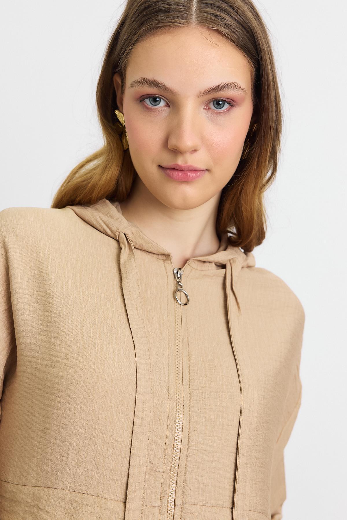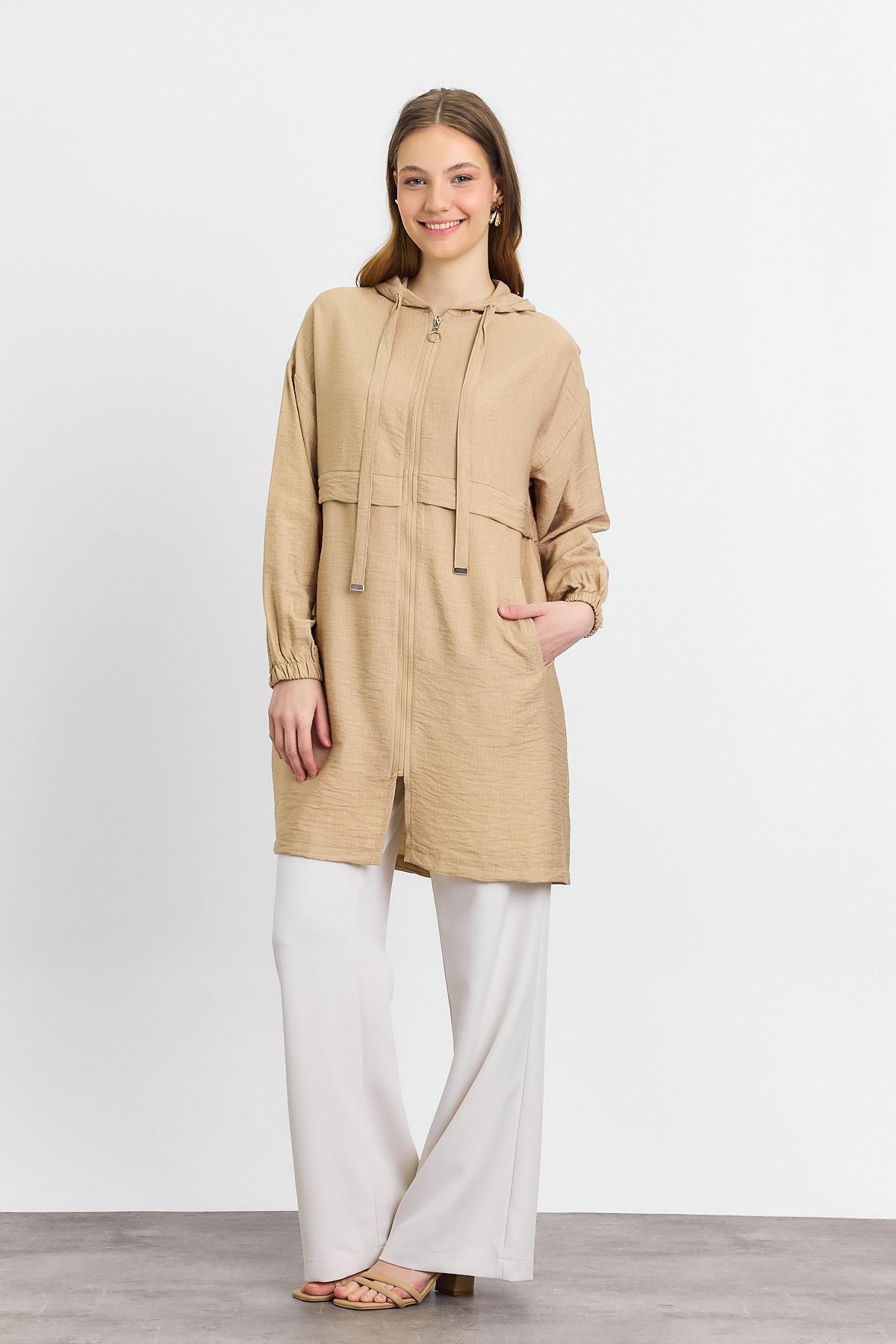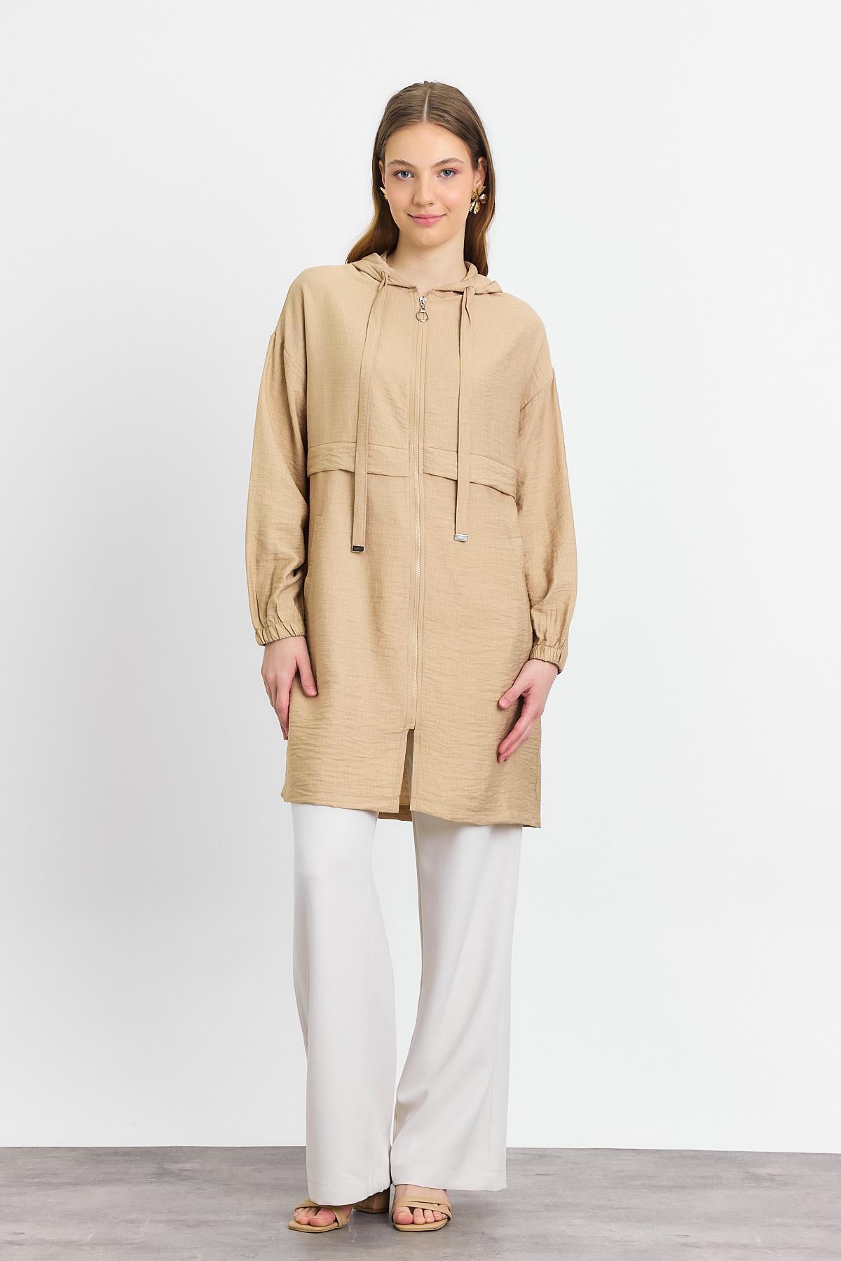 4472A Kapüşonlu Cepli Kap Vizon