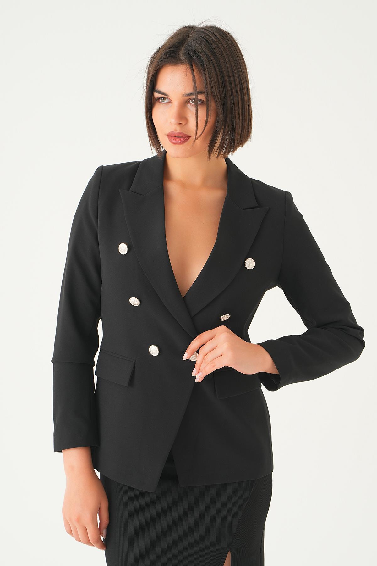 Siyah Düğmeli Klasik Ceket 4488