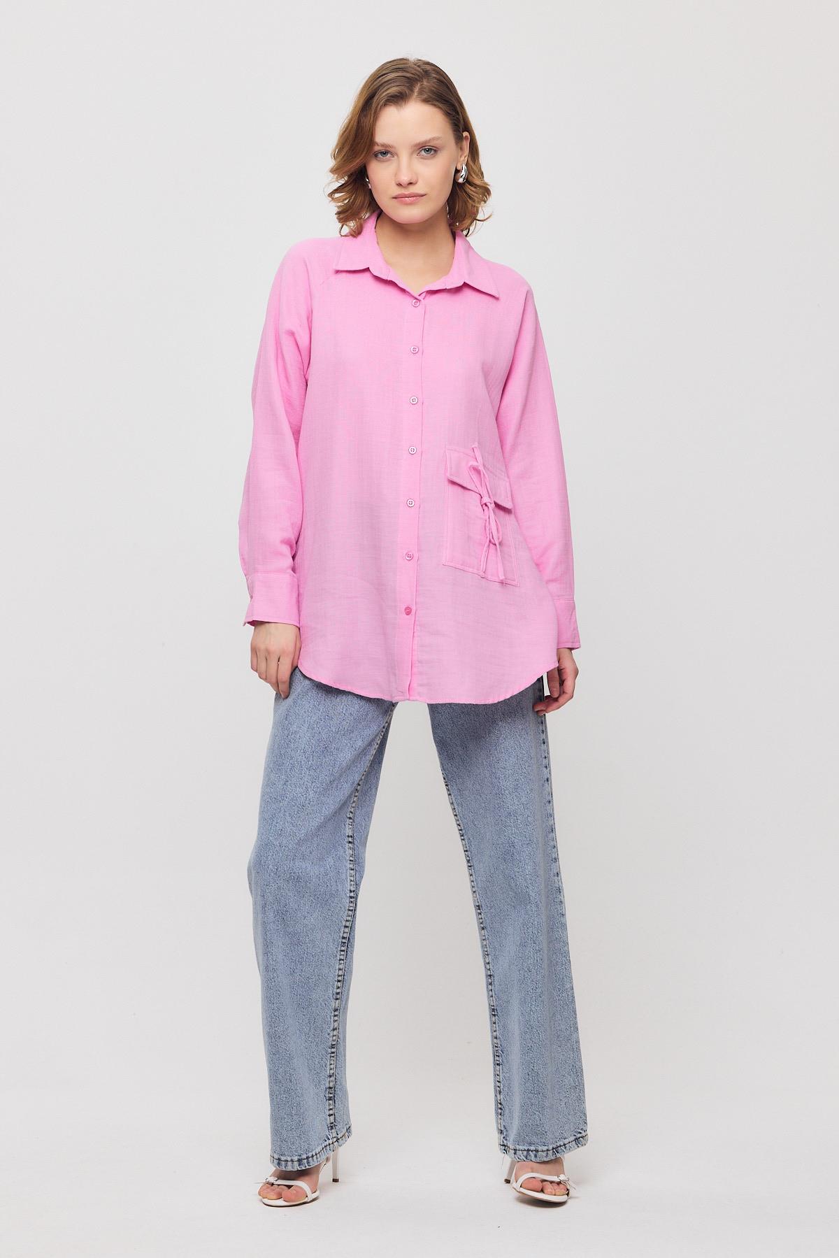 Pembe Tek Cep Düğmeli Gömlek 4516A