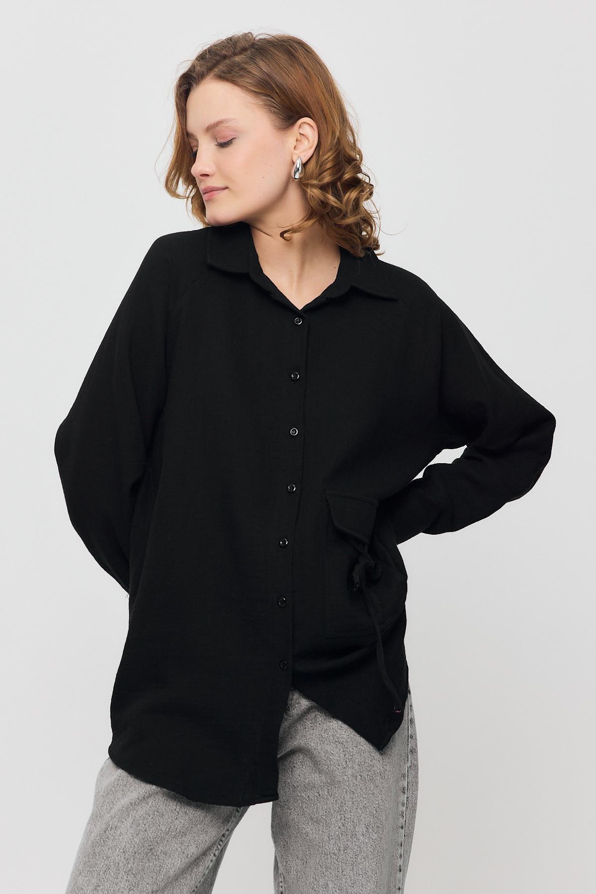 Siyah Tek Cep Düğmeli Gömlek 4516A