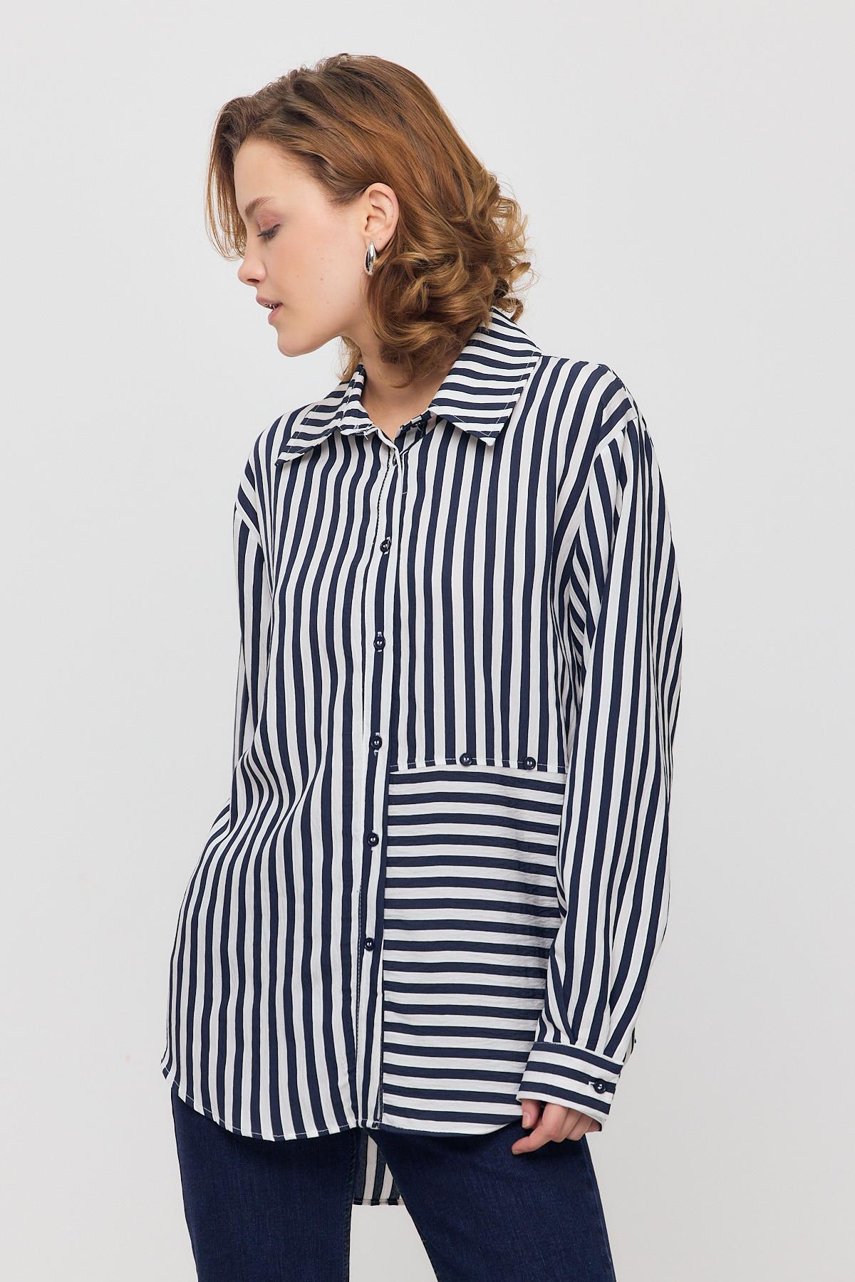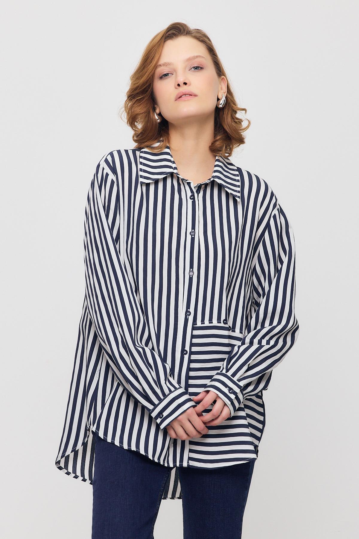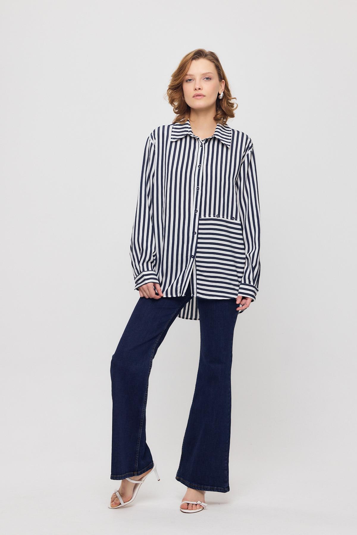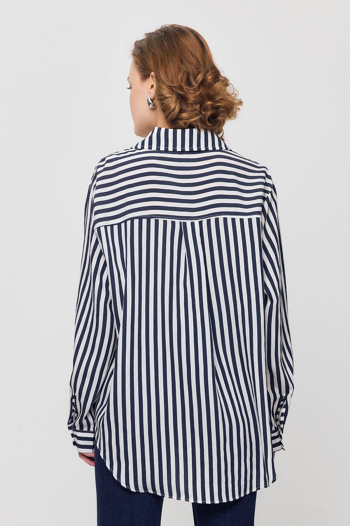 Mavi Çizgili Oversize Gömlek 5460 - RAYS Mavi Çizgili Oversize Gömlek 5460 - RAYS (1)