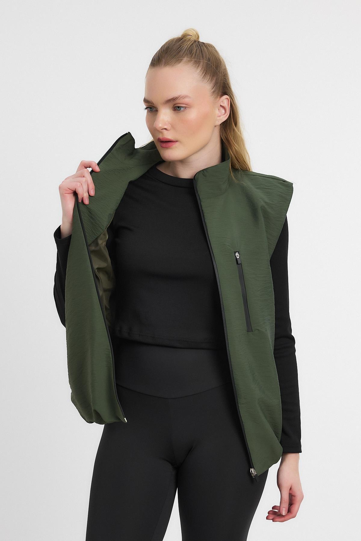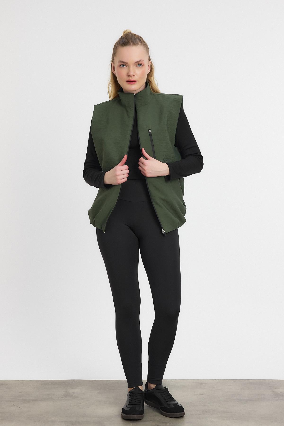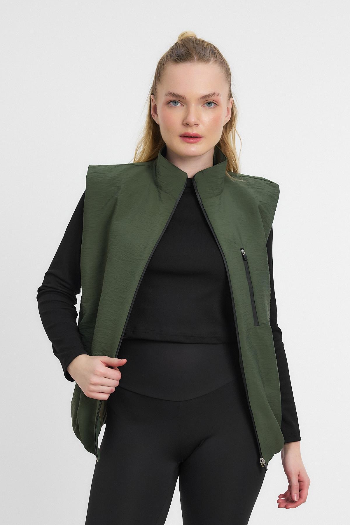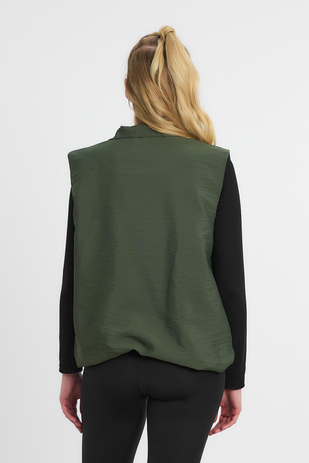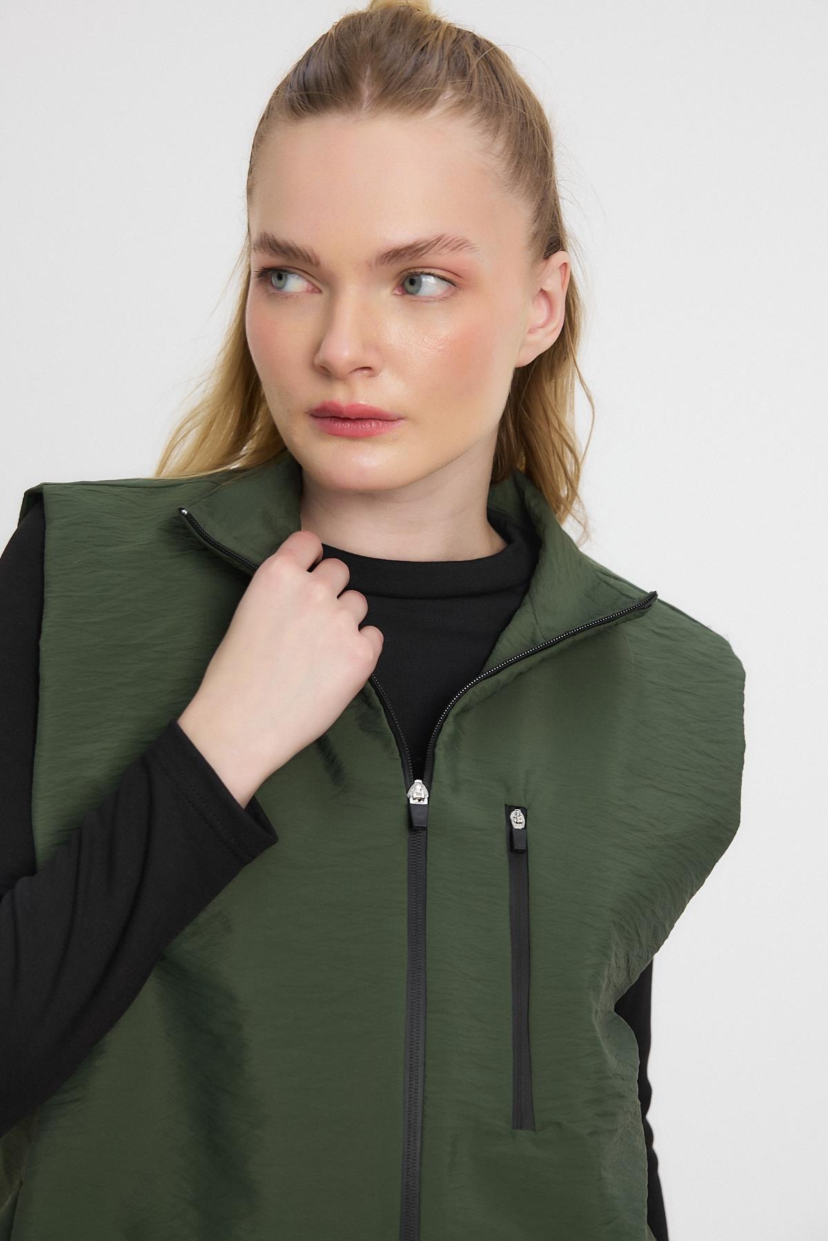 Haki Yan Cepli Sıfır Kol Yelek 4523A