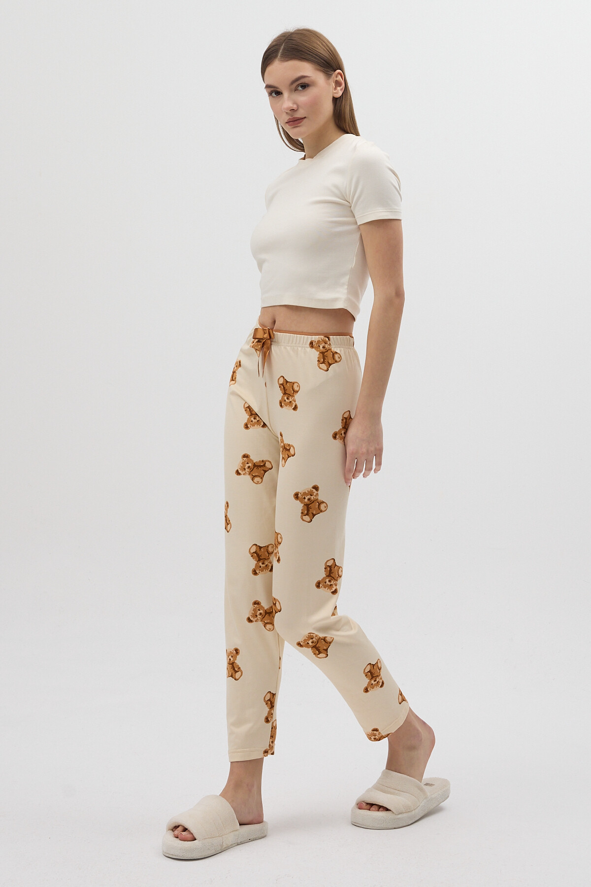 Bej Ayıcık Desenli Kadın Pijama Altı 4526