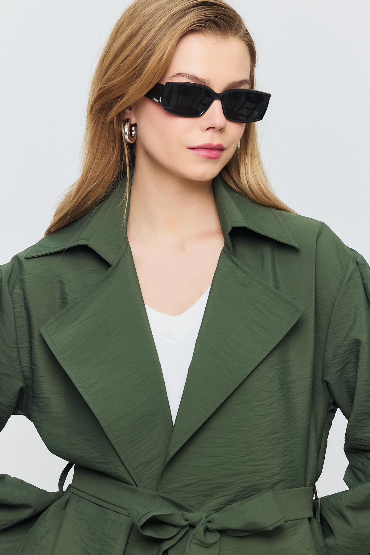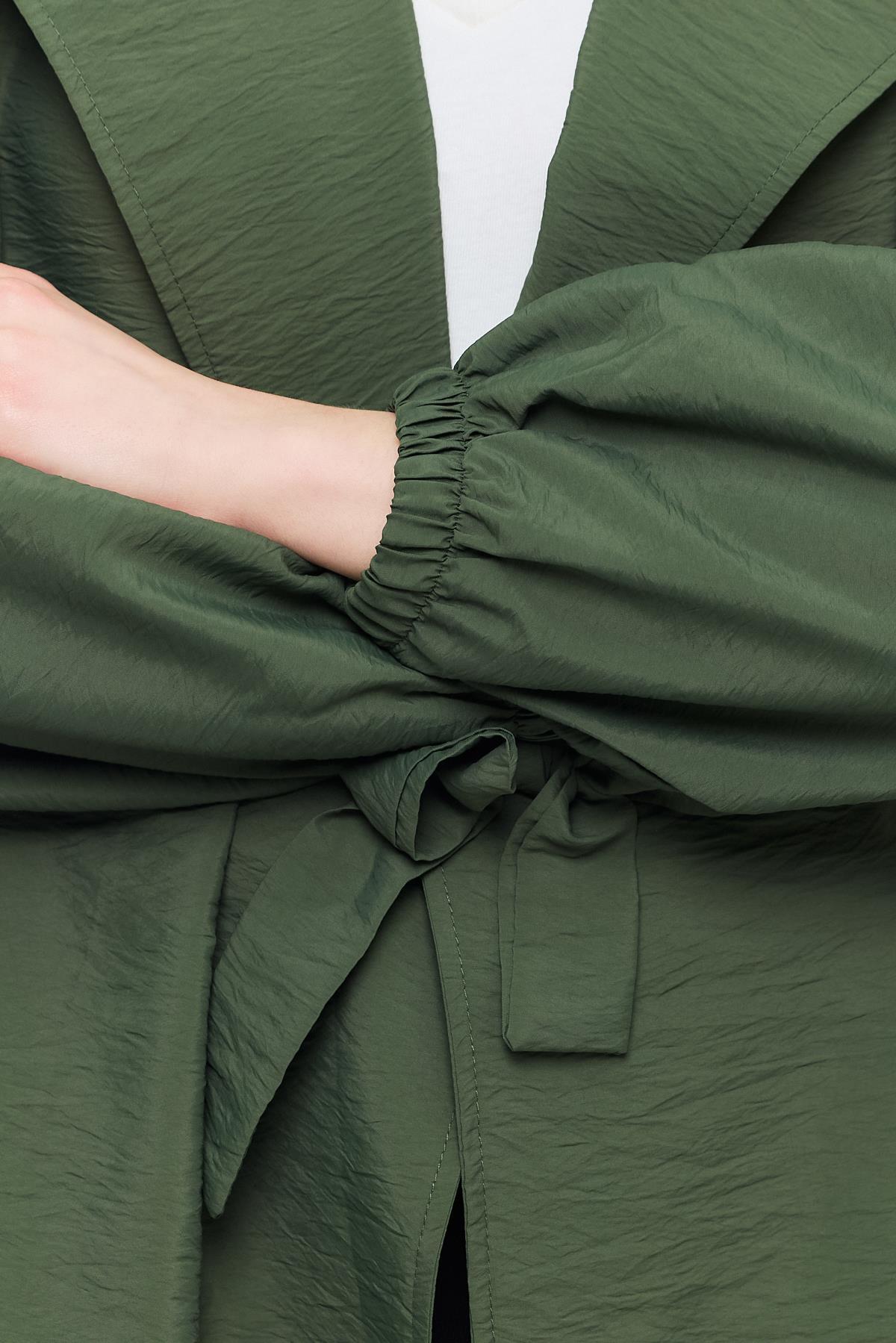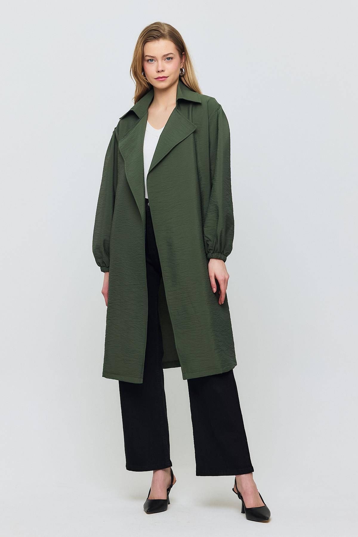 Haki Kuşaklı Kol Lastikli Trençkot 4579A