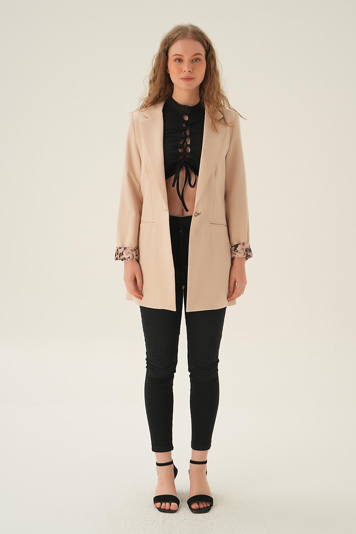 4584 Kol Leopar Detay Ceket Taş