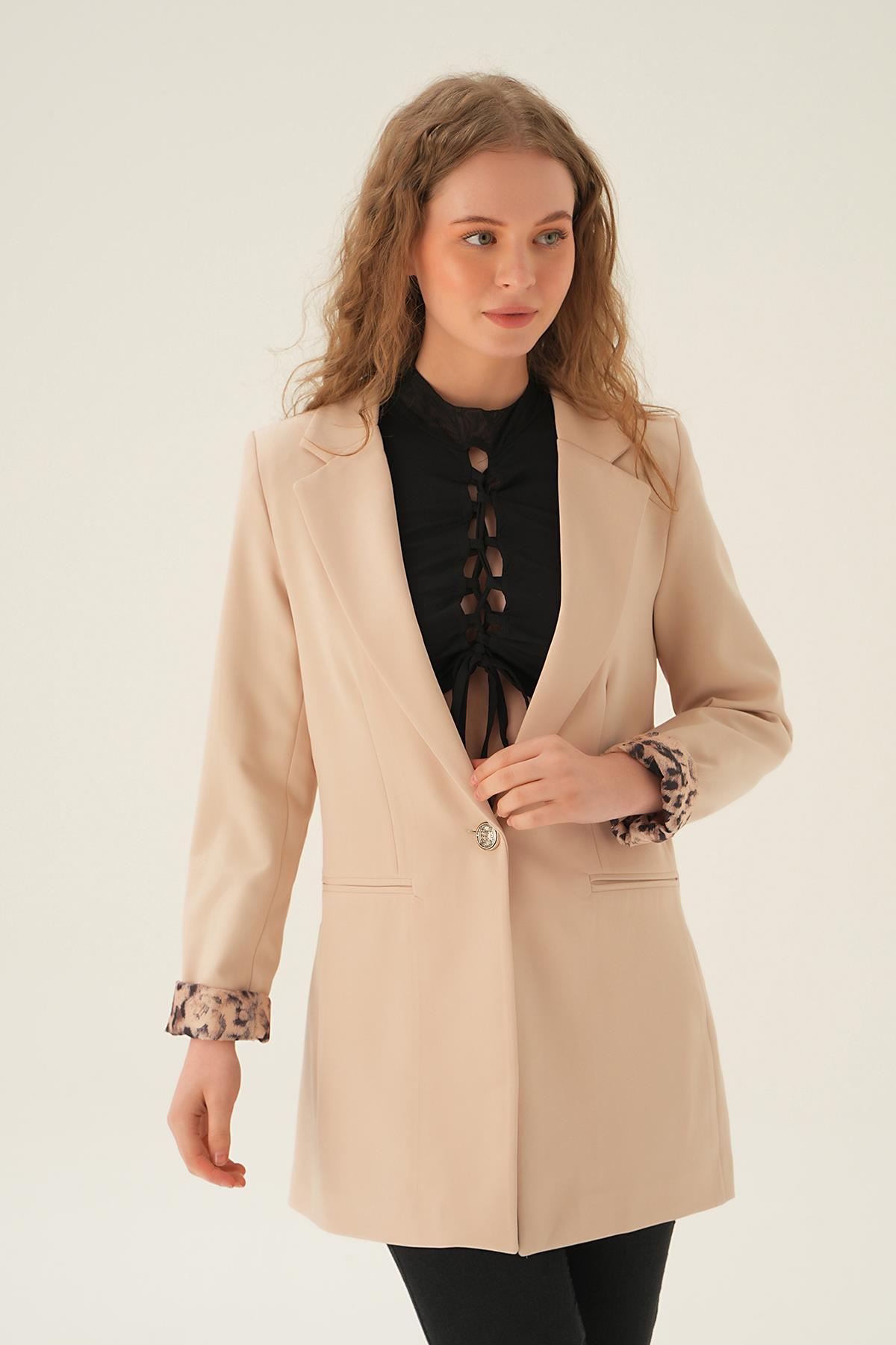 Taş Kol Leopar Detay Ceket 4584