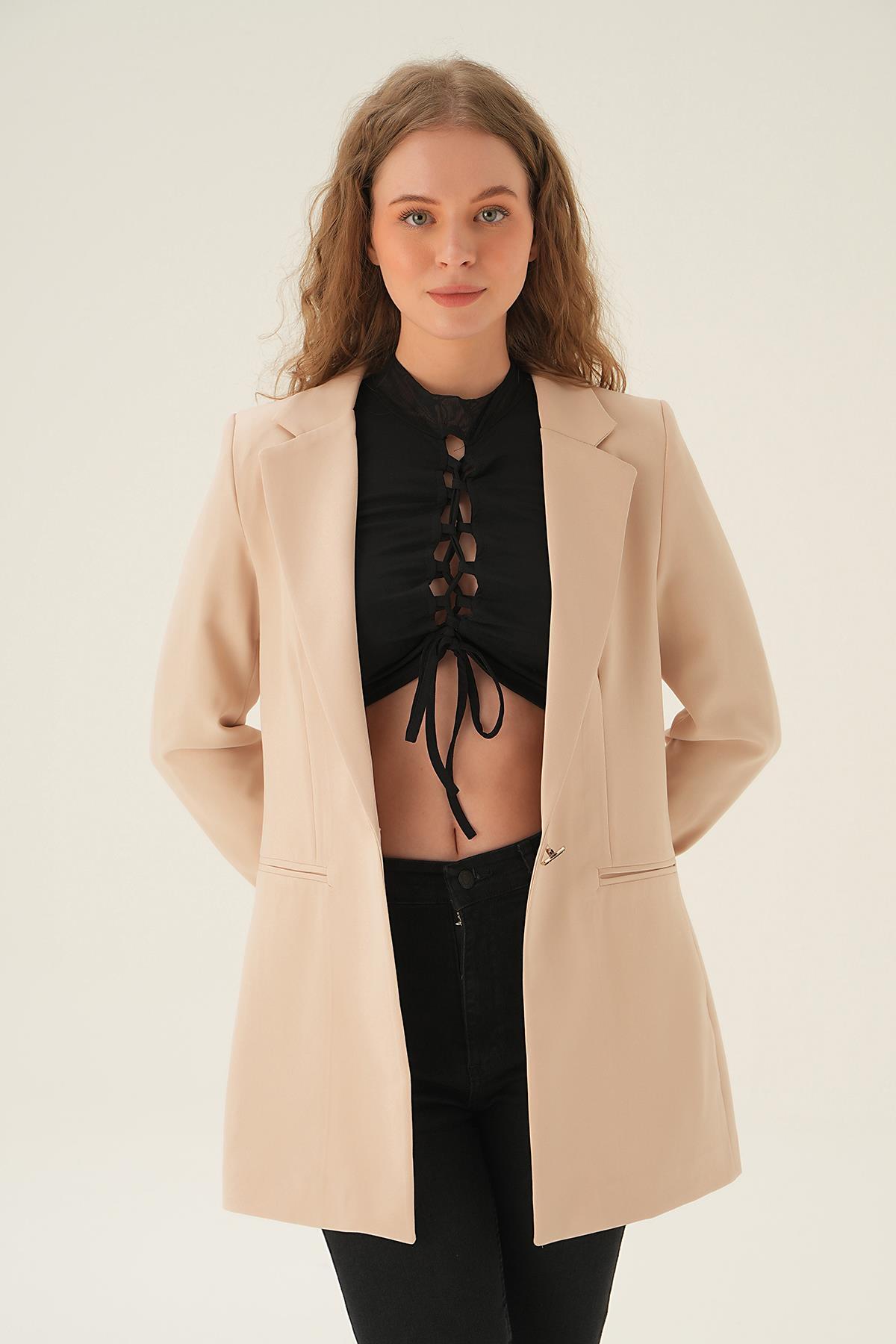 Camel Düğmeli Uzun Kol Ceket 60530