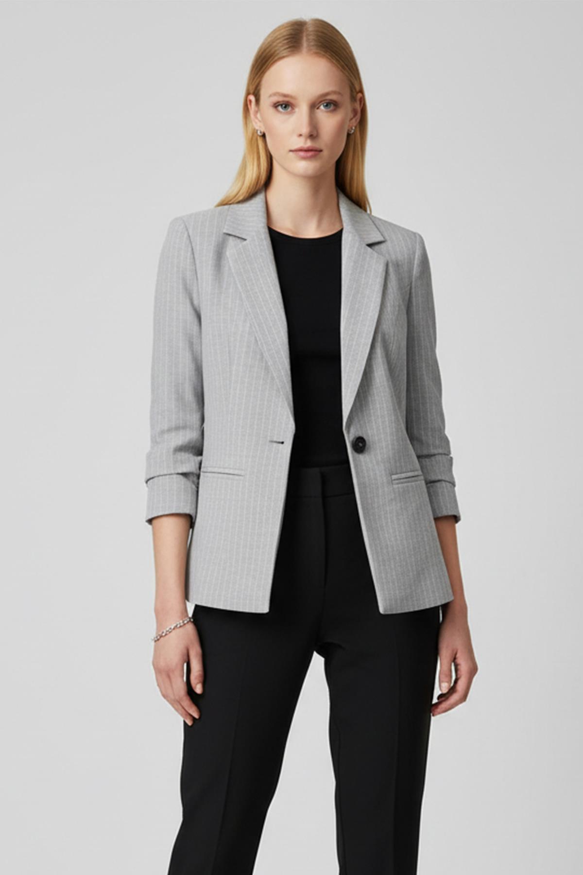 Açık Gri Çizgili Klasik Yaka Ceket 4594A