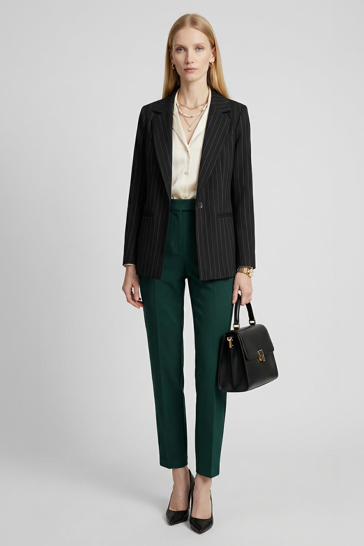 Çizgili-Siyah Çizgili Klasik Yaka Ceket 4594A