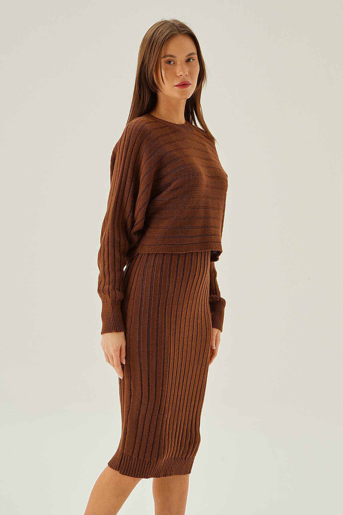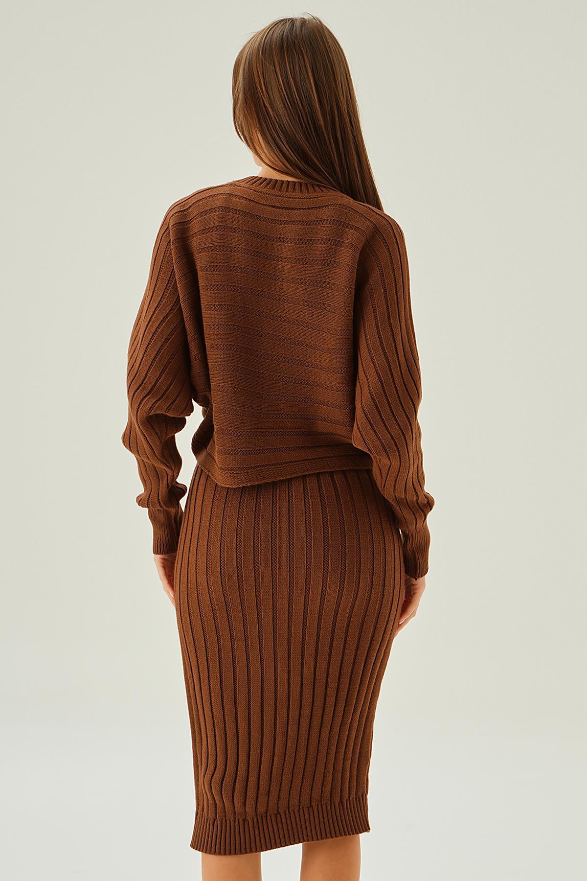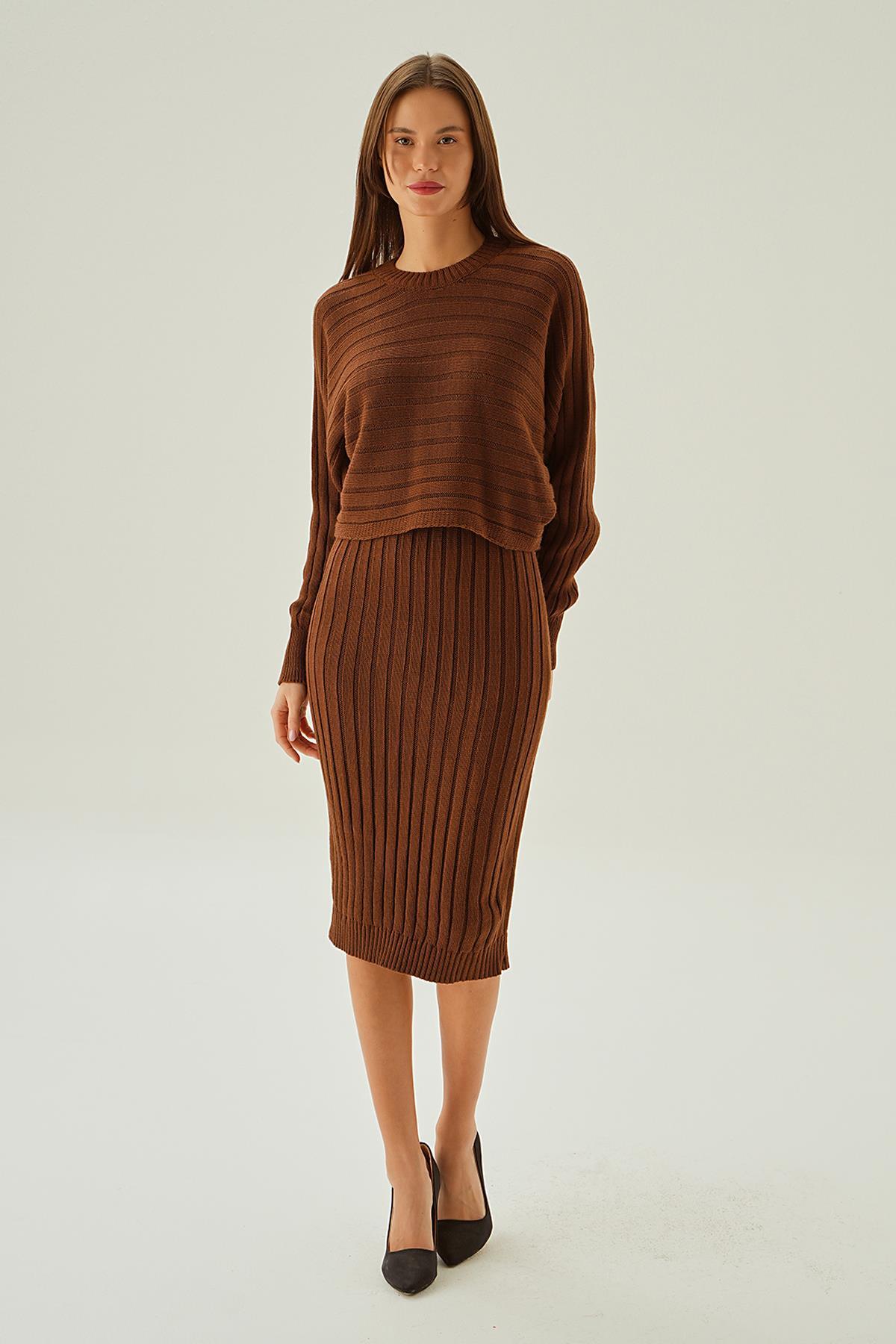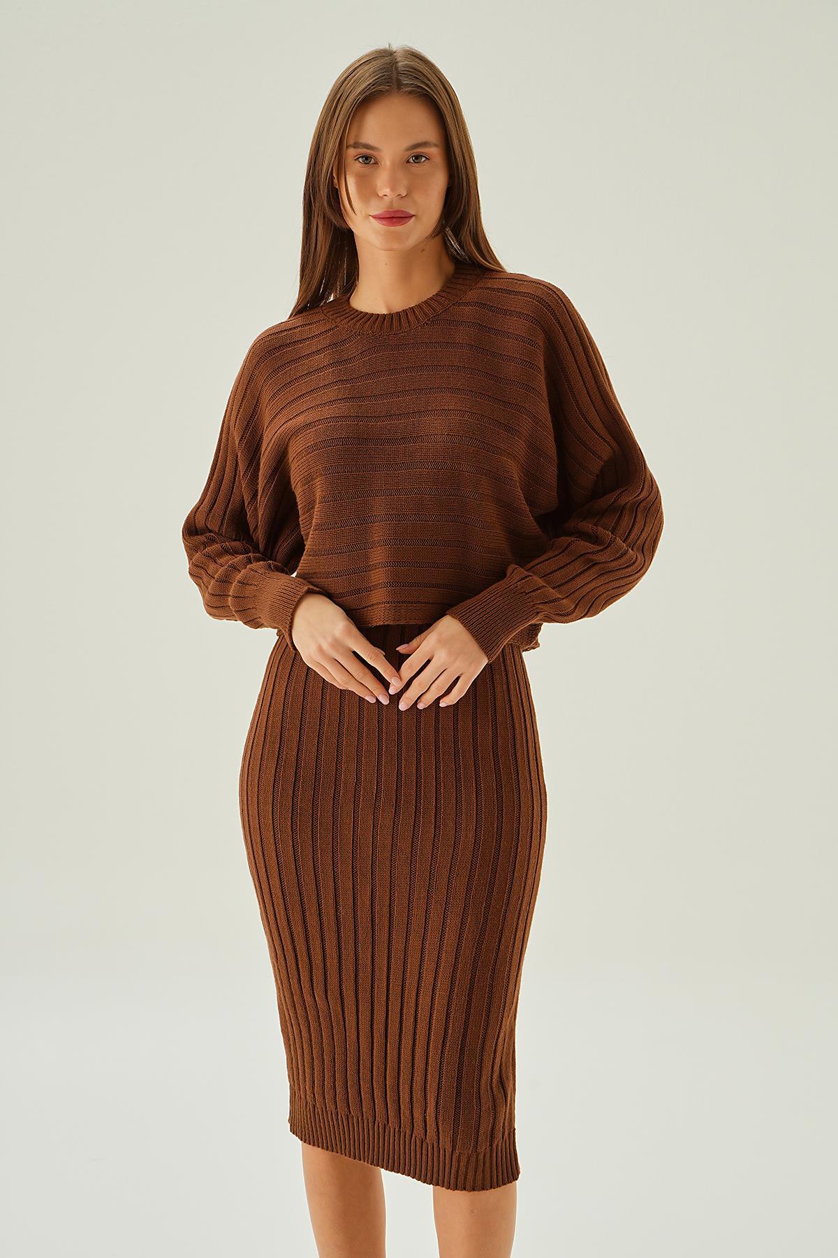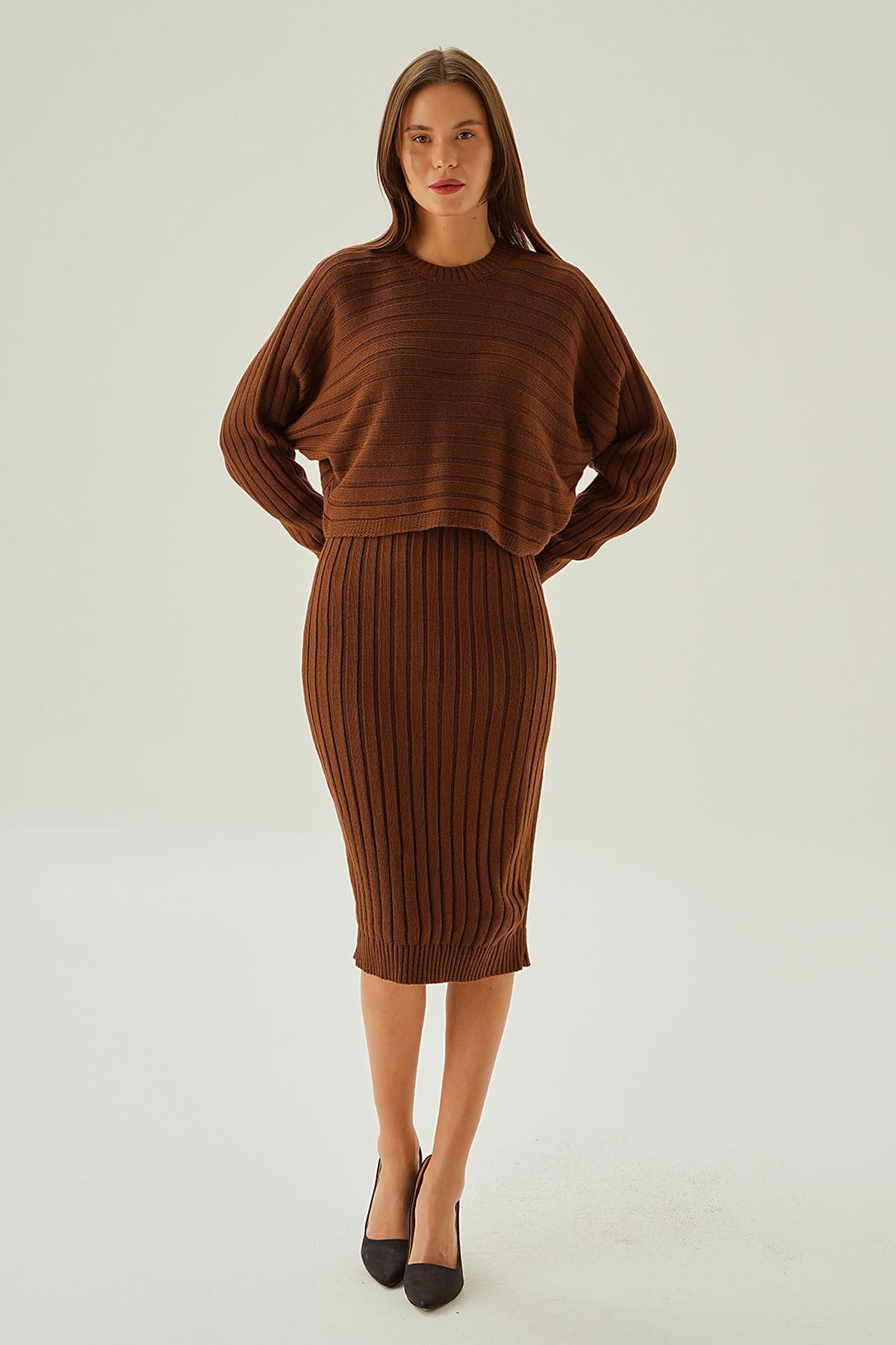 Kahverengi Cepli Düğmeli Hırka ve Uzun Etek Takım 3109A - RAYS Kahverengi Cepli Düğmeli Hırka ve Uzun Etek Takım 3109A - RAYS (1)