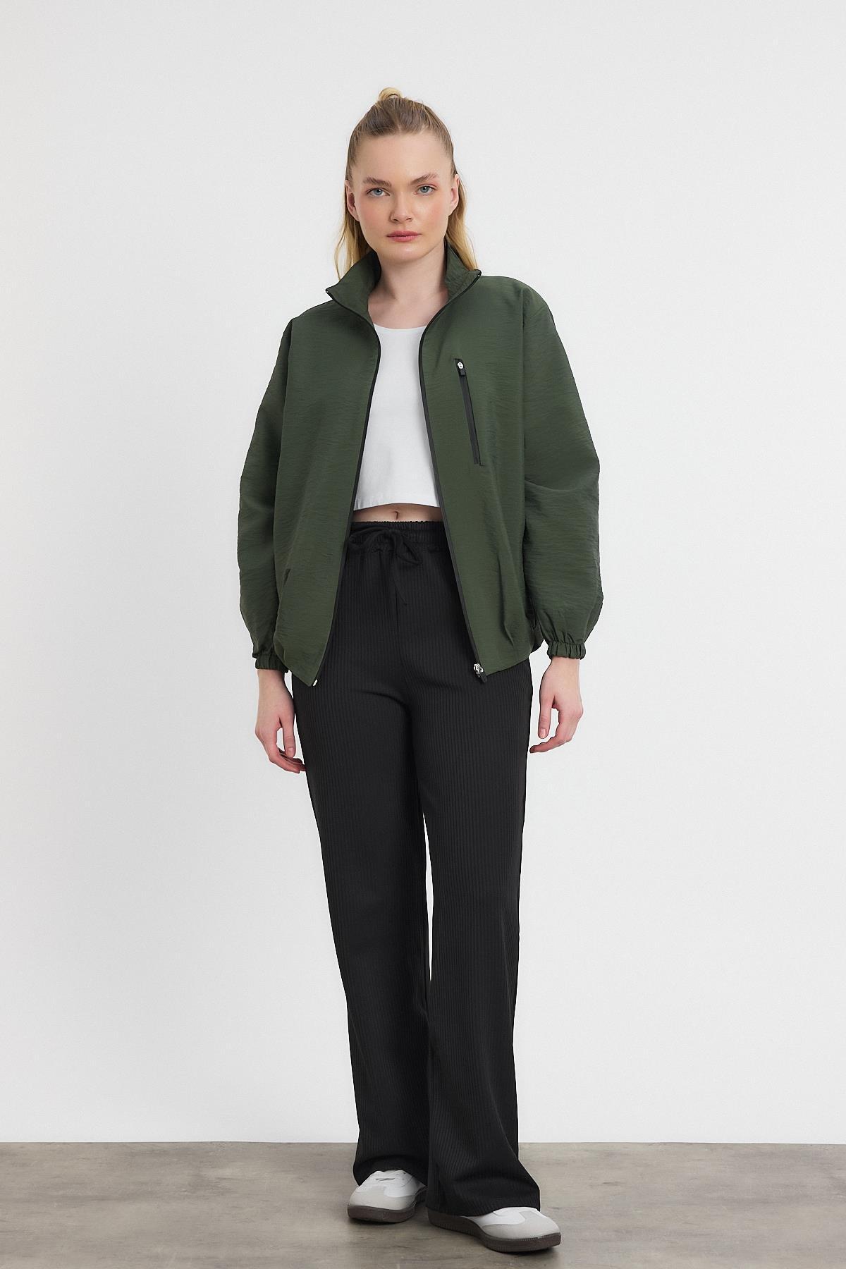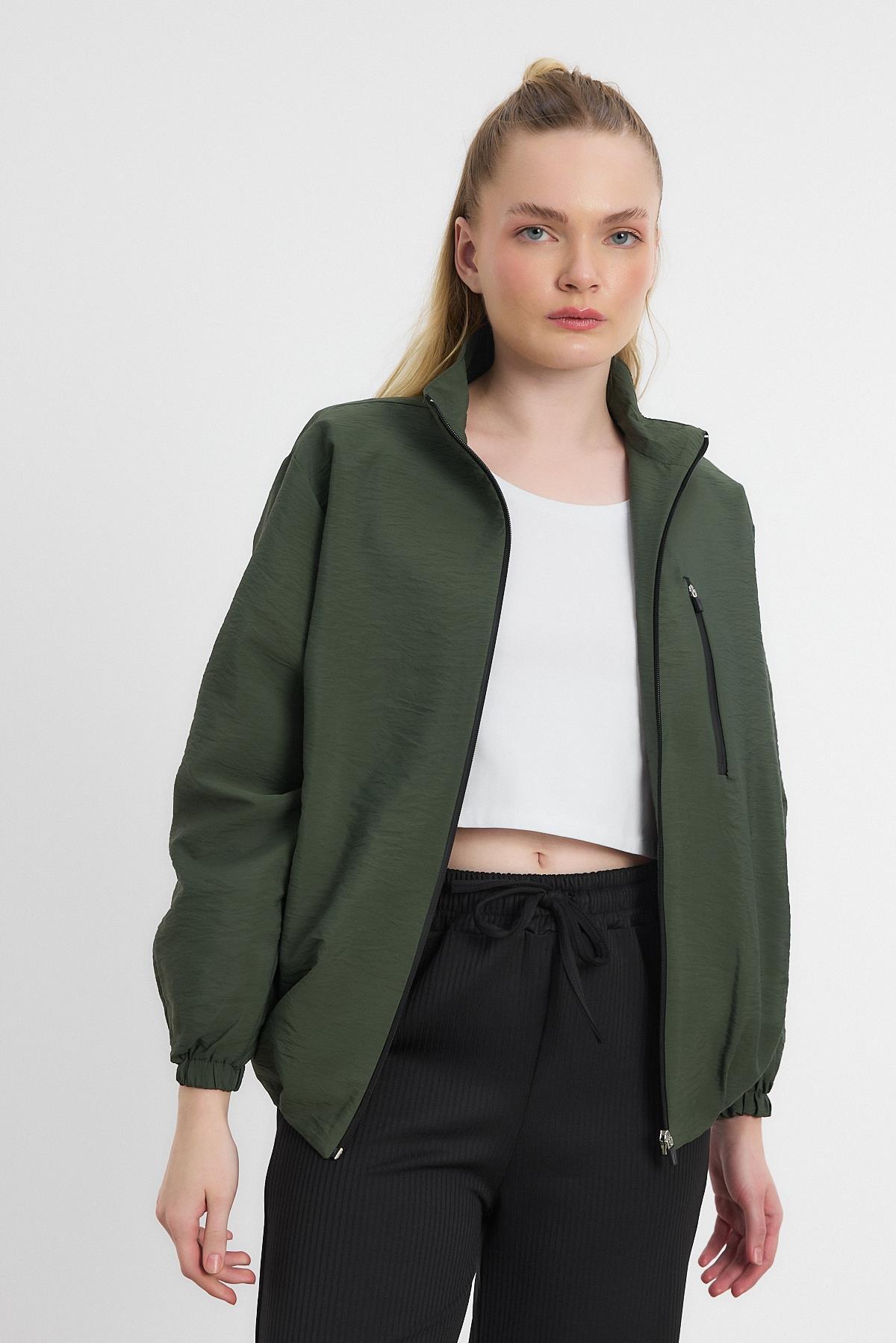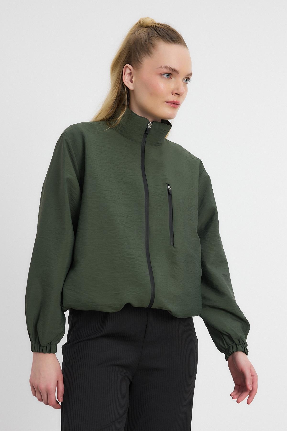 Haki Fermuarlı Cep Kapak Ceket 4386A - RAYS