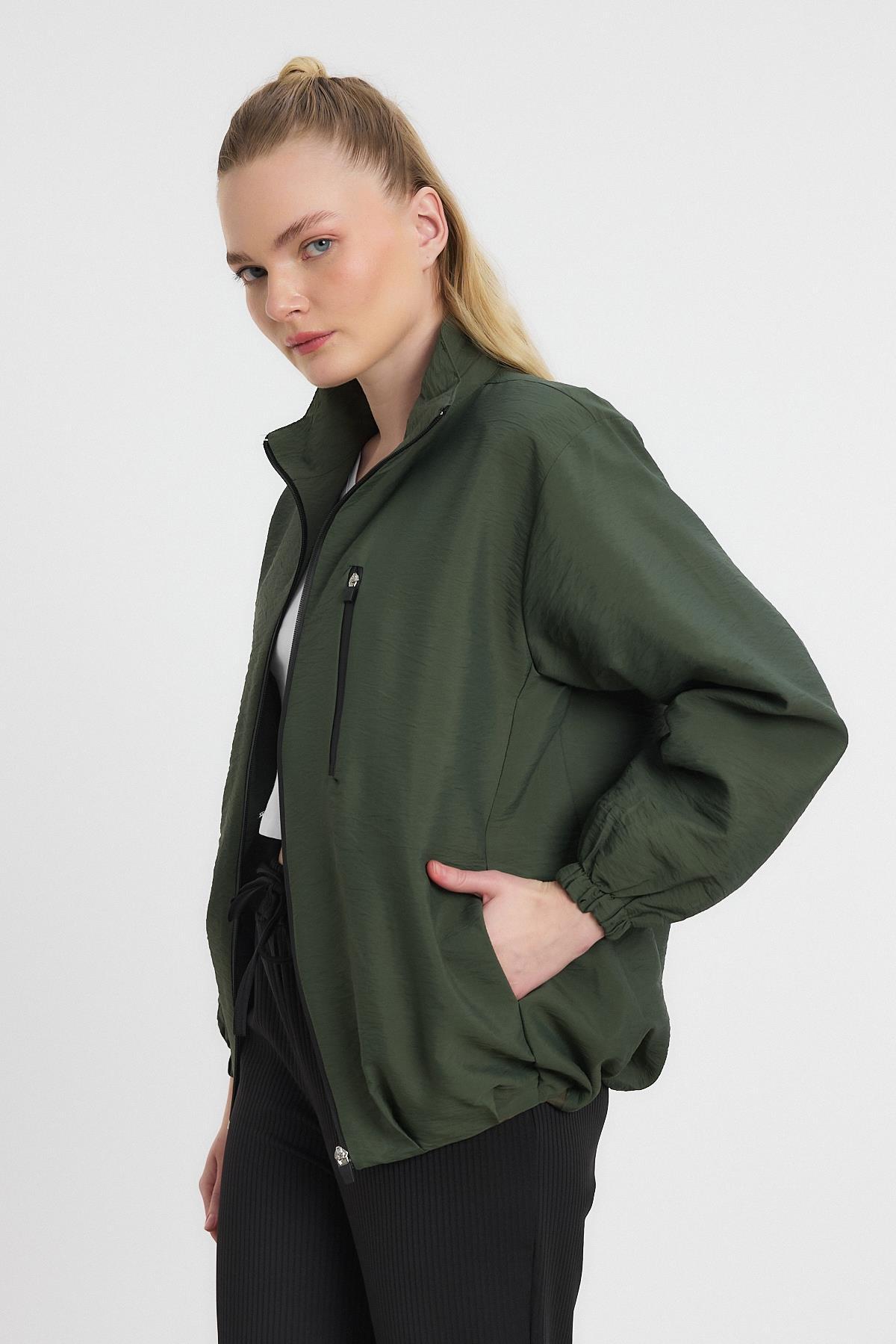 Haki Kol Lastikli Cepli Ceket 4611A
