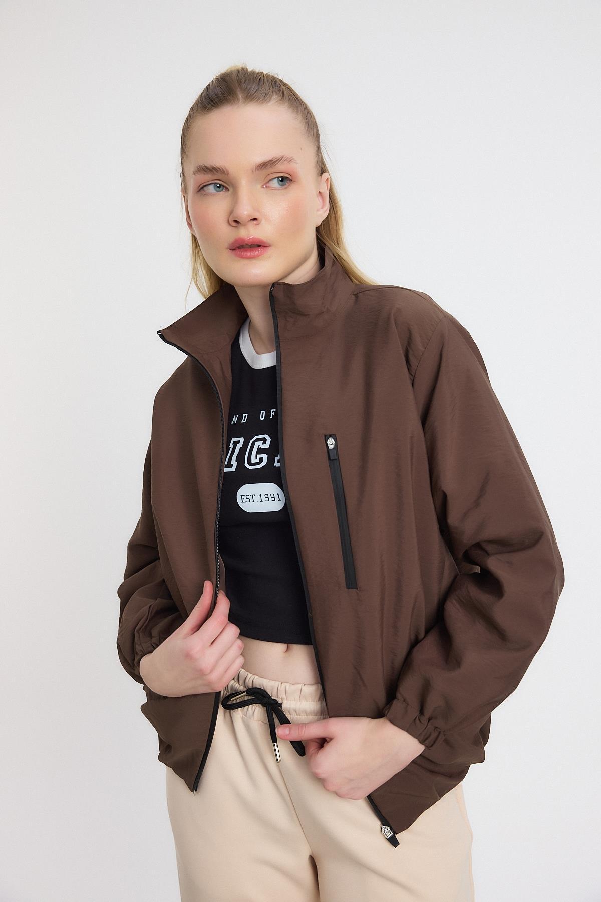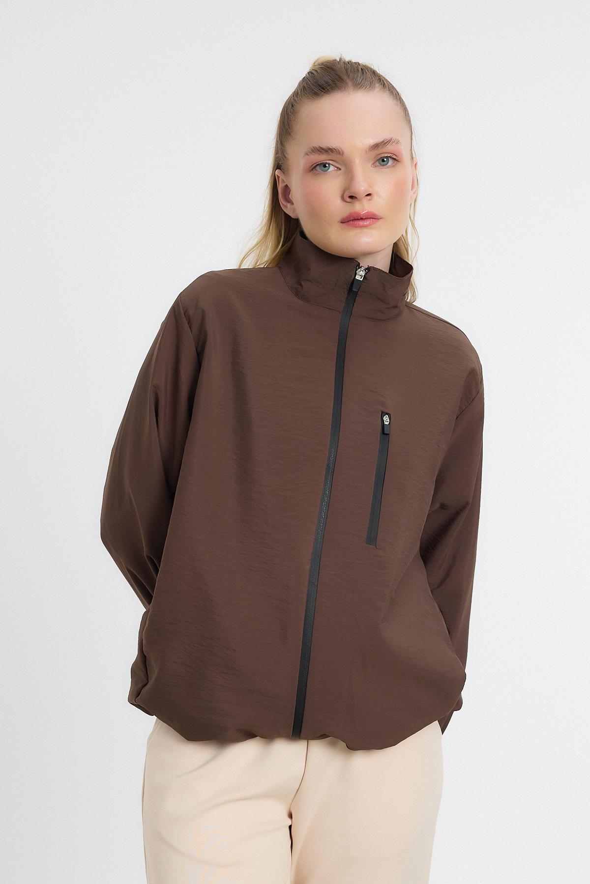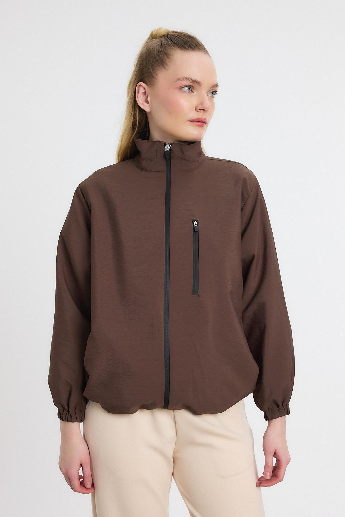 Kahve Kol Lastikli Cepli Ceket 4611A