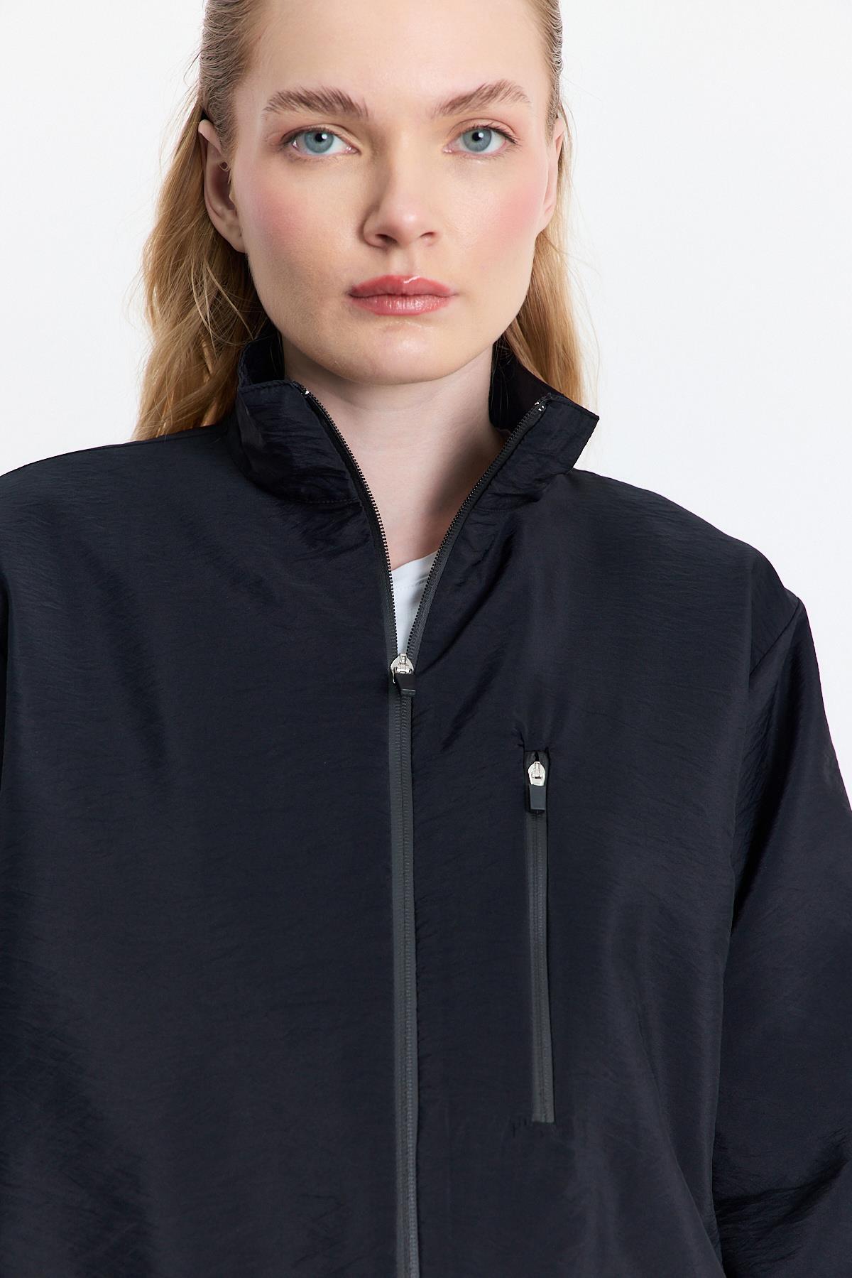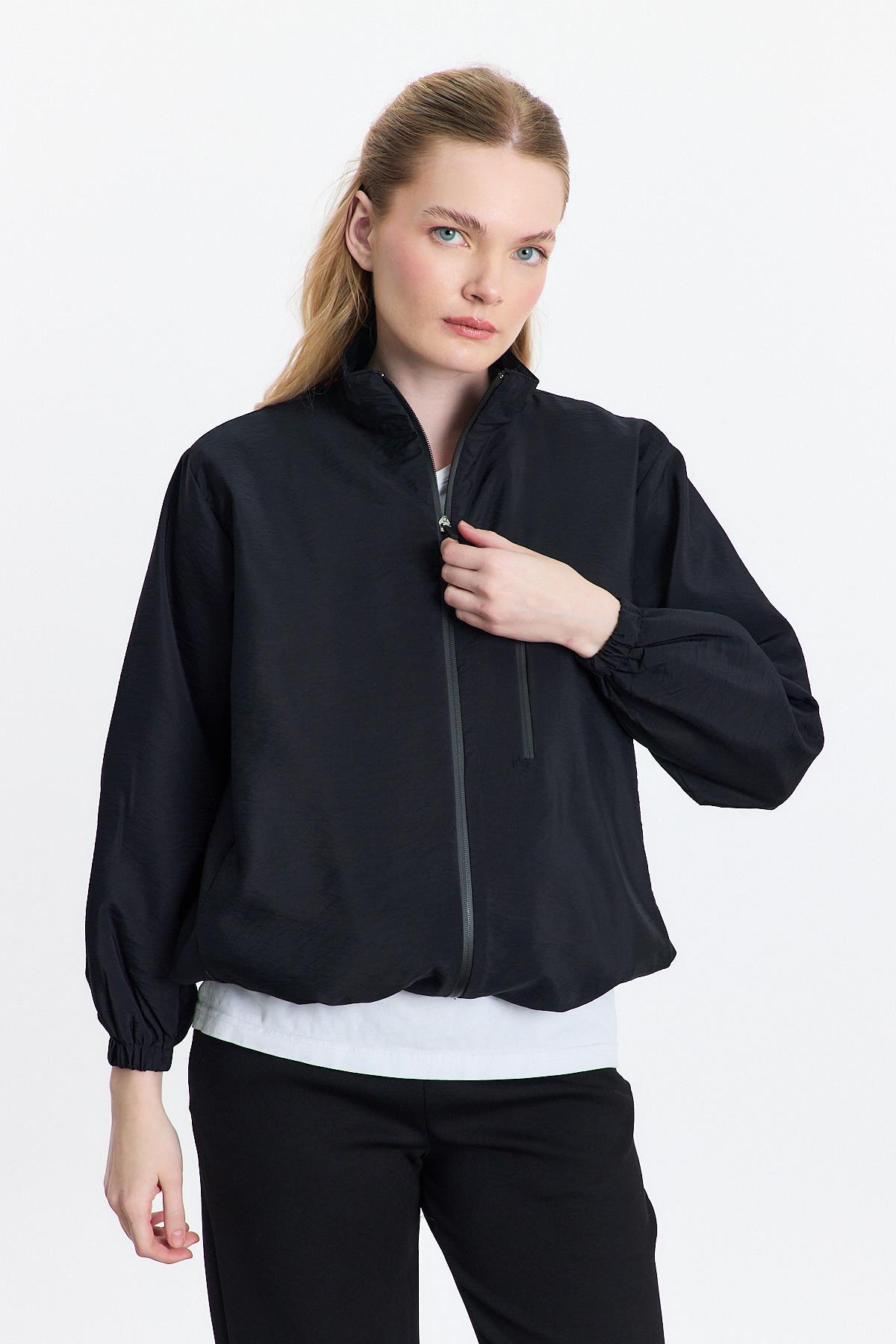 Siyah Süet Görünümlü Bel Lastikli Gömlek Yaka Kadın Ceket 60538