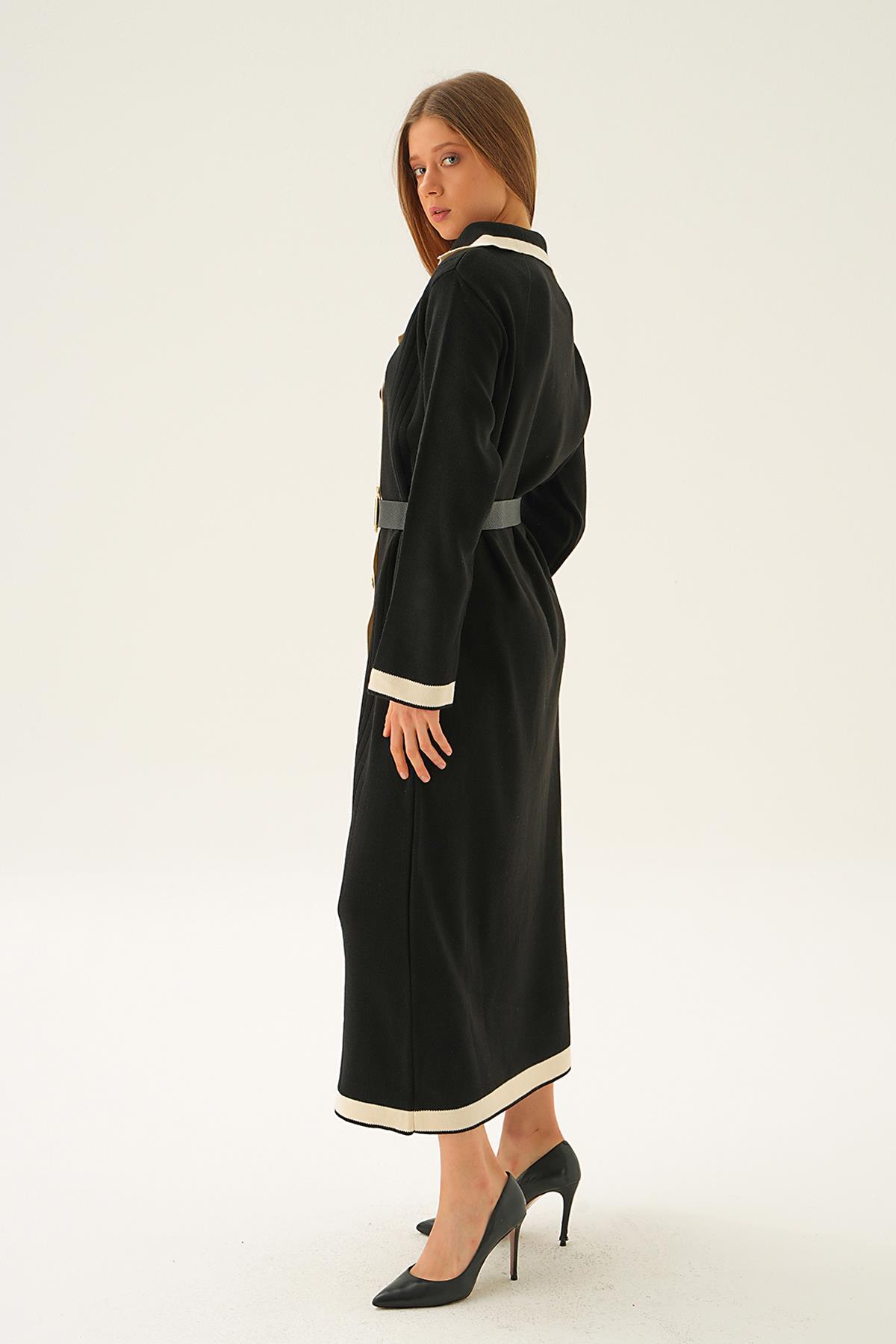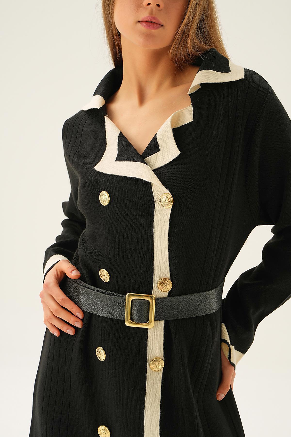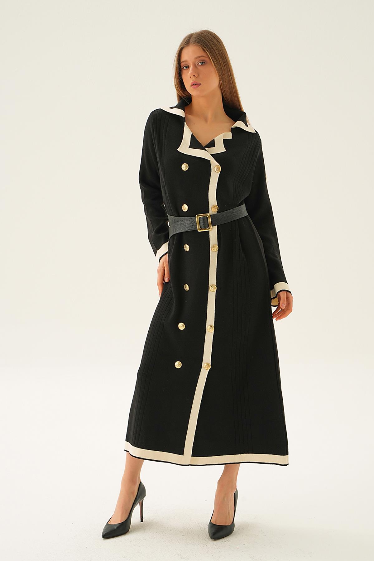Siyah Kemerli Düğme Detay Elbise 4645