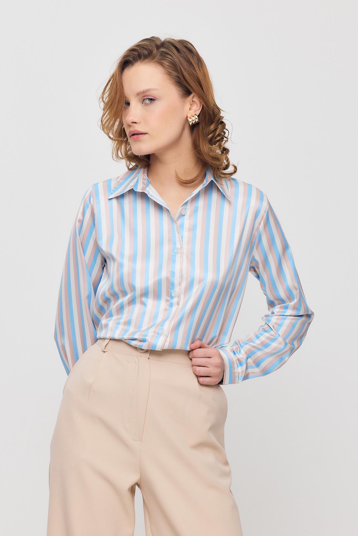 4653A Çizgili Gömlek Mavi
