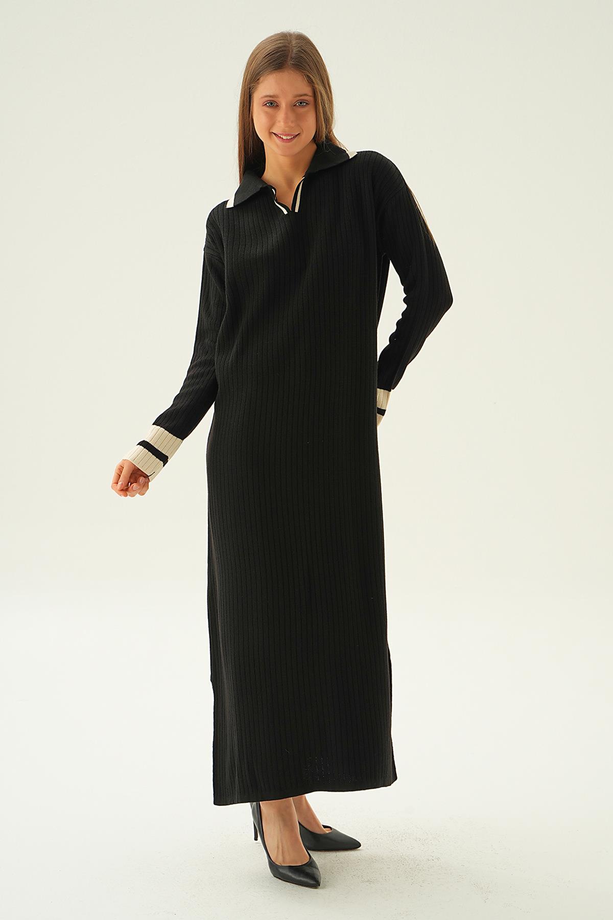 Siyah Düğmeli Kat Kat Elbise 2817 - RAYS Siyah Düğmeli Kat Kat Elbise 2817 - RAYS (1)