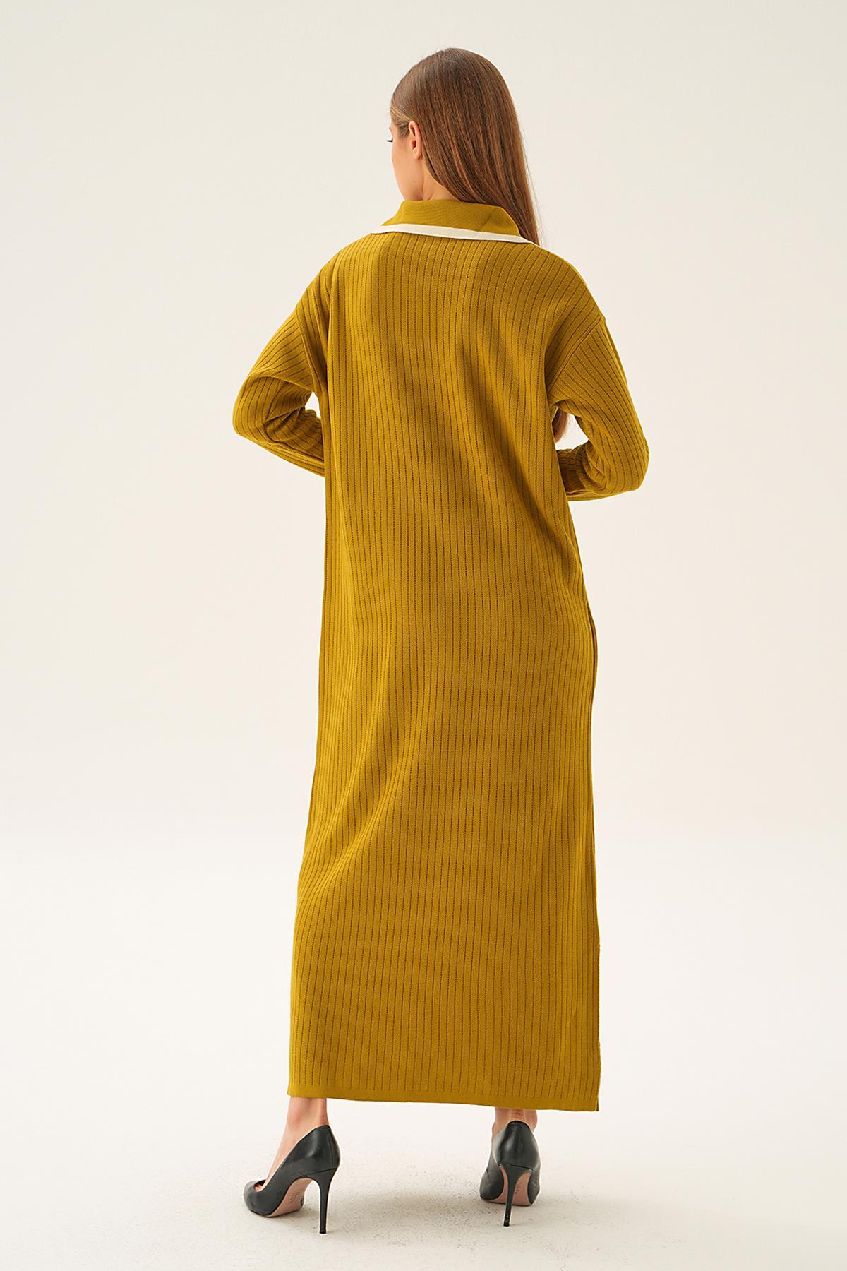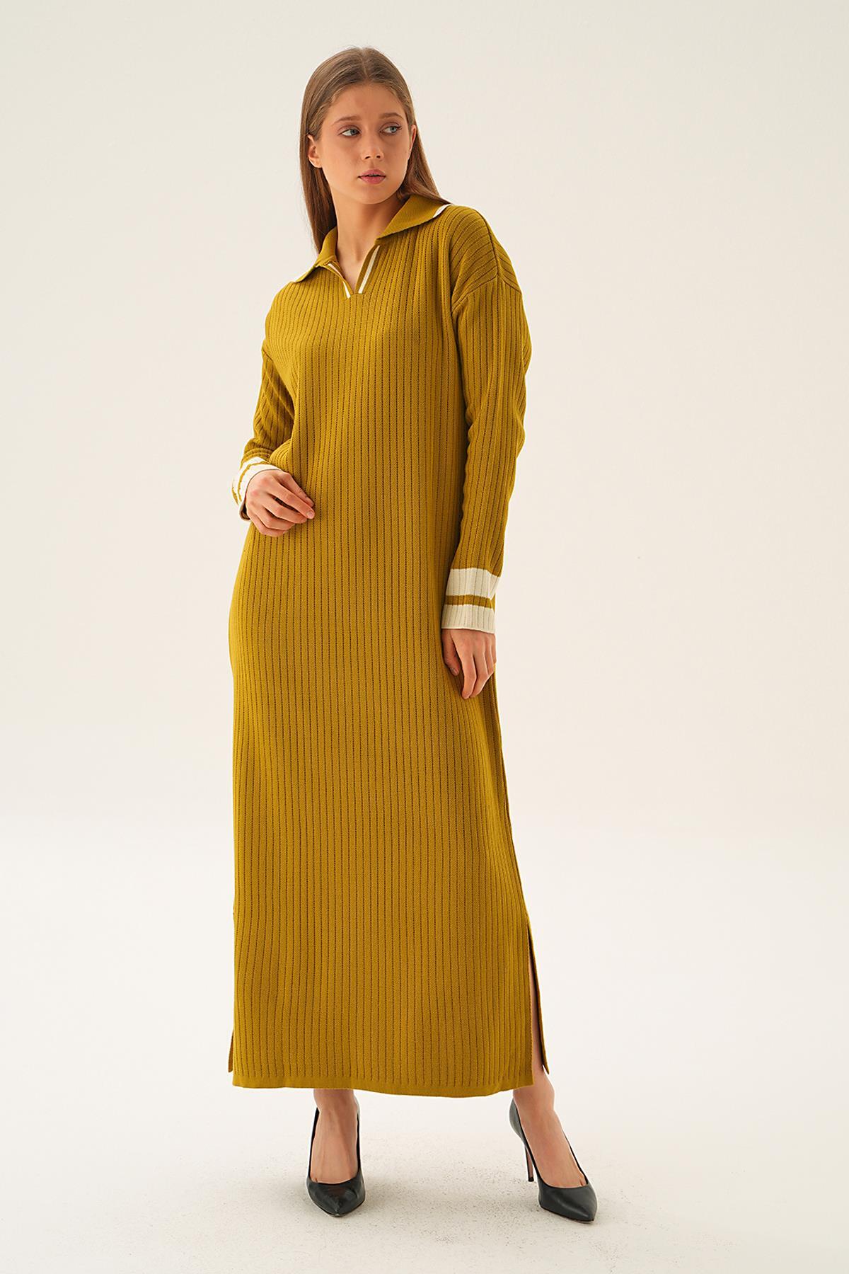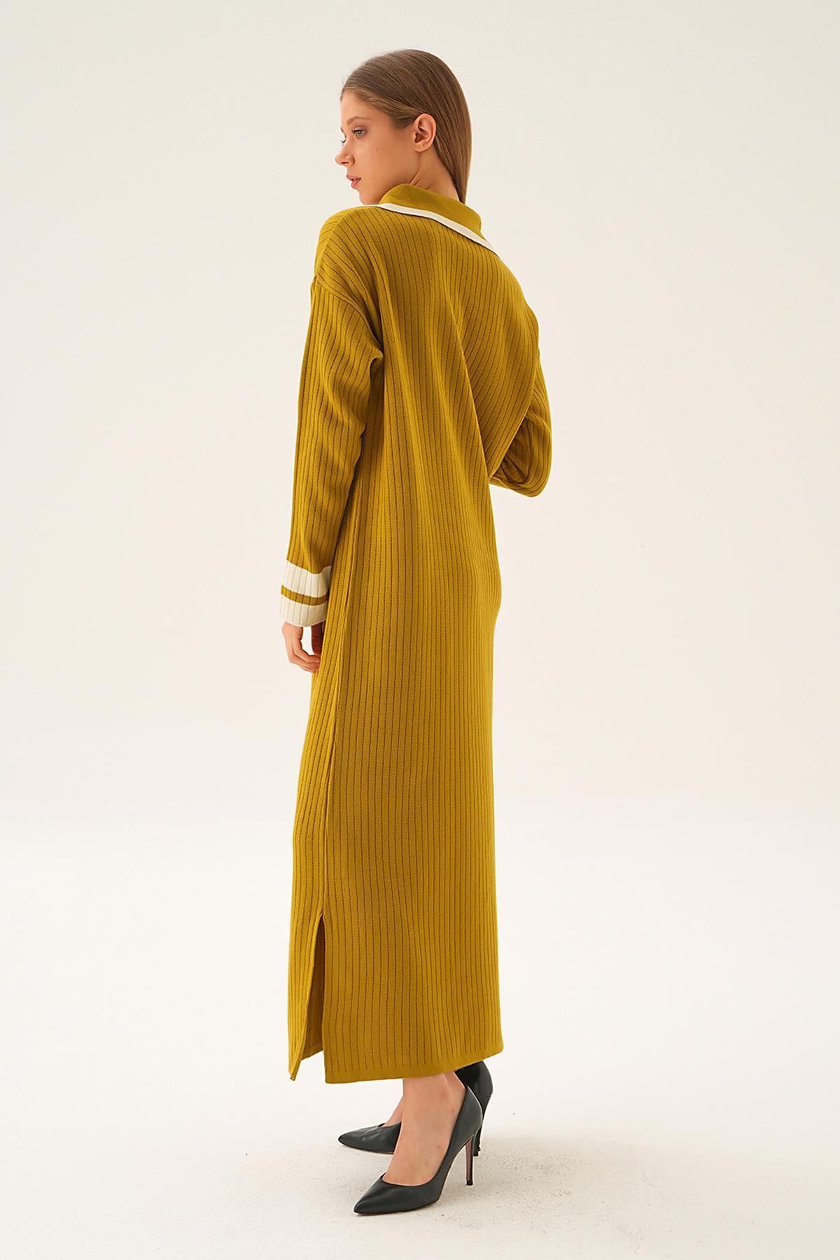 Yağ Yeşili Polo Yaka Triko Elbise 4665