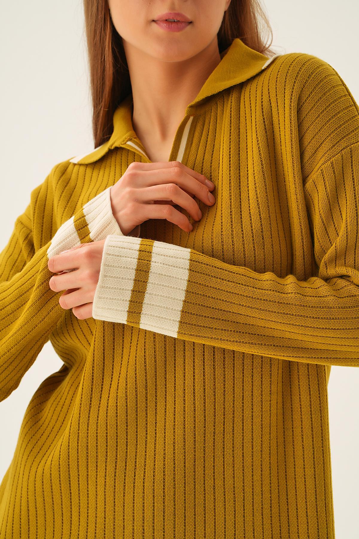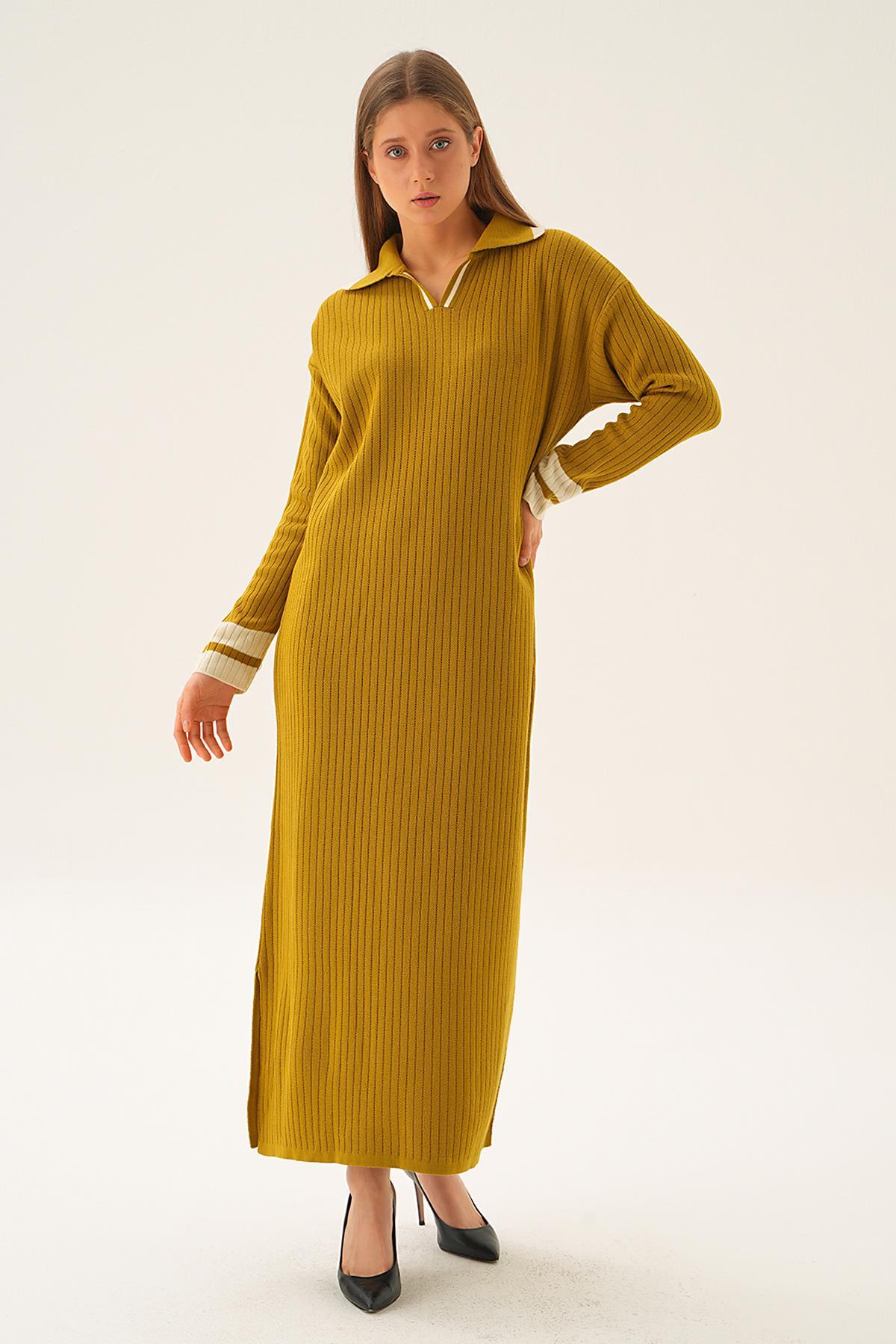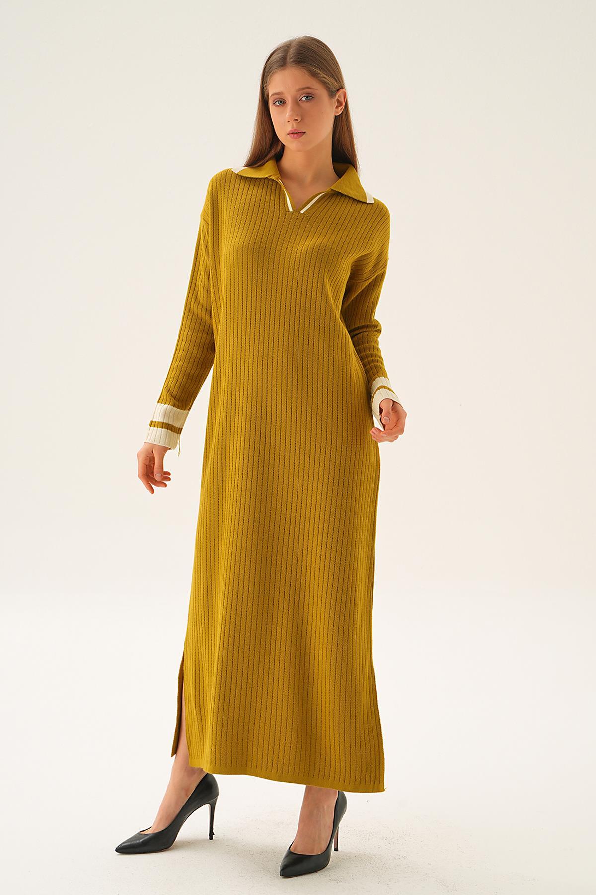 Yağ Yeşili Polo Yaka Triko Elbise 4665