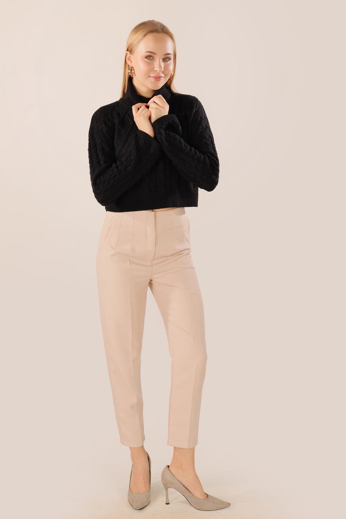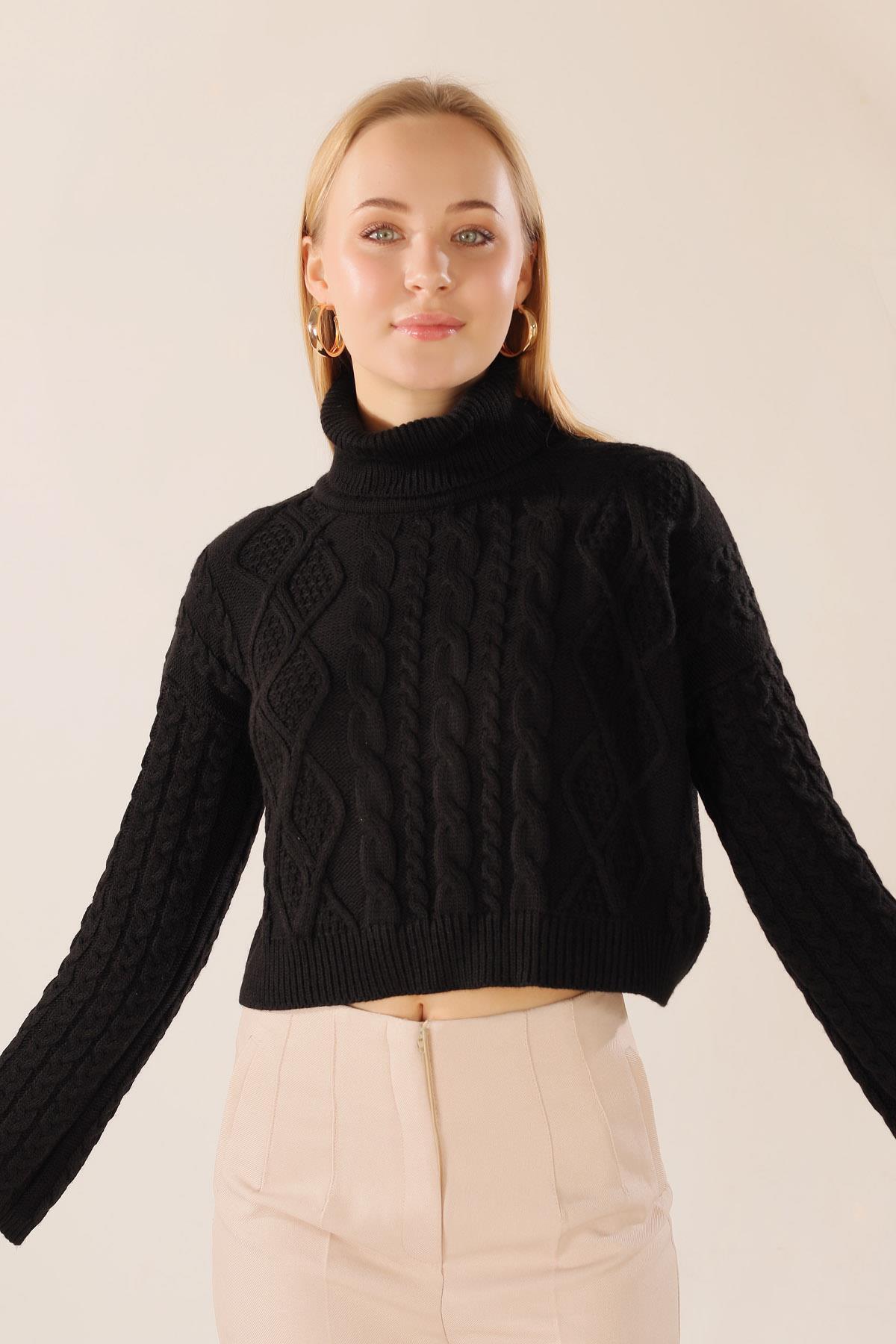 4700 Örgü Detay Boğazlı Kazak Siyah