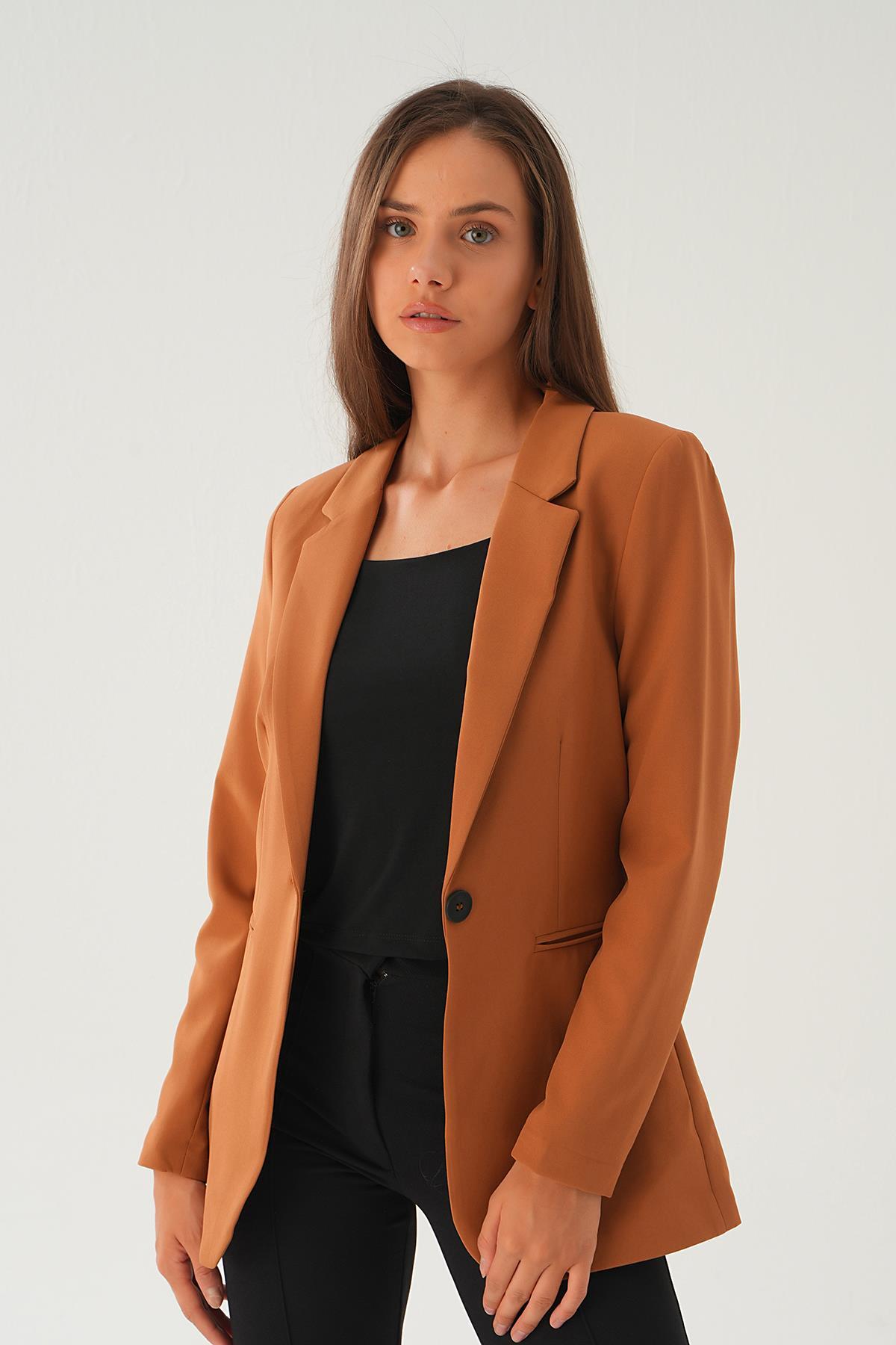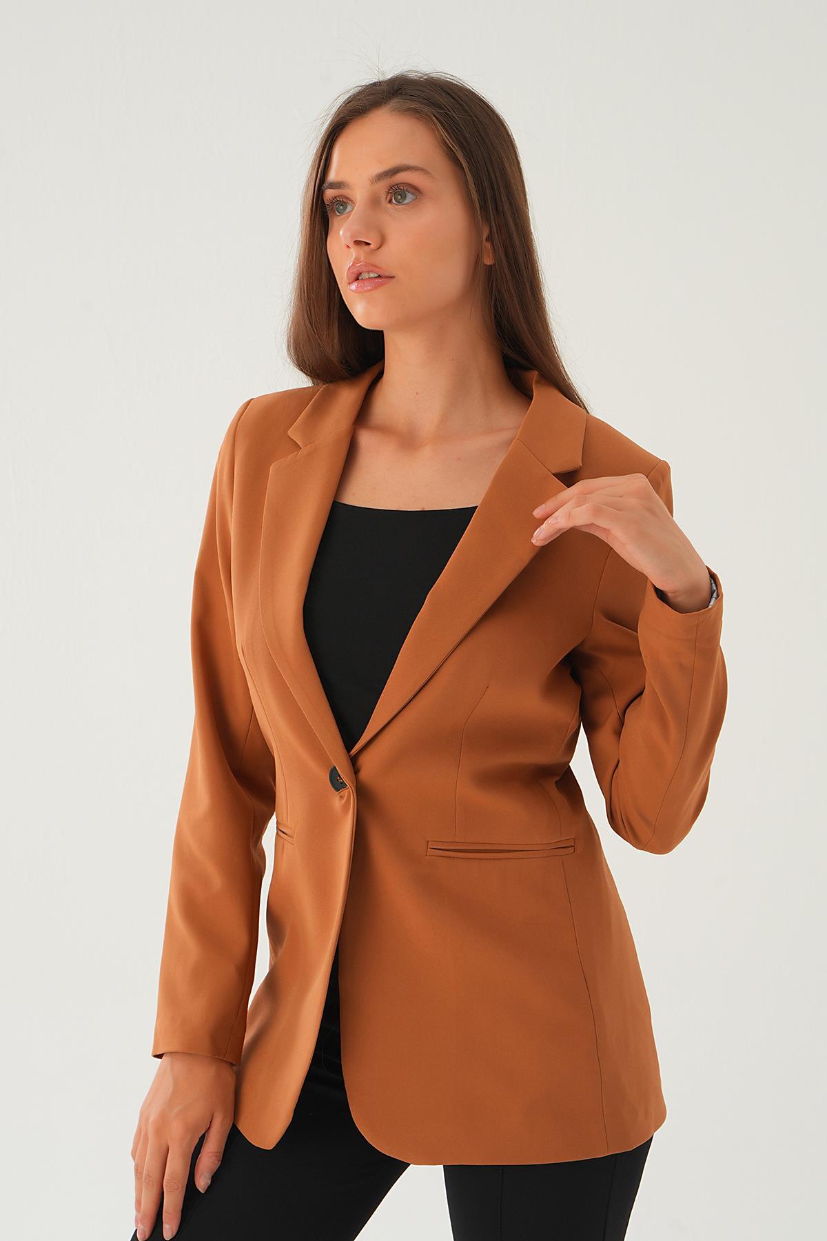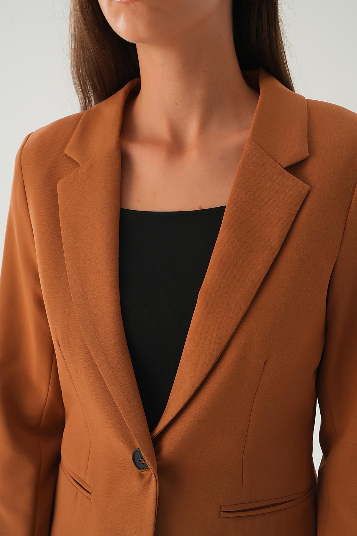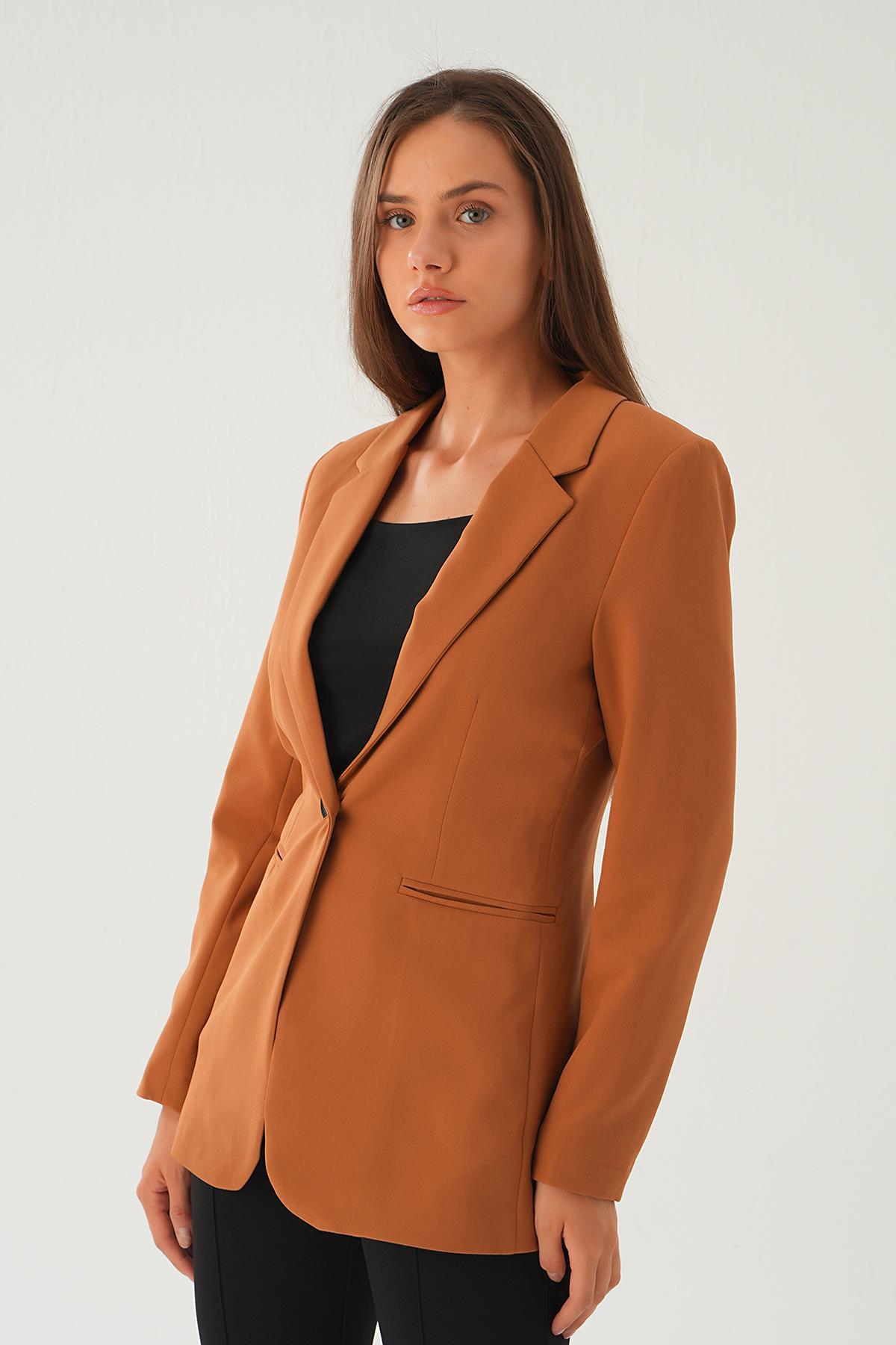 4705 Kol Cizgi Detay Cepli Ceket Taba