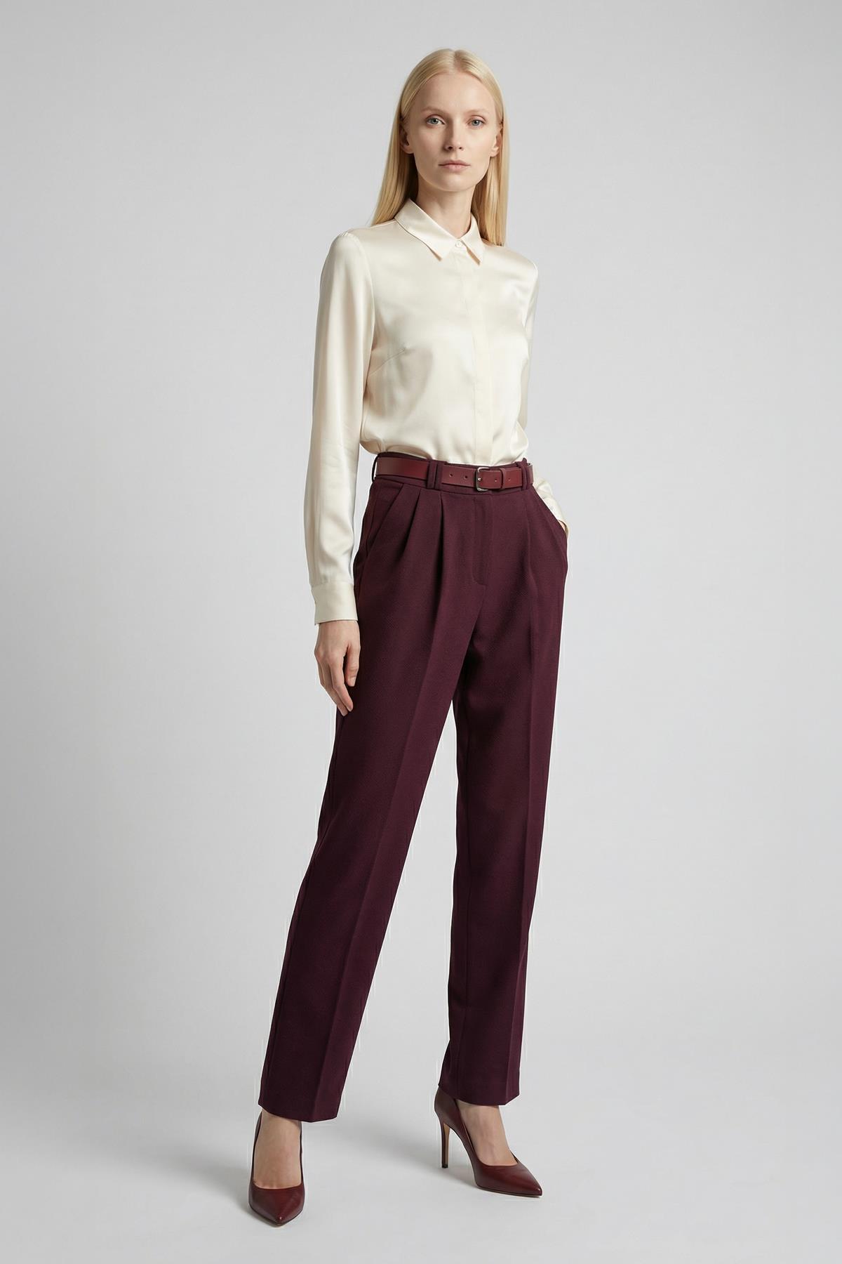 5009 Çift Pile Detay Kemerli Pantolon Bordo