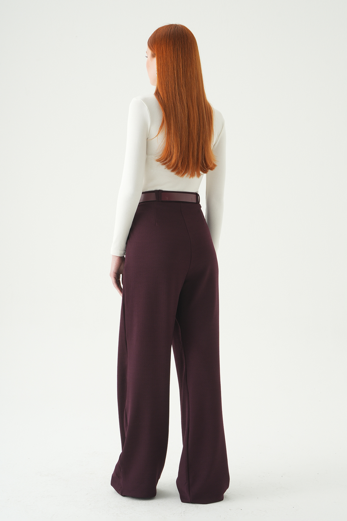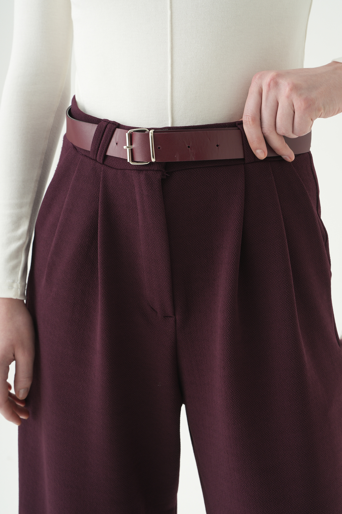 Bordo Çift Pile Detay Kemerli Pantolon 5009