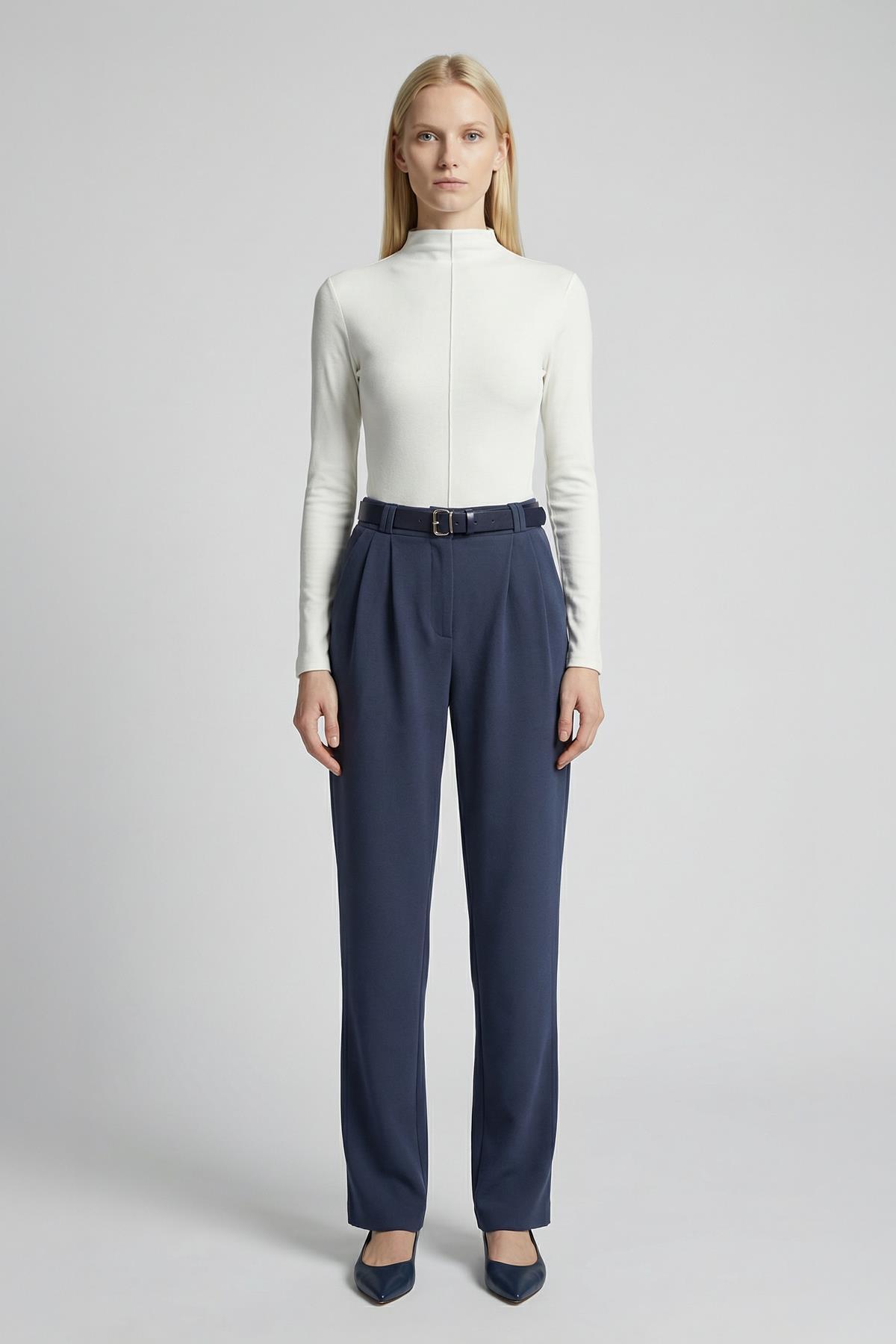 5009 Çift Pile Detay Kemerli Pantolon Füme