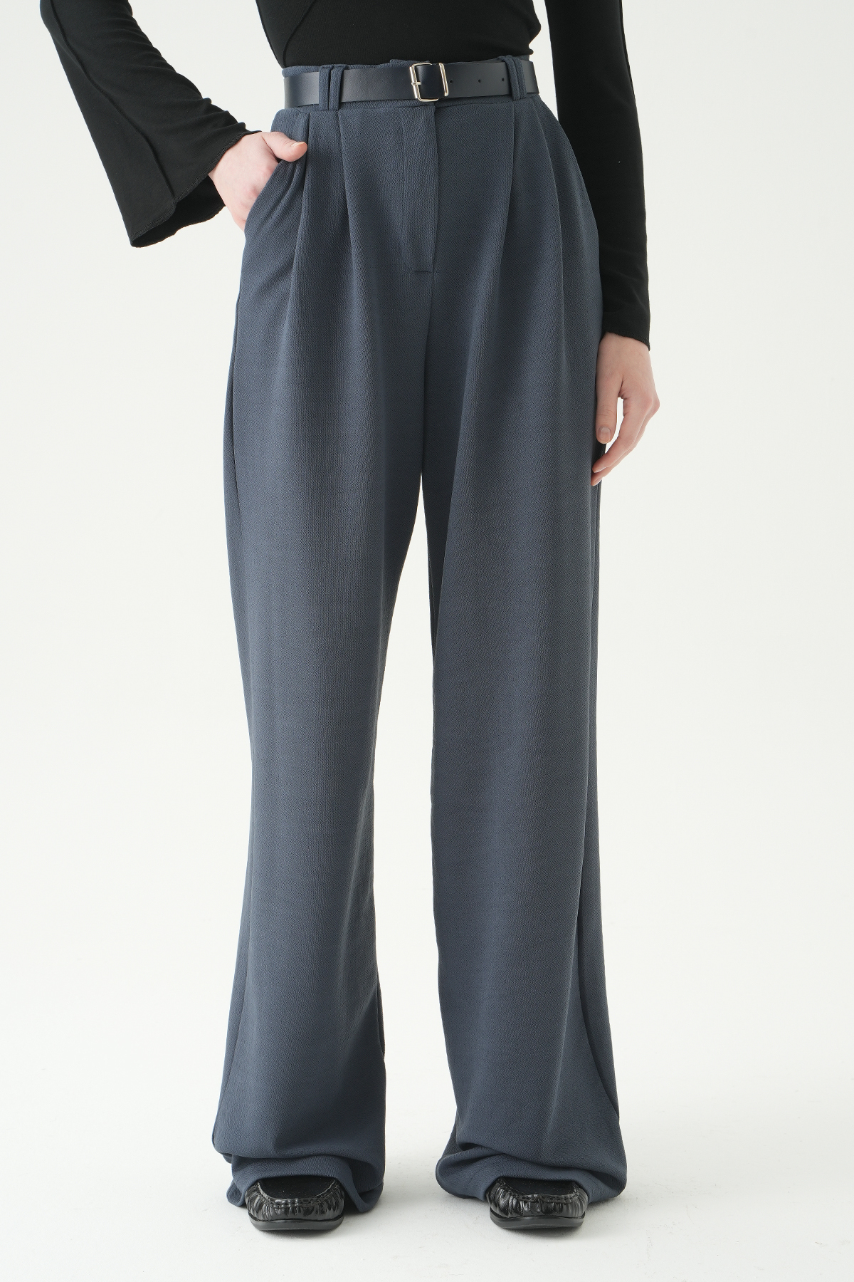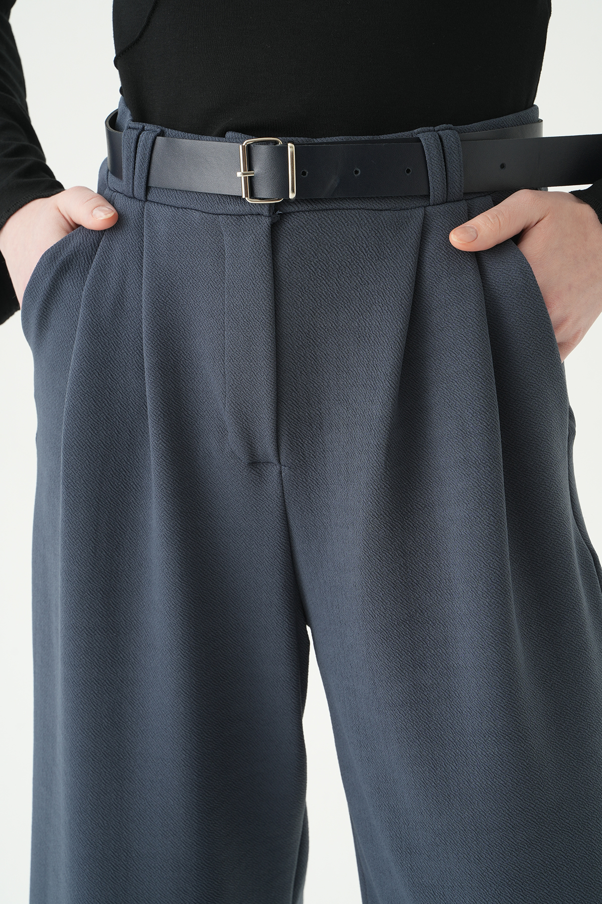 Füme Çift Pile Detay Kemerli Pantolon 5009