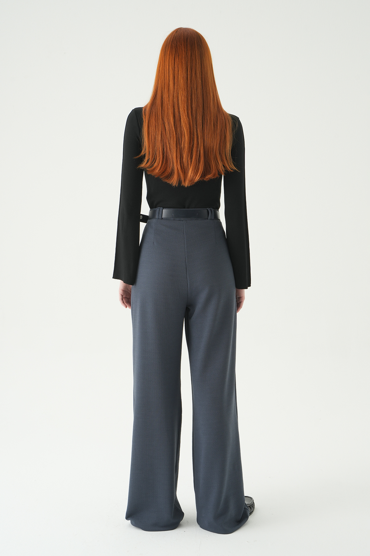 Gri Kemer Detay Palazzo Pantolon 8421A - RAYS Gri Kemer Detay Palazzo Pantolon 8421A - RAYS (1)