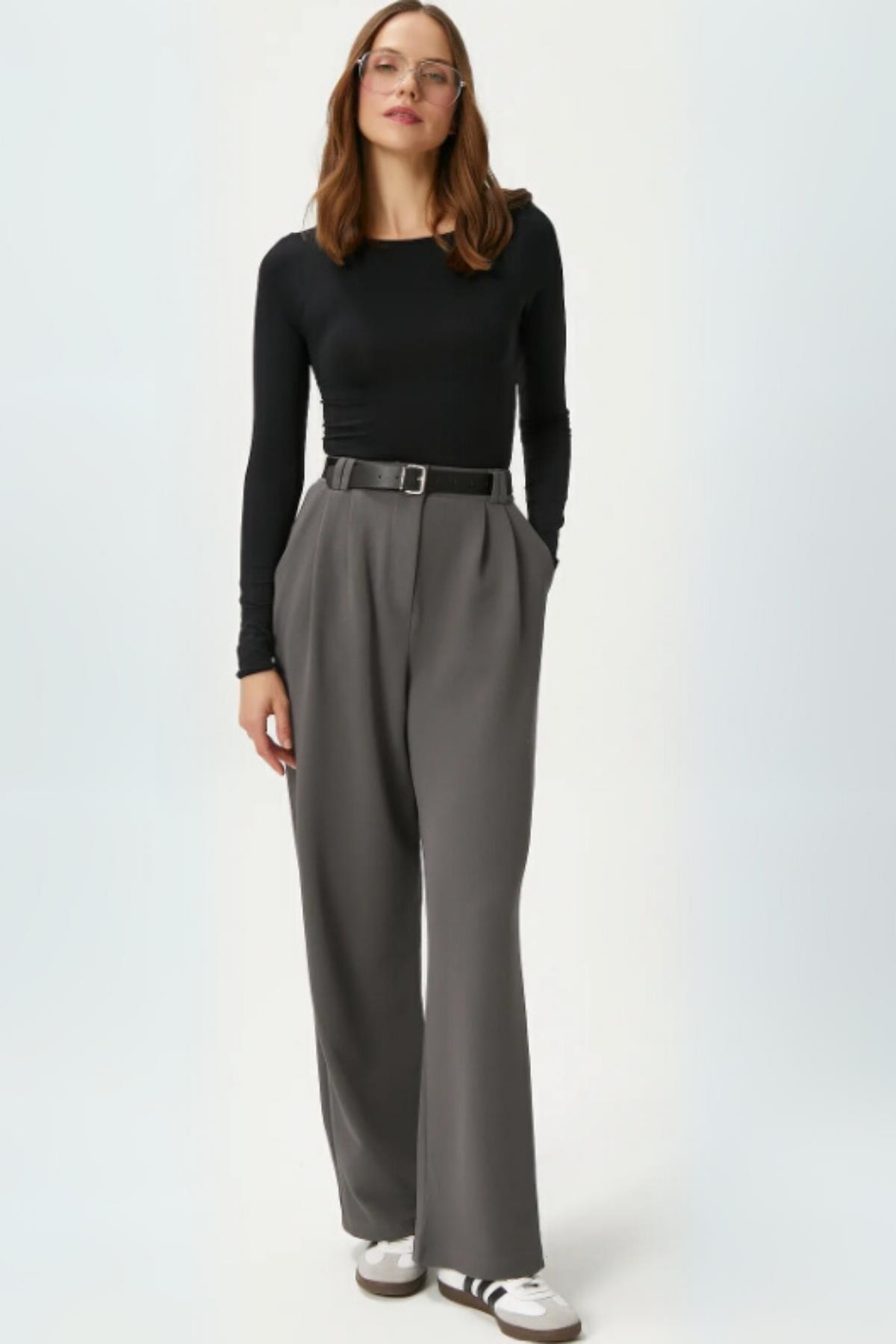 5009 Çift Pile Detay Kemerli Pantolon Gri