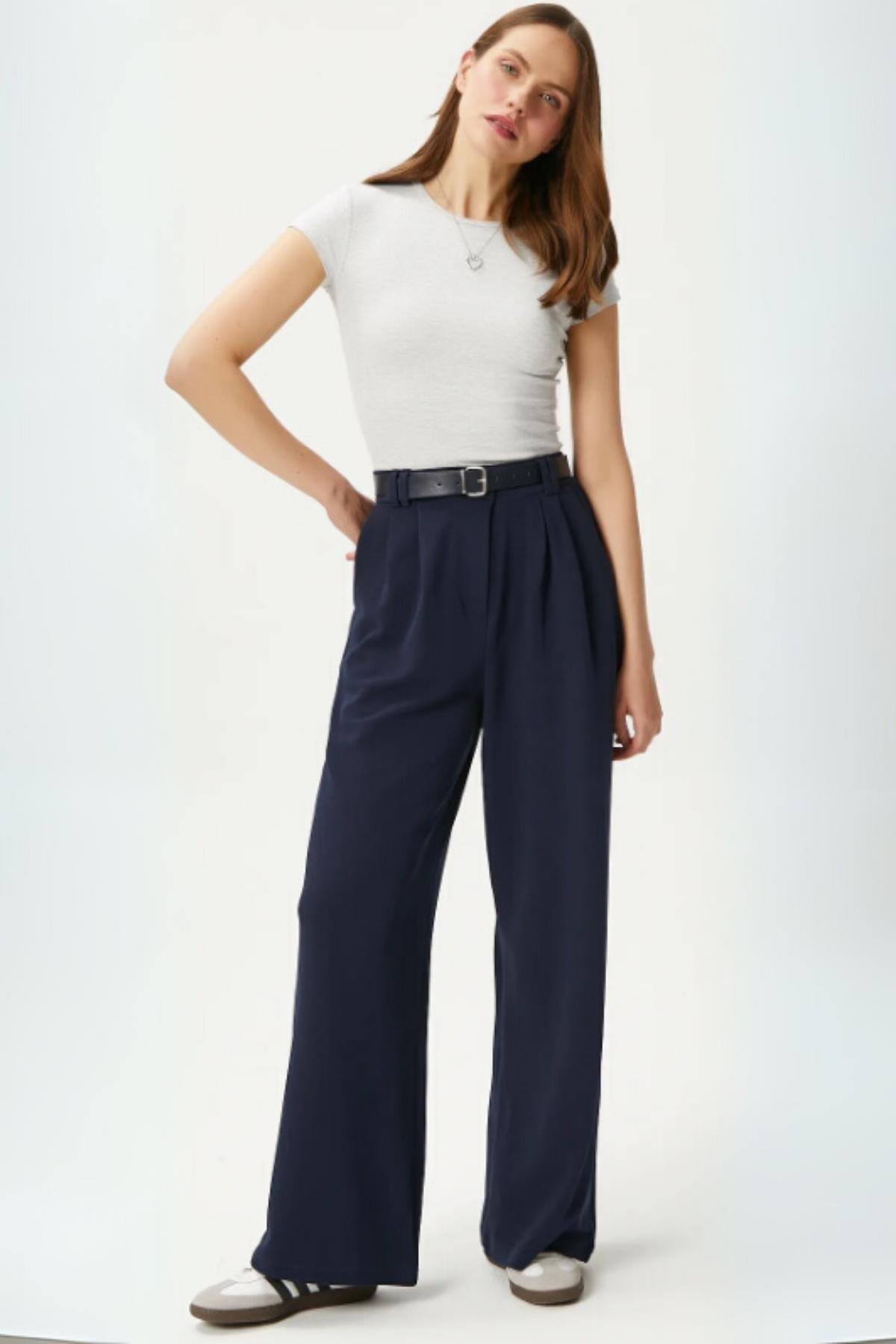 5009 Çift Pile Detay Kemerli Pantolon Laci