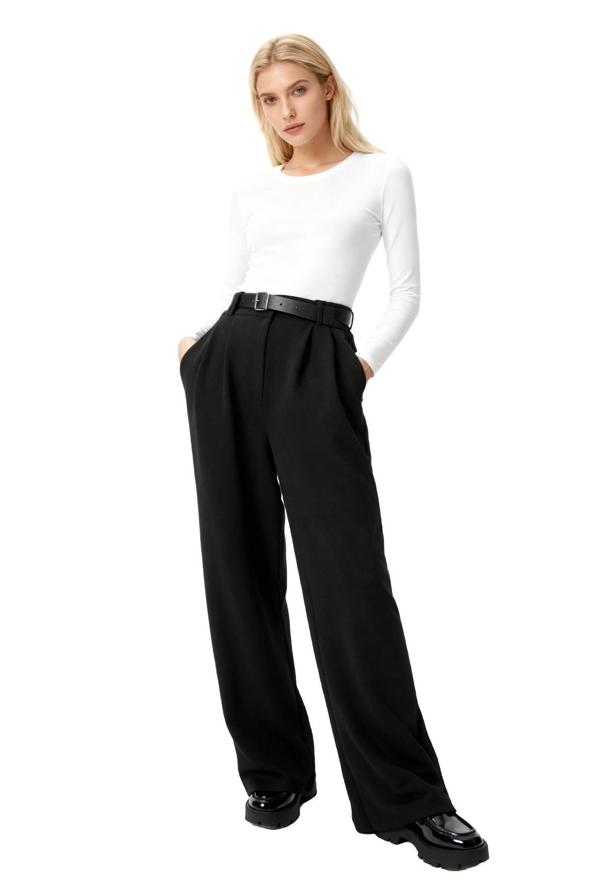 5009 Çift Pile Detay Kemerli Pantolon Siyah
