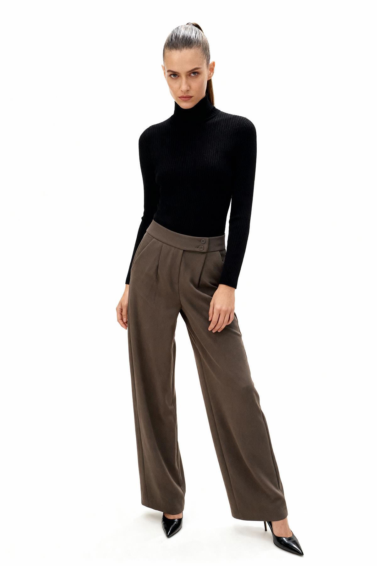 8246A İspanyol Paça Bel Lastikli Pantolon Kahve