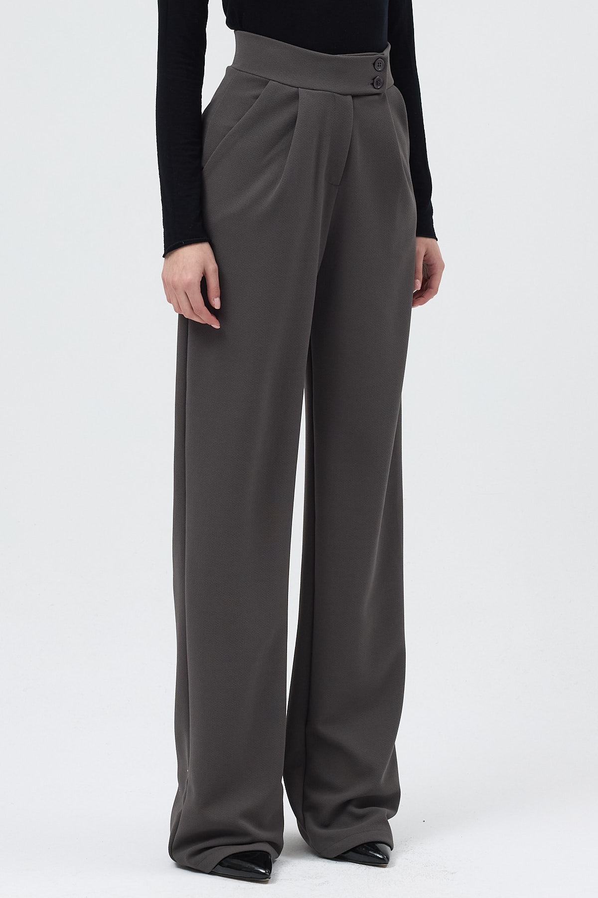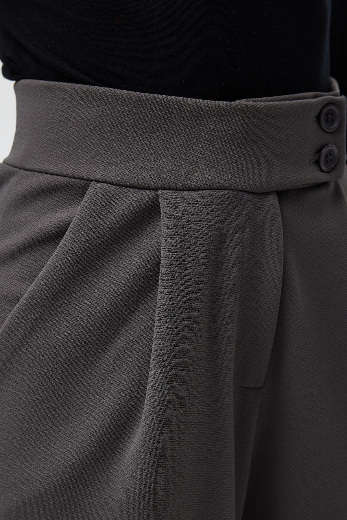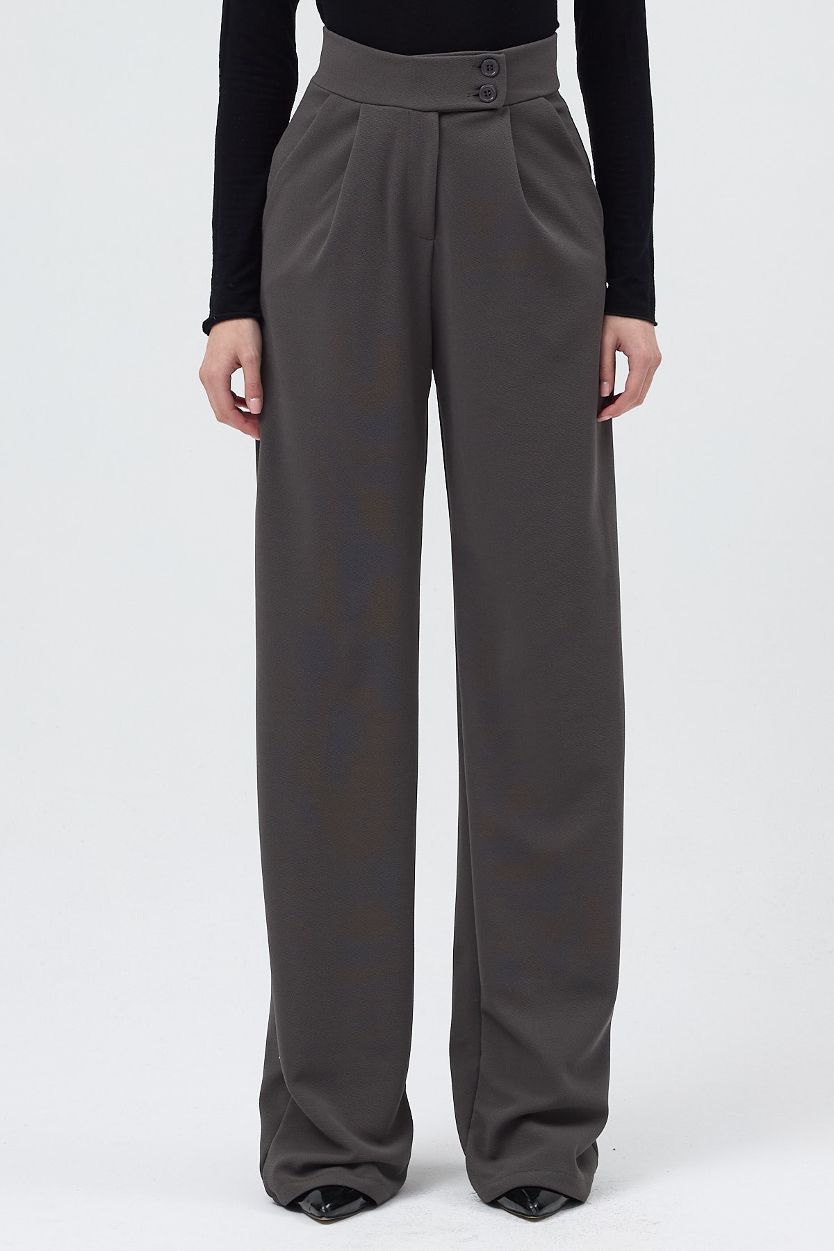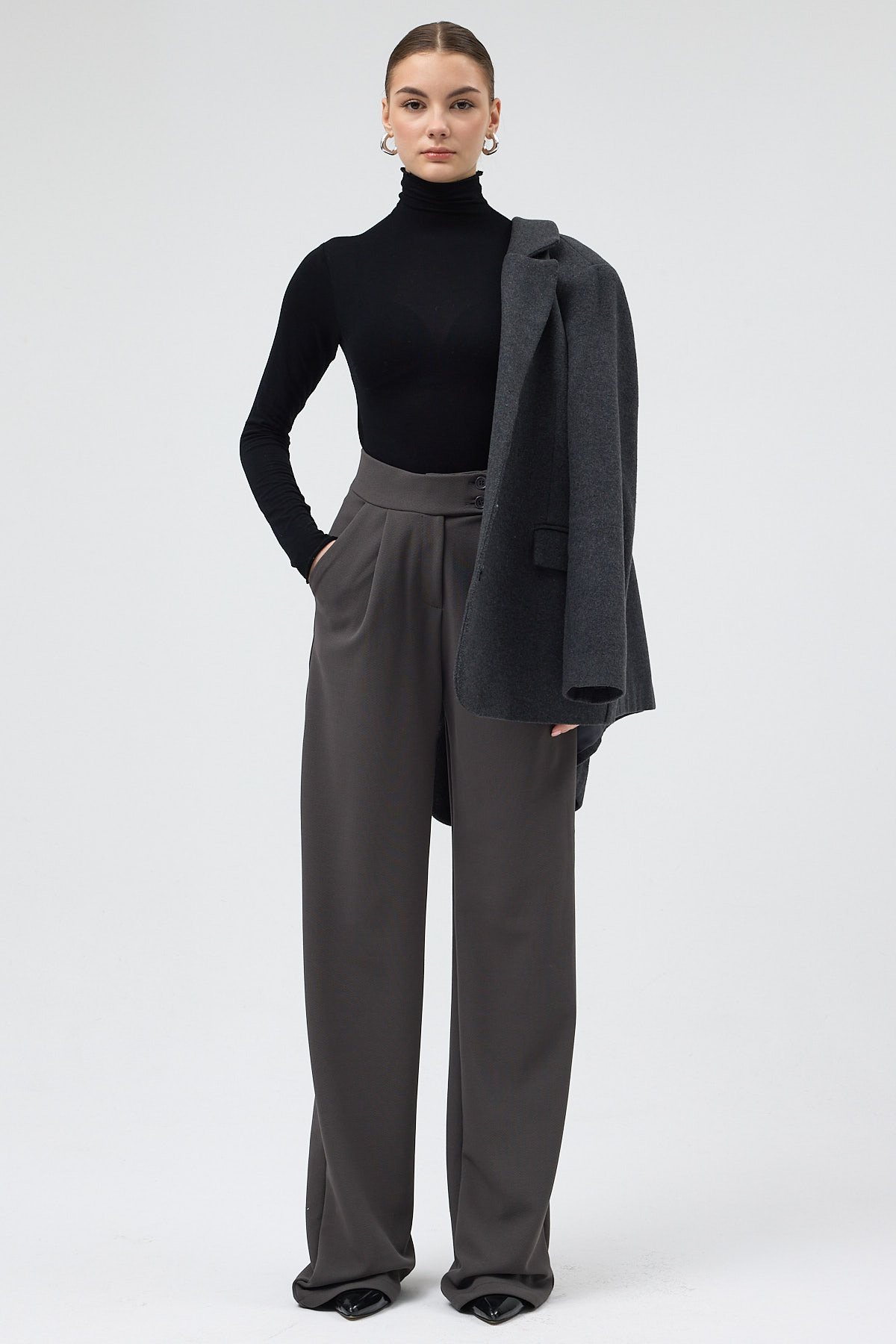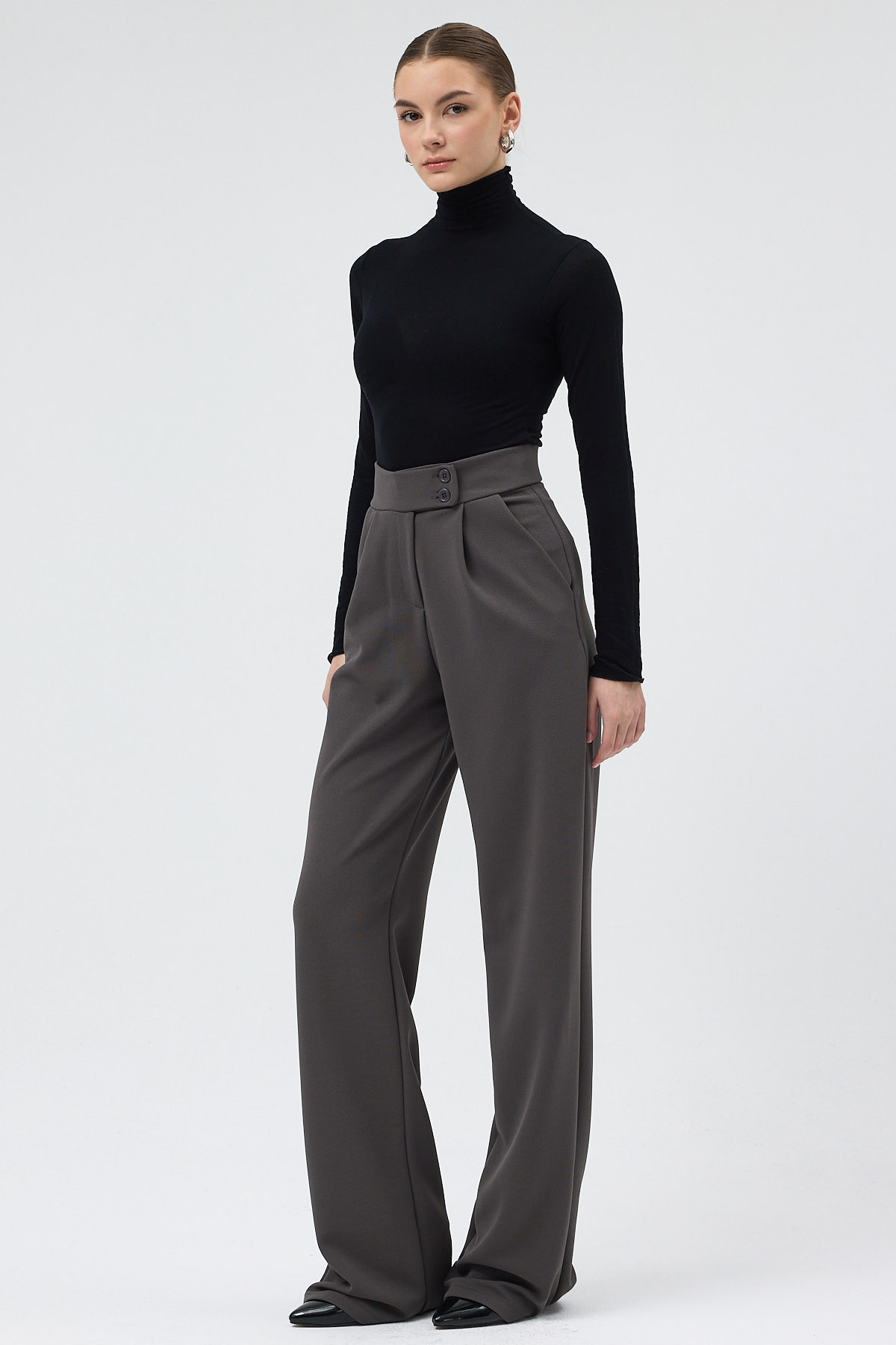 Antrasit Yüksek Bel Çift Düğmeli Geniş Paça Kadın Pantolon 5010