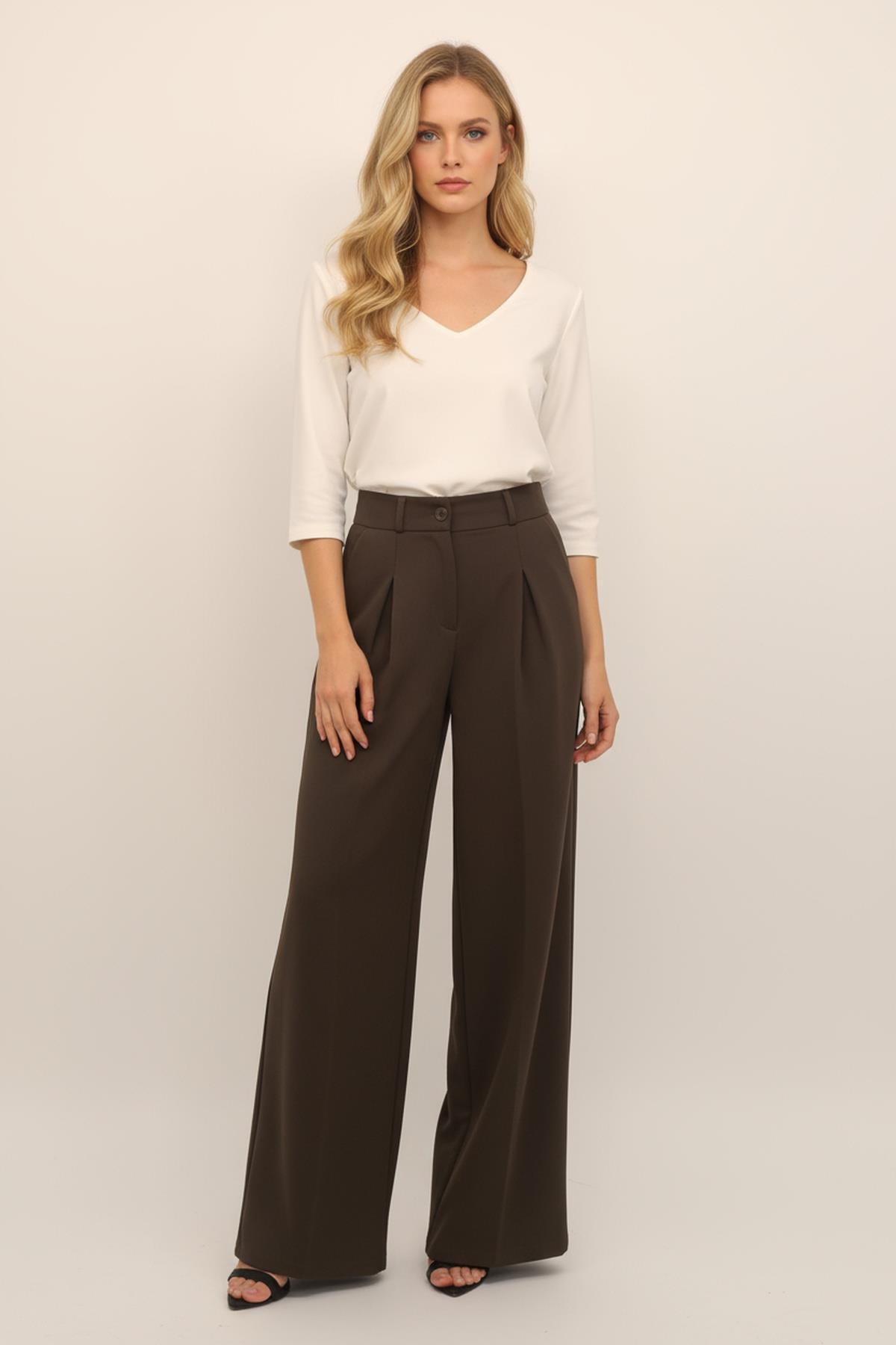 4003A Pile Detay Palazzo Pantolon Acı Kahve